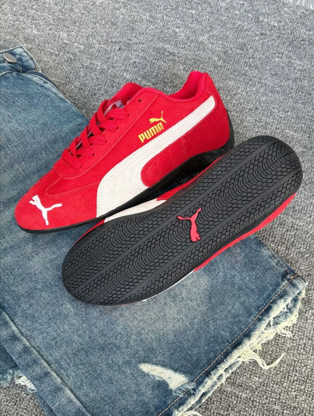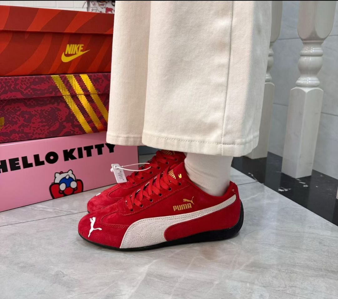 🚀穿上这双红,速度与潮流一步到位!🔥 PUMA Speedcat OG赛车鞋 复古红白配色真的太抓眼了! 麂皮质感细腻柔软 金色Logo点缀细节 自带高级辨识度✨ 薄底设计轻到像没穿鞋 走路跑步都不累脚 修长鞋型巨显脚瘦 搭配牛仔裤、运动裤都超有型 灵感源自赛道 复古与运动风完美融合 日常出街或节日穿搭 瞬间成为焦点🌟 明星同款经典鞋型 你怎么能错过? #潮鞋推荐 #复古运动风 #PUMA...