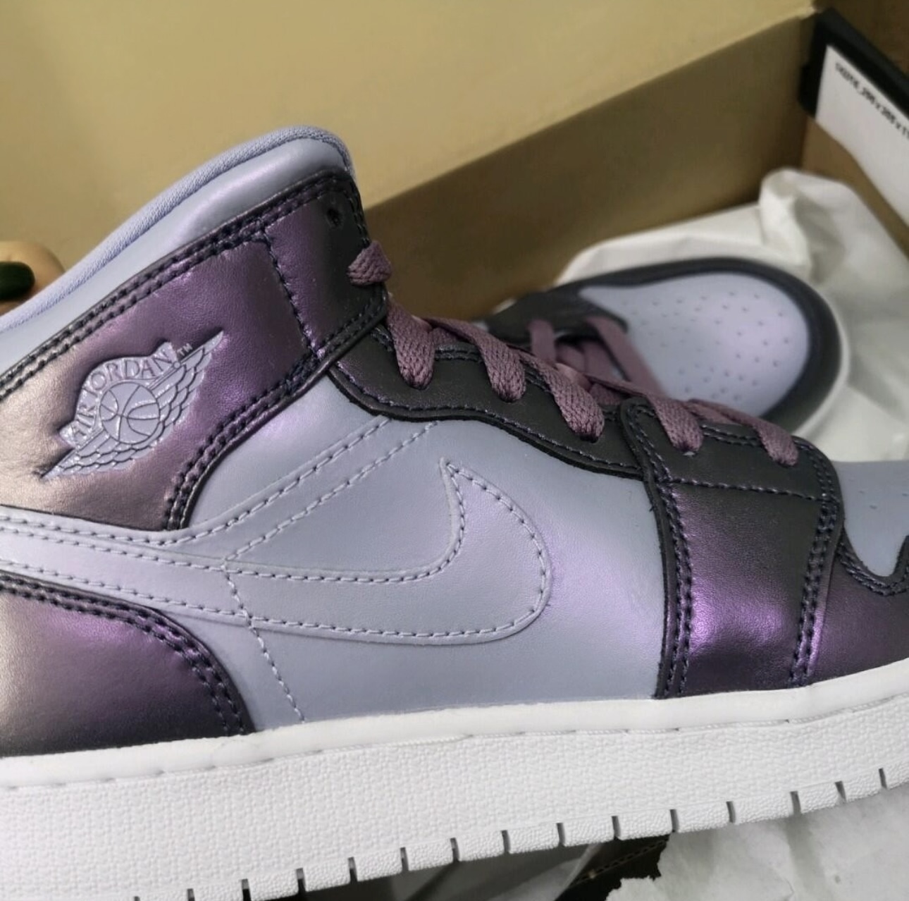 👕推荐单品 Air Jordan 1 Mid 变色龙紫(Dark Iris)高帮篮球鞋 🛒推荐理由 这双AJ1 Mid变色龙紫真的是把氛围感焊在脚上!鞋面是特殊的变色龙材质,灯光下会从深紫渐变到浅粉紫,不同角度看颜色都不一样,走在街上回头率直接拉满~皮质软乎乎的,穿久了也不磨脚,中底缓震够用,日常出街或者上学通勤都合适。女生搭黑色百褶裙+白色短款针织衫、紫色工装裤+灰色露脐T恤超有范儿;男生...
