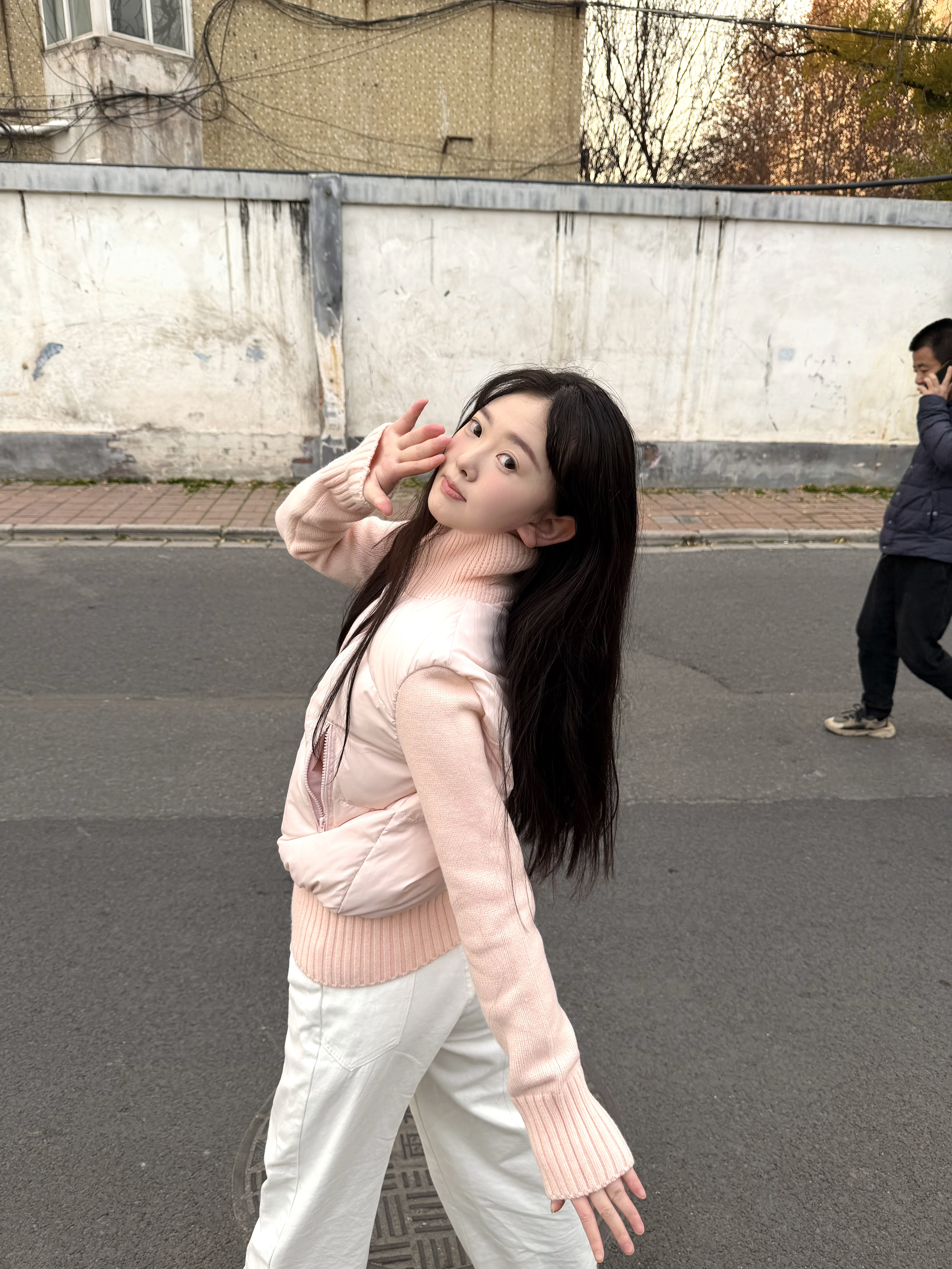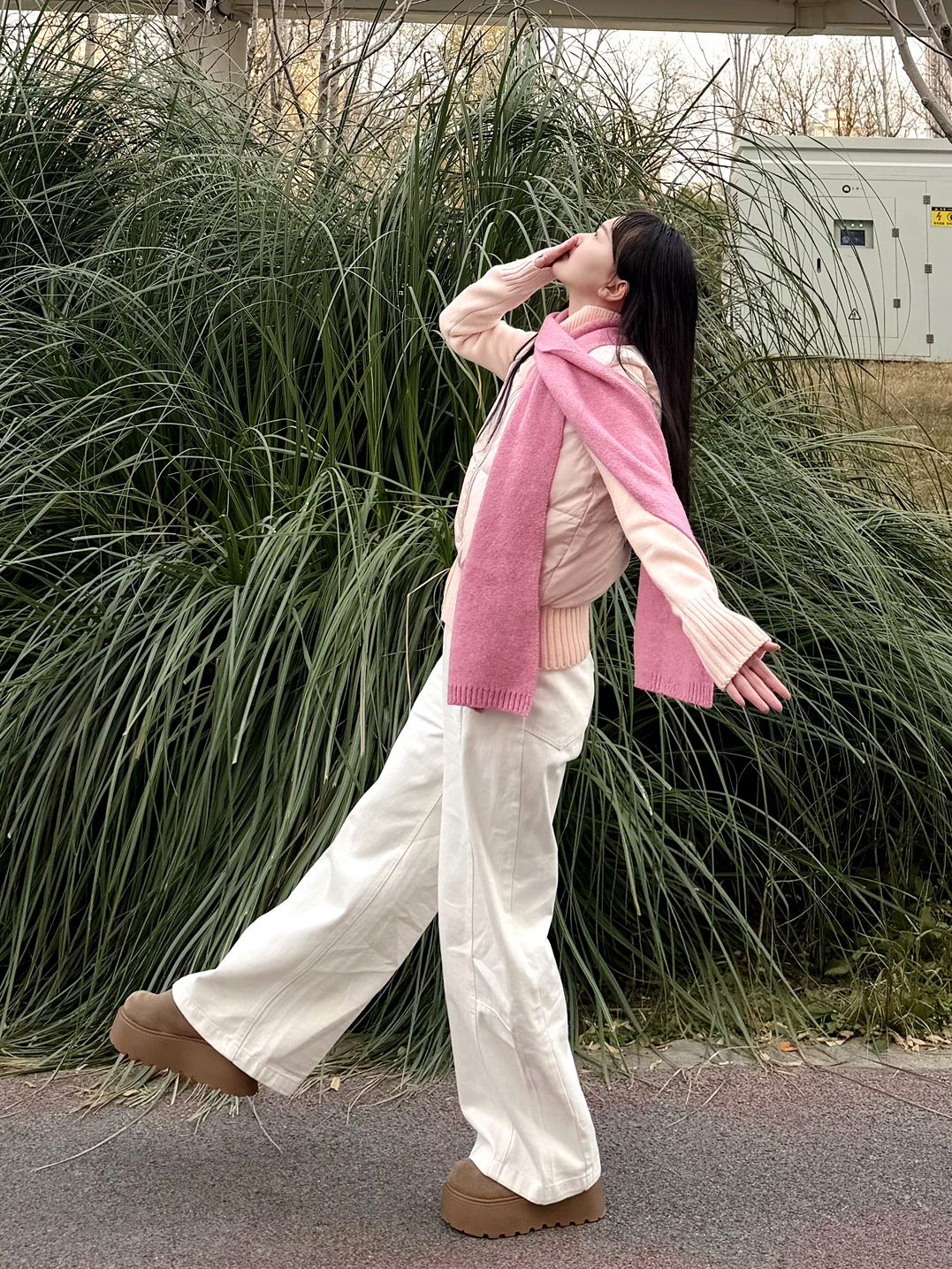 挖到宝了!这件粉色拼接上衣真的是甜妹本命!一开始还担心粉色会显黑,结果穿上发现是超温柔的浅粉色,黄皮姐妹也能放心冲~ 设计上真的超有心机,针织的高领部分贴肤又软糯,棉服马甲的部分蓬松但不臃肿,修身的剪裁还能悄悄藏住小肉肉。搭配米白色阔腿裤,宽松的版型对梨形身材超友好,再系上粉色围巾,甜妹氛围感直接拉满! 出门随便摆几个姿势都超上镜,不管是逛吃还是拍照,这套穿搭都又甜又舒服,已经列入我的冬日穿搭t...