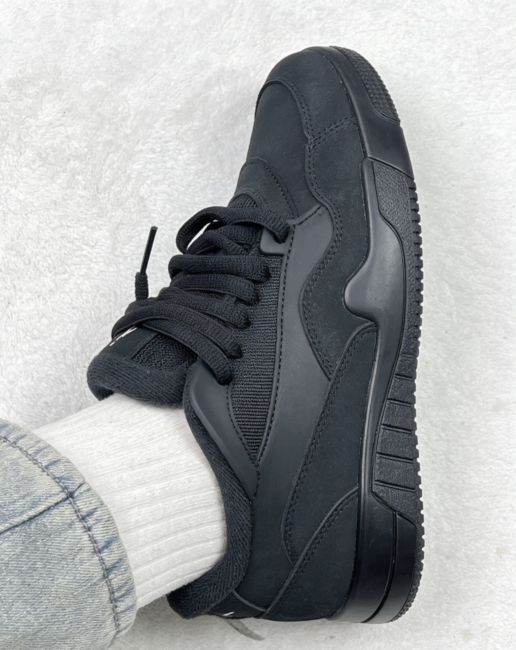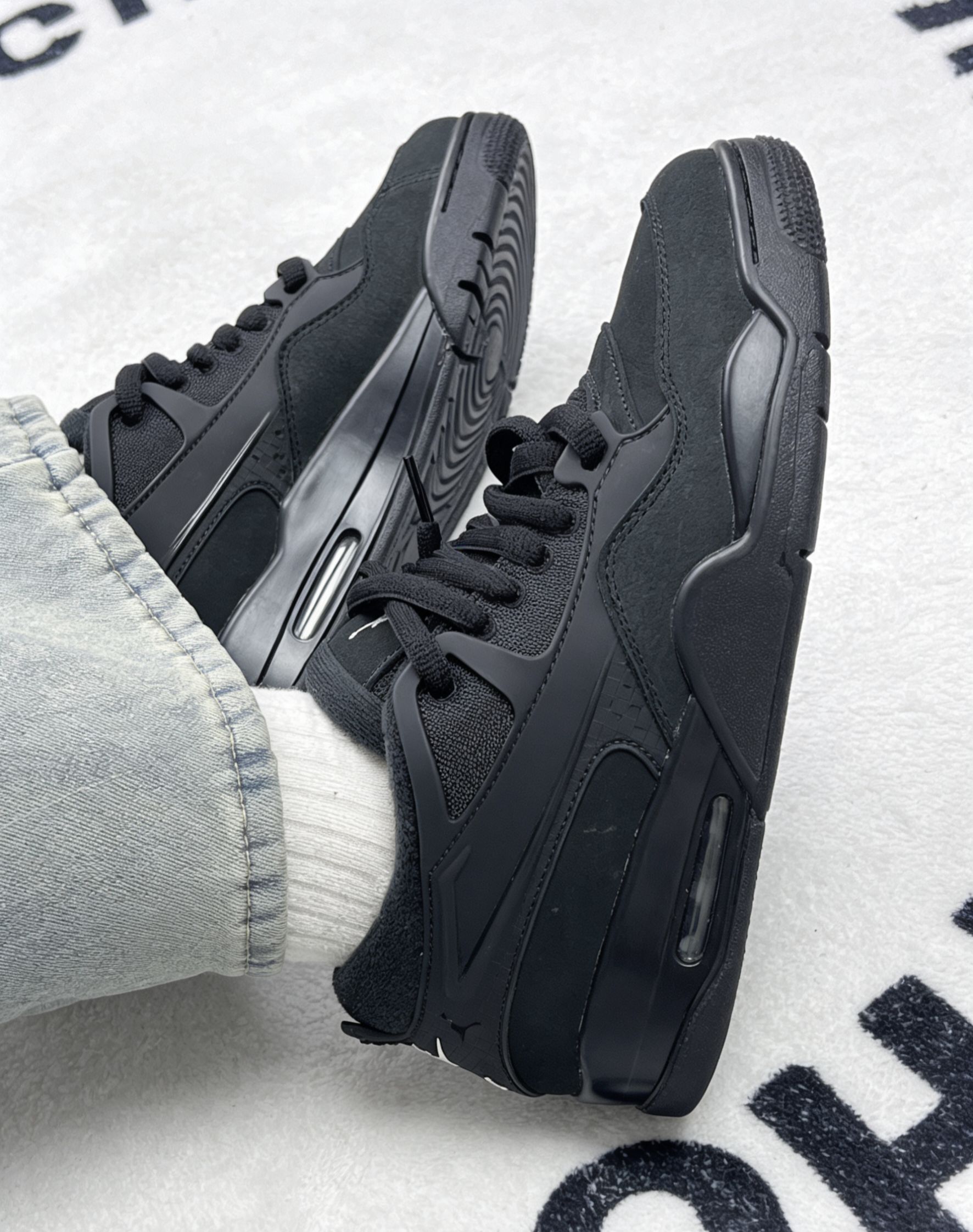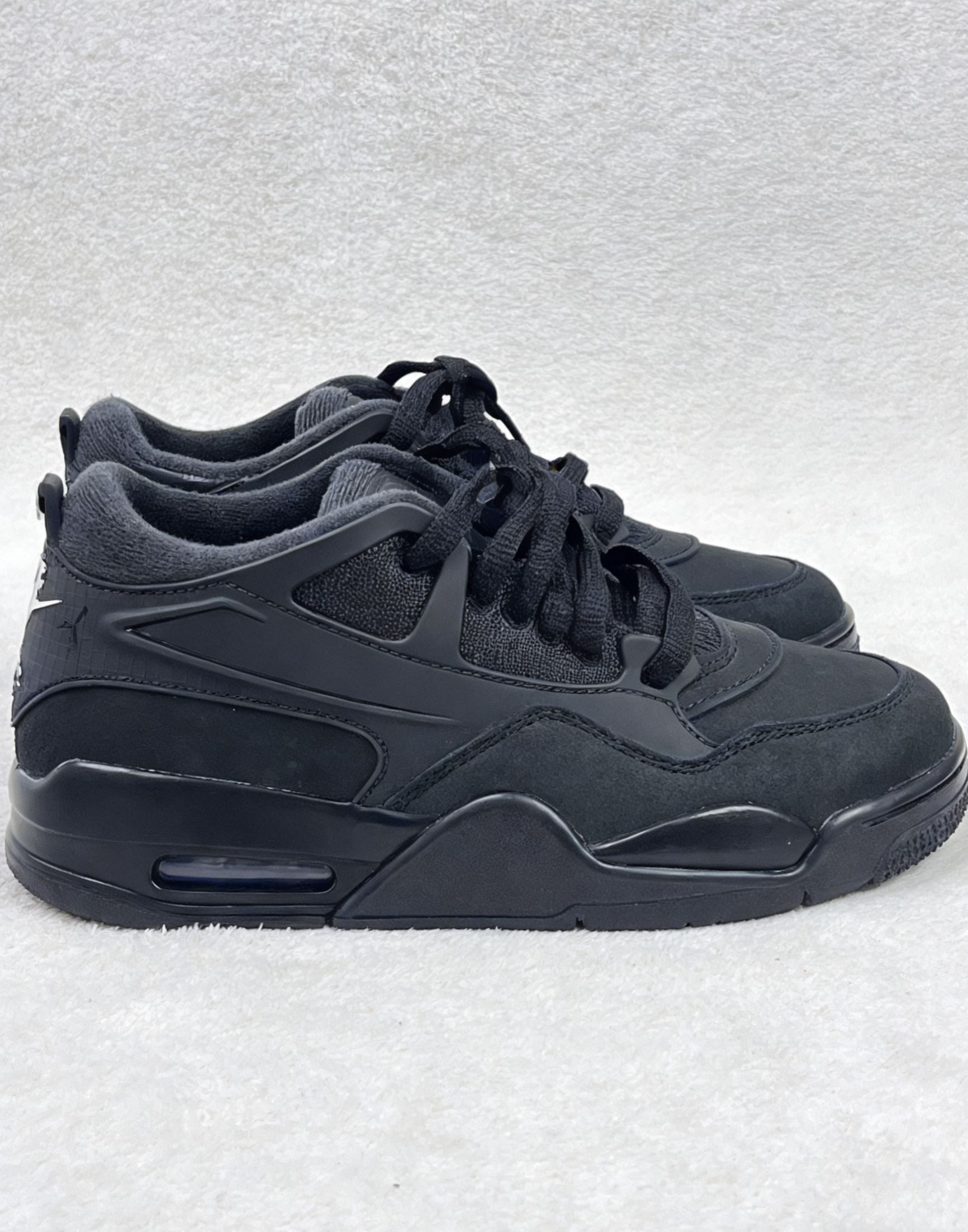 这双全黑AJ4 RM刚上脚的时候,鞋型的层次感和哑光黑的质感确实让我愿意天天穿出门。脚感方面,后掌的气垫在走路时能感受到一点回弹,但前掌偏硬,长时间逛街还是会觉得累。 它的优点是真的百搭,牛仔裤、运动裤随便搭都不出错,而且黑色耐脏,不用频繁打理。但缺点也很明显:鞋身偏厚重,夏天穿会闷脚;鞋头的麂皮材质容易沾灰,用湿抹布擦完会留下印子,得专门买清洁护理剂才行。 总体来说,这是一双适合日常通勤...