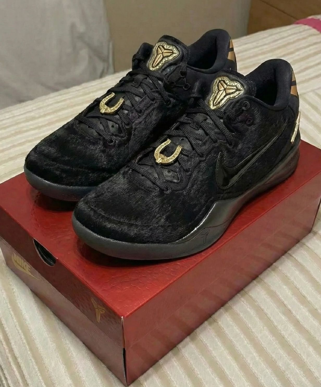 🔥 科比8代马年限定,这双鞋一上脚,直接把“传奇”和“年味”焊在了脚上。 ✨ 颜值杀疯 - 马毛鞋面:黑色马毛自带奢华质感,摸上去细腻又高级,在光线下泛着低调的绒面光泽,比普通皮革更有辨识度。 - 黑金细节:鞋舌的科比Logo、鞋带扣的金属金环、后跟的金色浮雕,每一处点缀都精准戳中“中式奢华”审美,过年穿它走亲戚,直接把排面拉满。 - 低帮造型:流线型鞋身+超薄鞋舌,视觉上更显脚小...