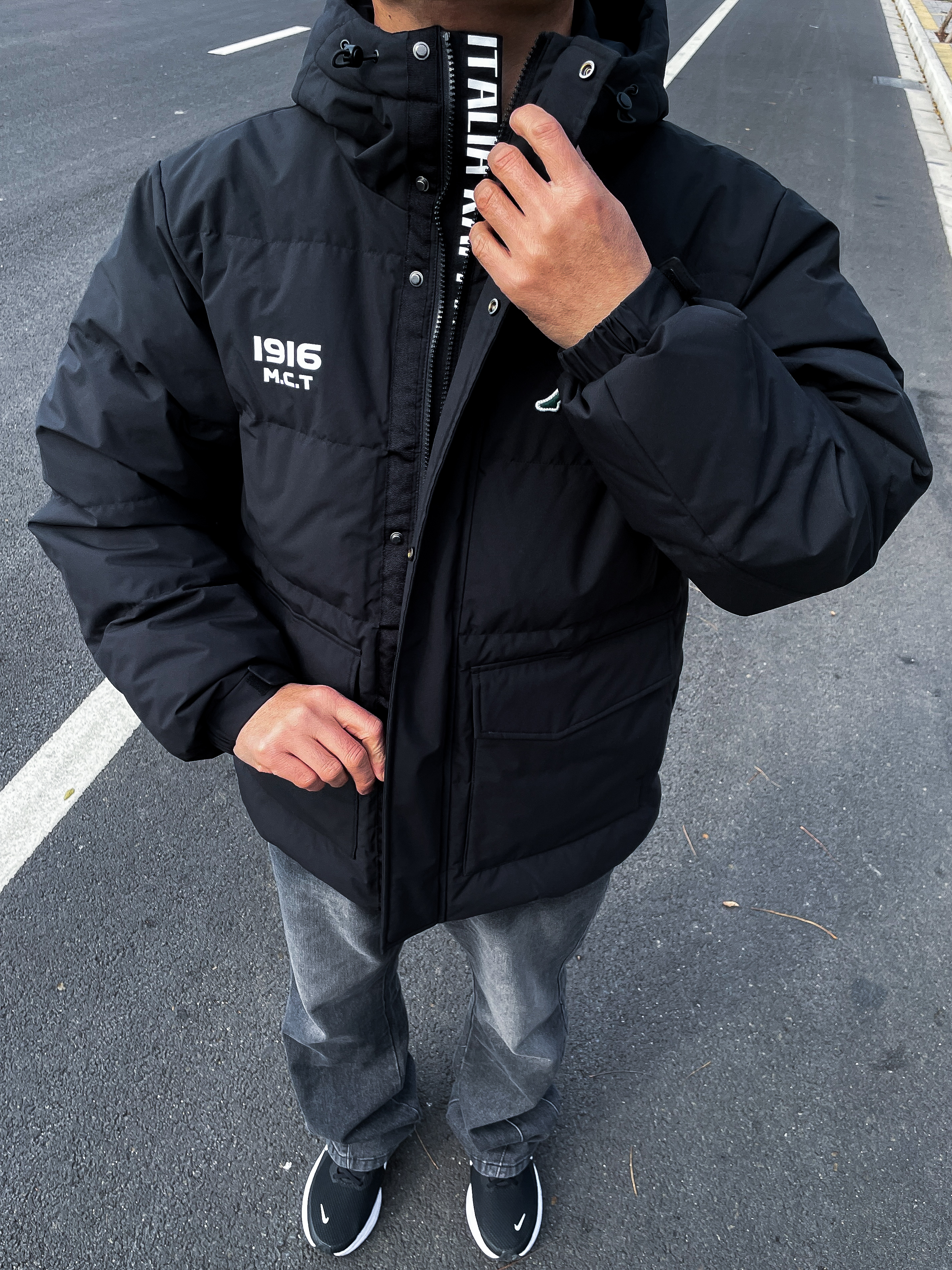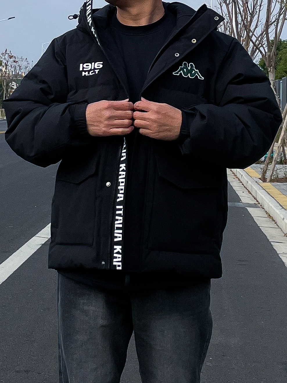 ❤️hi 宝子们好!💛今日分享: 秋冬穿羽绒服也要穿出潮酷的帅! 今天上身一件Kappa连帽羽绒服,经典黑色搭配1916 M.C.T印花,简约中带着满满的设计感! 内搭选了纯黑基础款打底,同色系搭配让整体造型更显利落高级~ 裤子搭配黑灰色水洗牛仔裤,做旧的质感和羽绒服的休闲风完美融合,直筒版型还超修饰腿型! 大口袋的实用设计加上蓬松的充绒量,保暖又有型,细节处的Kappa logo刺绣也超有辨识...