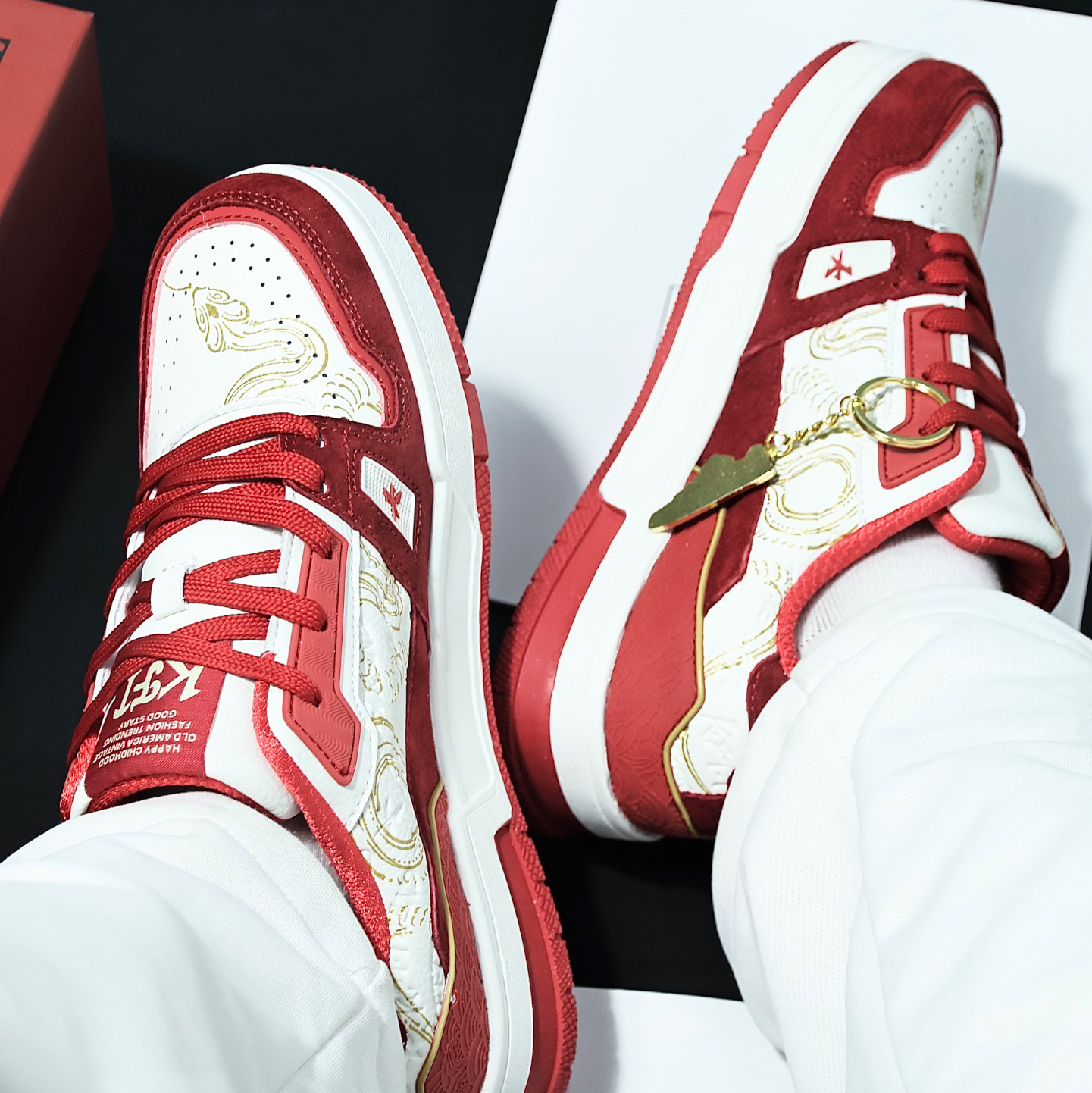 蛇年礼盒🐍新年来双红红火火的板鞋吧!!! 👟:脚王KFT 云纹 蛇年礼盒 板鞋 🎨:红色➕白色➕金色 鞋面金色蛇纹修饰,看上去蛮有设计感滴~ 超纤皮➕翻毛皮拼接鞋面层次感分明 还送一个可拆卸小挂件 整体来说这双鞋真的很不错 尺码正常选择就可以了哈📏 快来给新年添一抹红色吧!!!