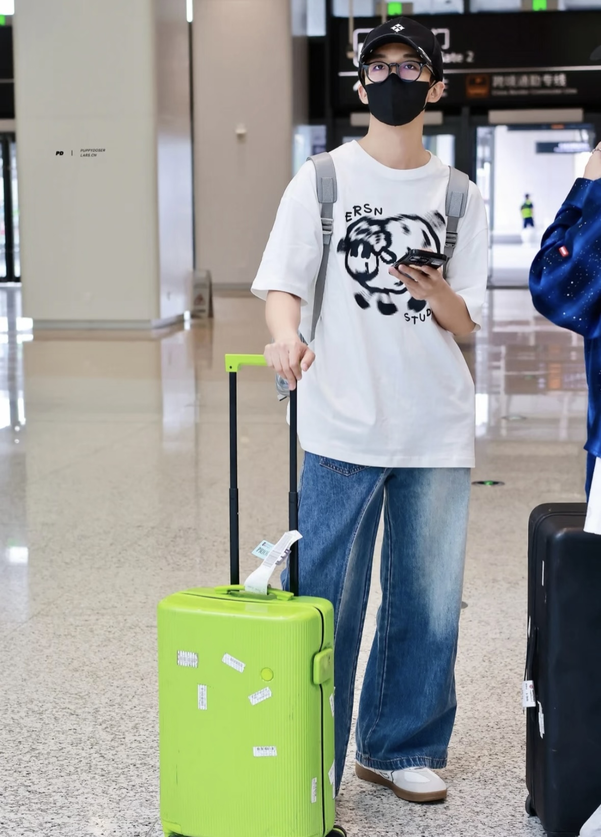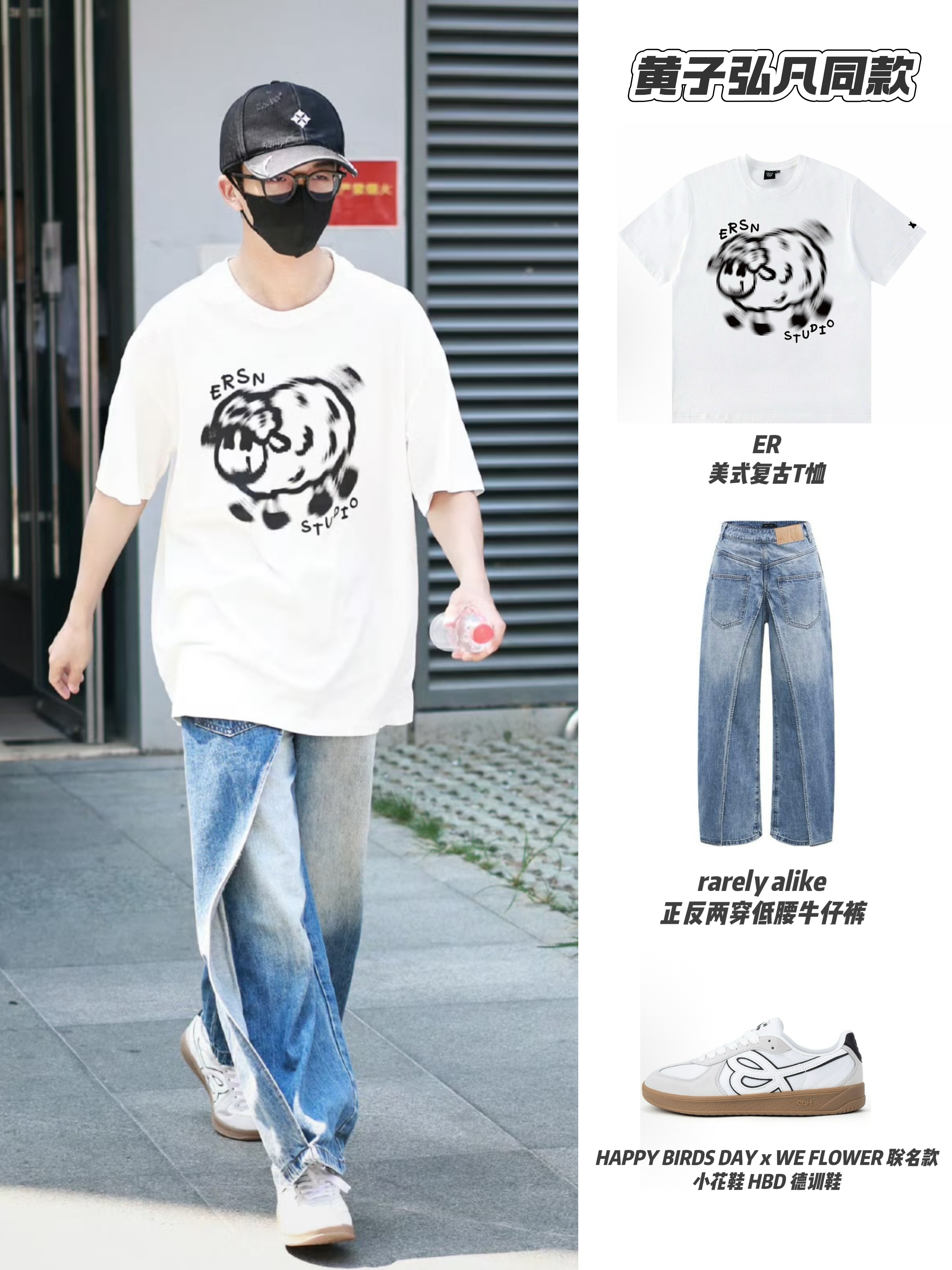 街头松弛感穿搭公式:白T+拼接牛仔裤+德训鞋yyds🛹 宽松的卡通印花白T非常适配黄子的少年感,拼接设计的牛仔裤打破单调,增添了个性。HBD联名德训鞋的白棕配色呼应复古调性,整套搭配舒适又不失细节~