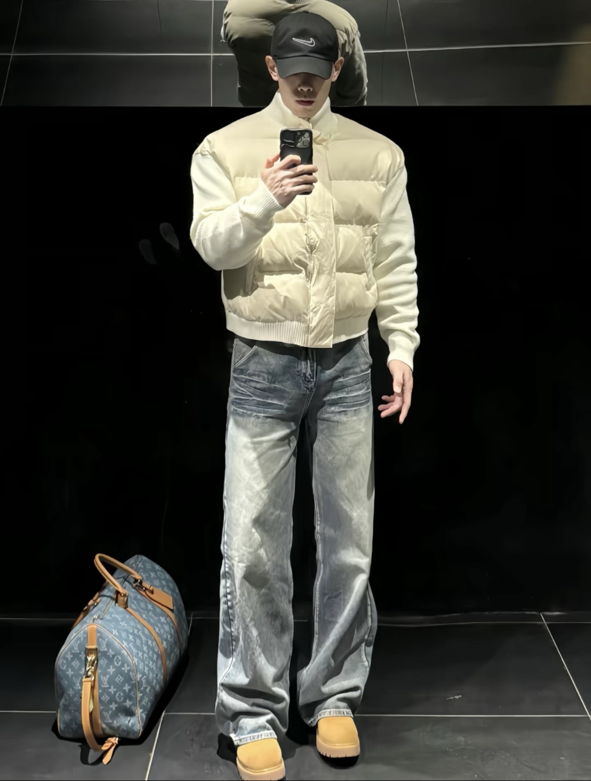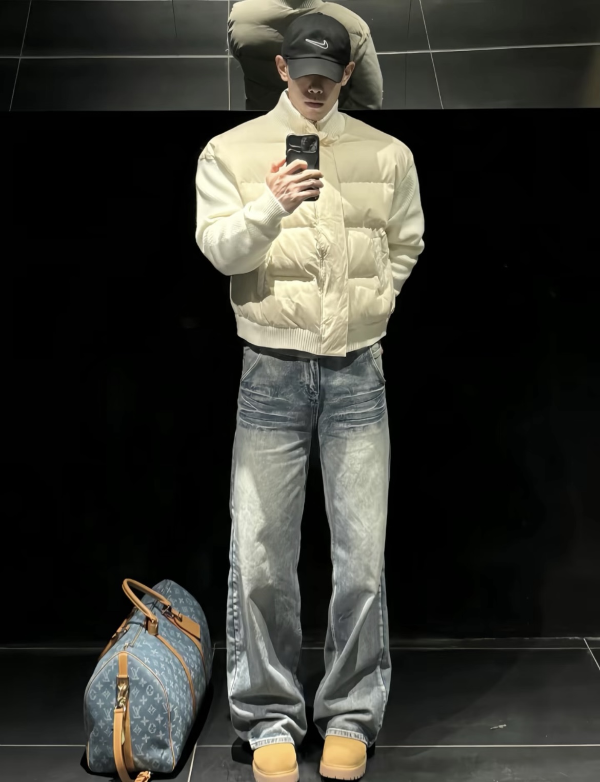 #酷飒男生宝藏羽绒裤穿搭 黑白灰的经典搭配永不过时,轻薄羽绒夹克搭深色牛仔,慵懒又利落的型格拿捏了👔