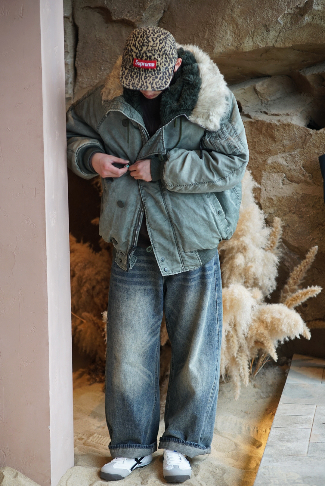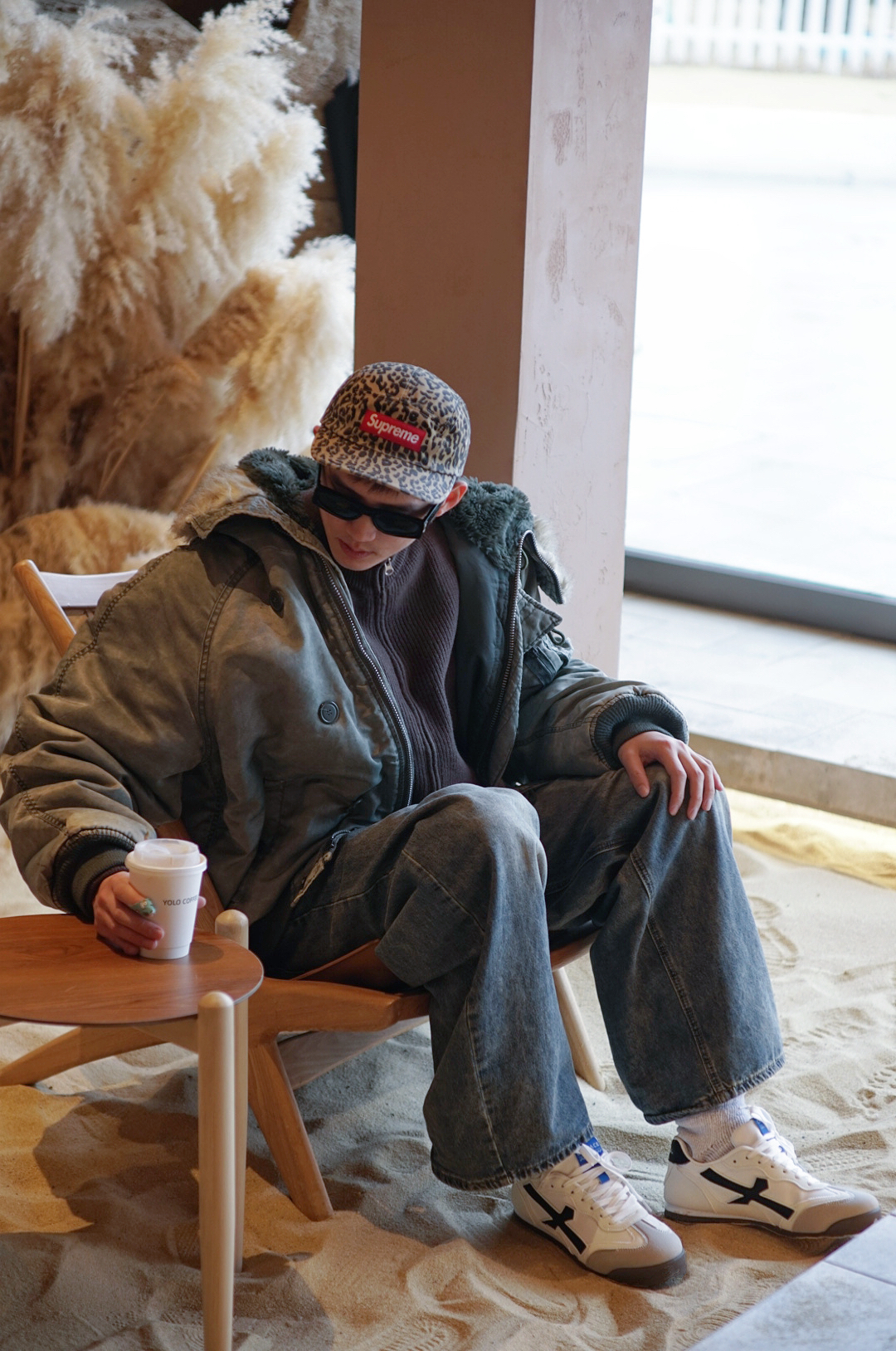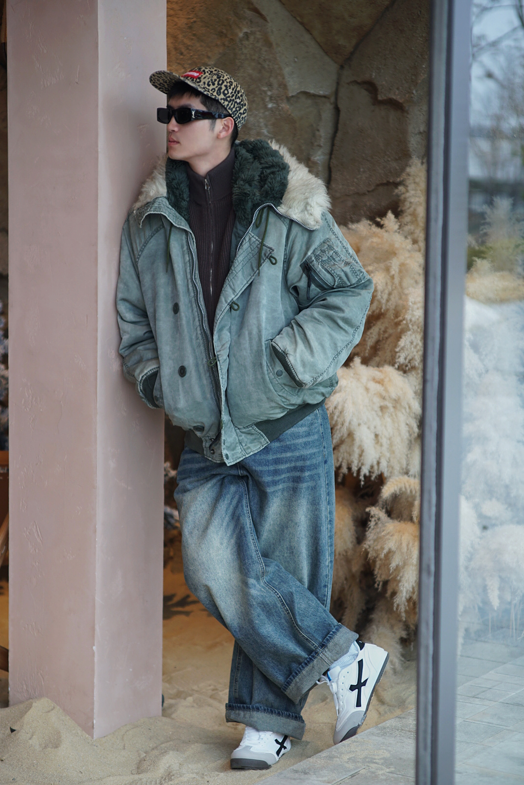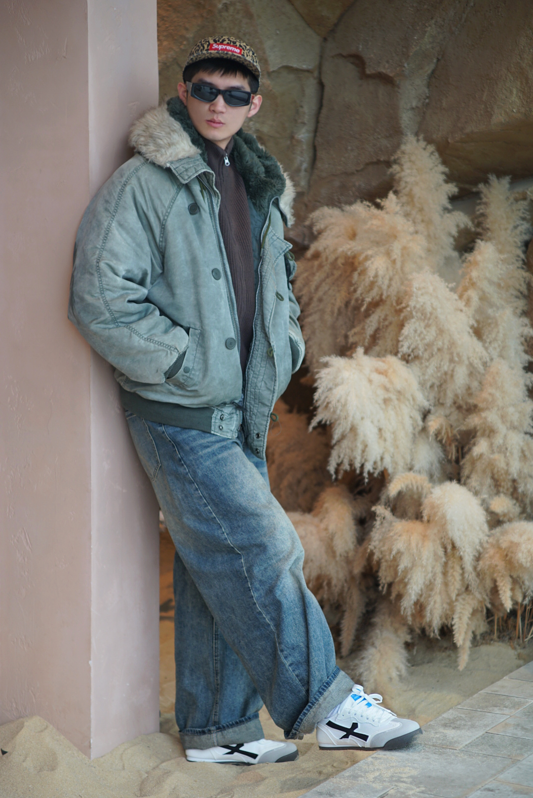 冬日出游当然得轻松上阵,今天是街头和都市的混搭风,一件军装N2b夹克搭配一条水洗牛仔裤,最后再用一双小白鞋给整体造型注入一丝休闲感,简简单单