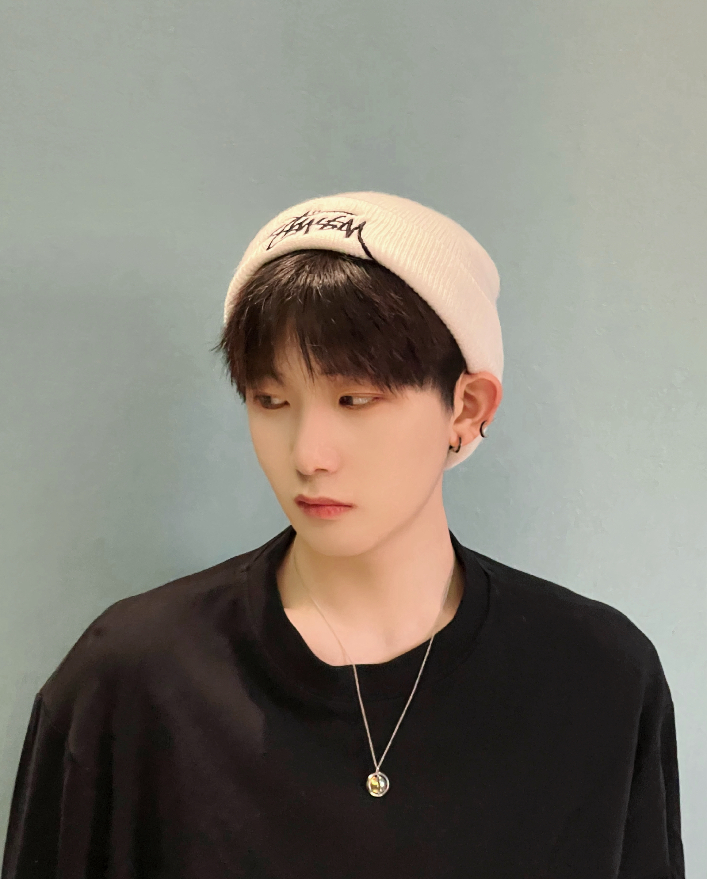 第一件白T是我衣柜里穿得最多的一件,版型偏宽松,领口做了小破边设计,不会像普通白T那么死板。配亮橙色针织冷帽的时候,我会把帽檐往下压一点,刚好露出眉峰的位置,视觉上能把脸的比例拉得更舒展。这种饱和度高的颜色特别适合阴天或者穿一身素的时候戴,不用别的配饰,整个人的精气神就提起来了。 换一顶宝蓝色毛绒线帽,感觉又变了。这顶帽型更圆,材质也软乎乎的,我喜欢把它戴得稍微往后一点,让额前的碎发露出来一点,...
