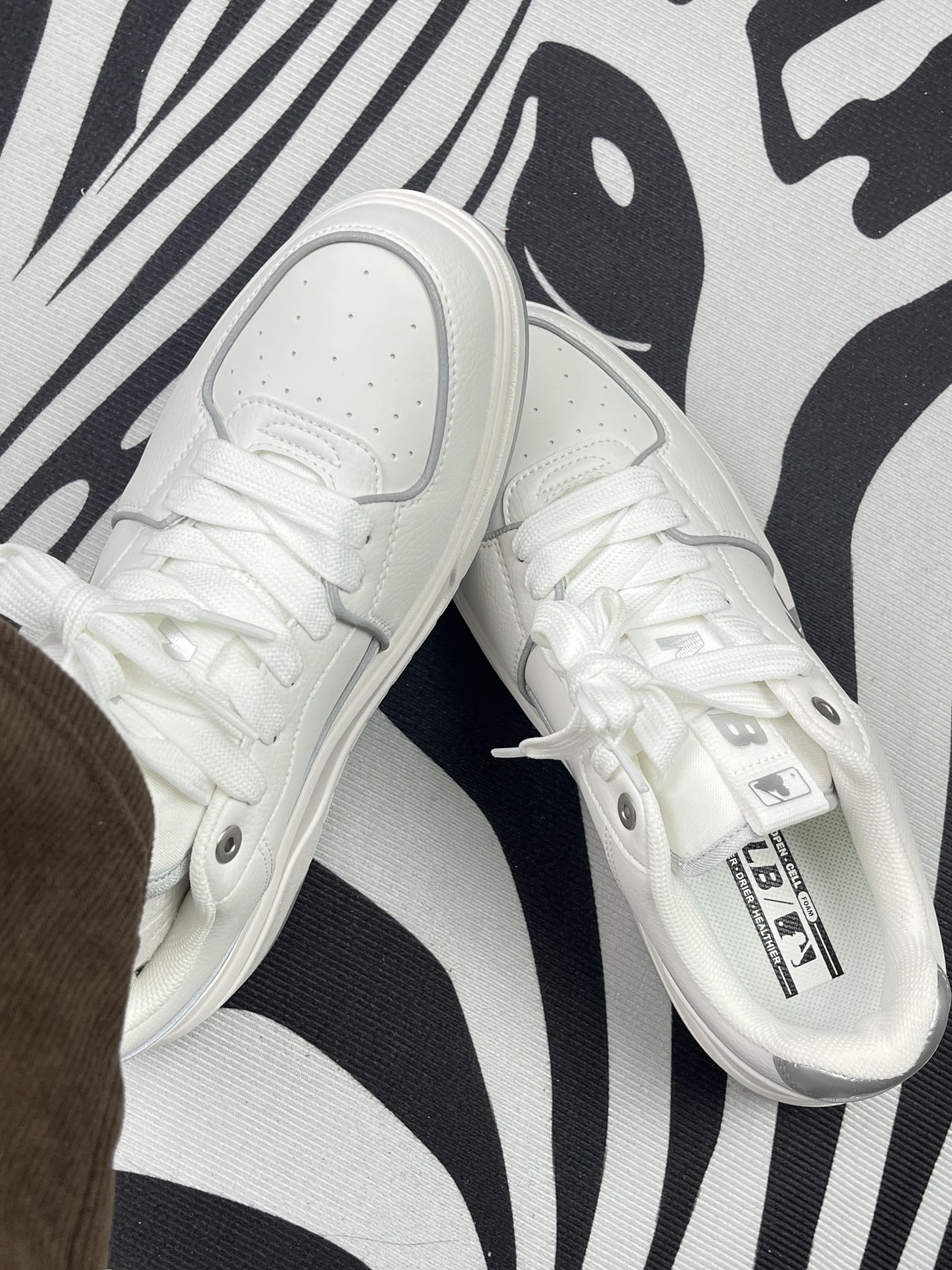 这双MLB的小白鞋刚拆开时,银灰包边的细节让我觉得挺精致,配裙子和牛仔裤都不违和,日常通勤穿足够低调。 穿了一周,感受很实在:优点是鞋身轻便,走路不累脚,鞋垫的透气孔也确实能减少闷脚感。但缺点也很明显,白色皮质特别容易脏,不小心蹭到一点污渍就很显眼,得经常擦。而且鞋型偏窄,脚宽的朋友第一次穿会觉得挤,需要撑几天才能适应。 它适合喜欢简约风格、愿意花时间打理鞋子的人。如果追求耐脏和宽脚友好,...