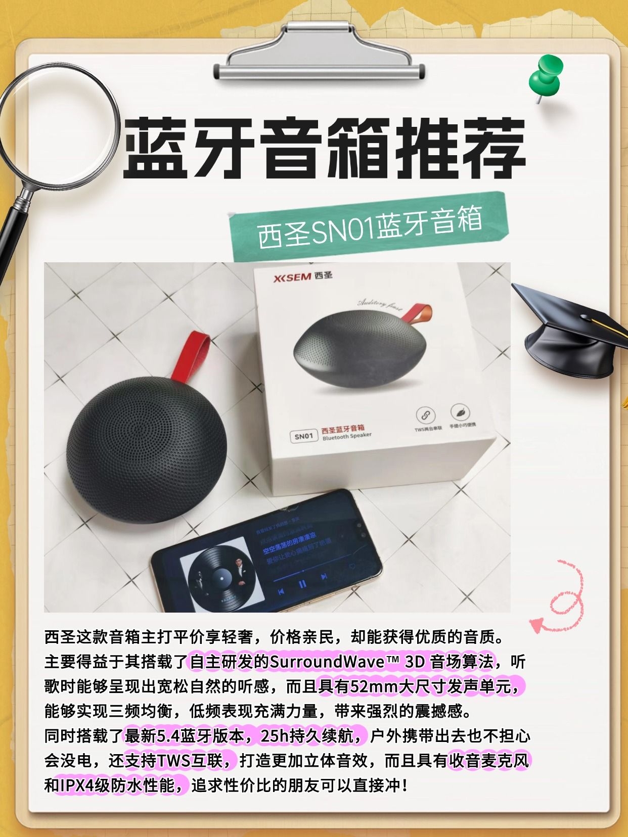 本篇笔记关联了XISEM/西圣 SN01 便携式 蓝牙 音箱 HIFI音质 重低音立体声 黑色等商品,为用户提供真实的使用体验和购买参考。