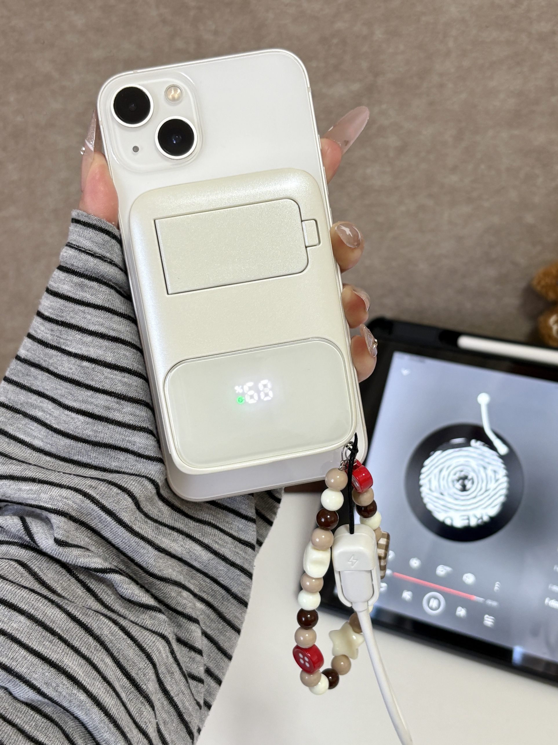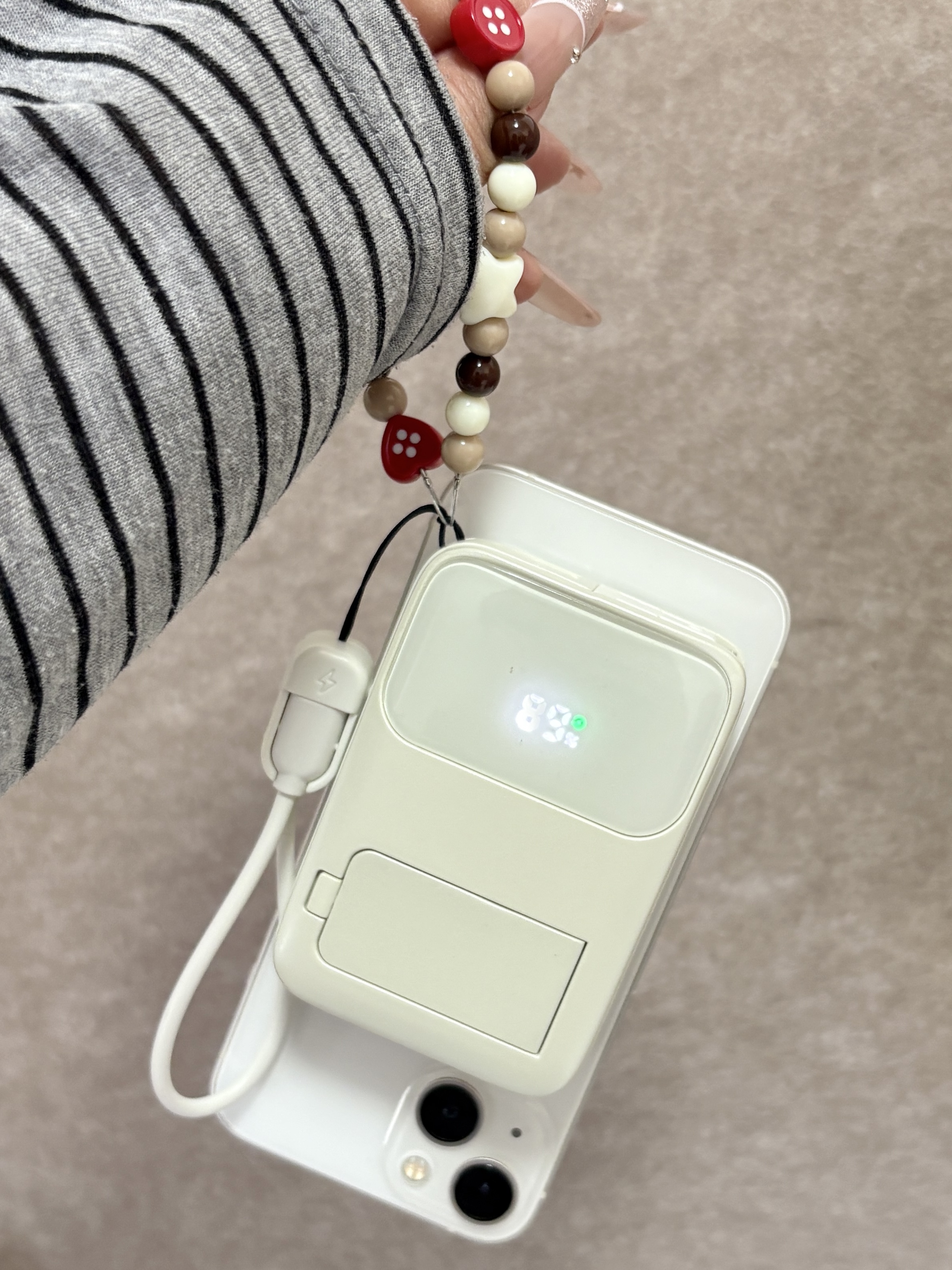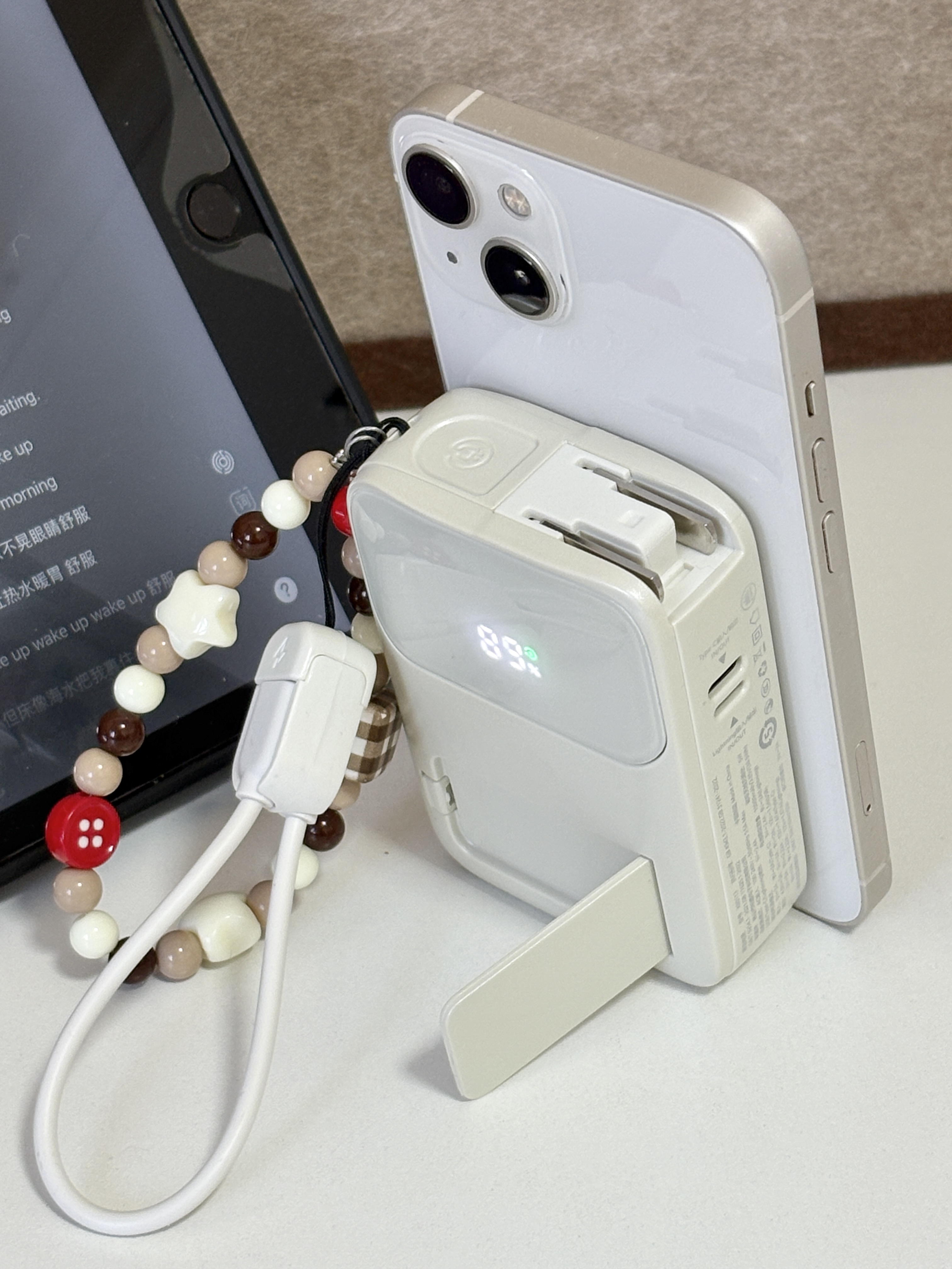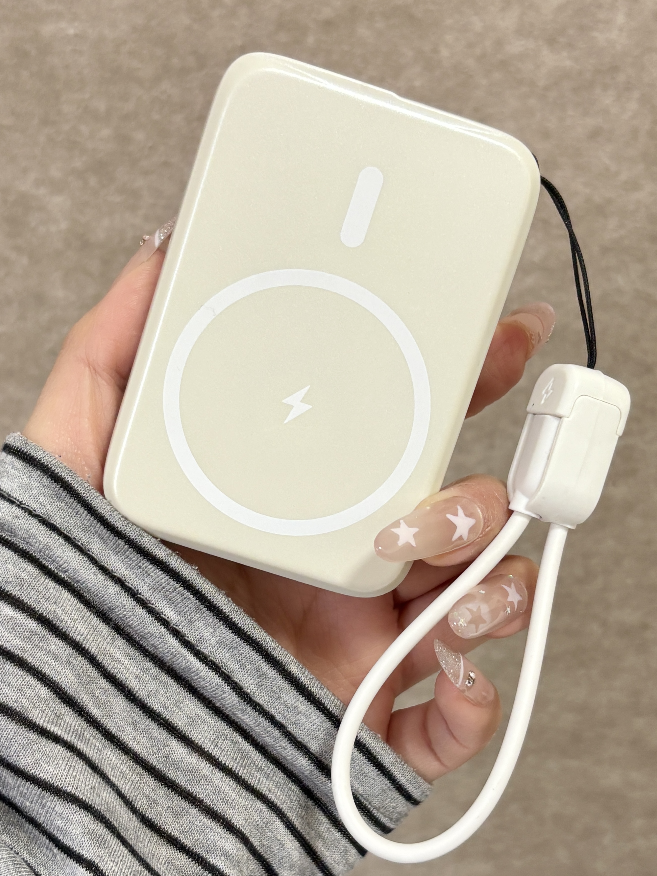 一个充电宝而已你也太全面啦 好喜欢我的Ringke充电宝 自带充电插头,而且支持磁吸充电 挂绳既可以手提还可以当充电线好全面 追剧的时候还可以当个支架 过年回家带这个就够啦