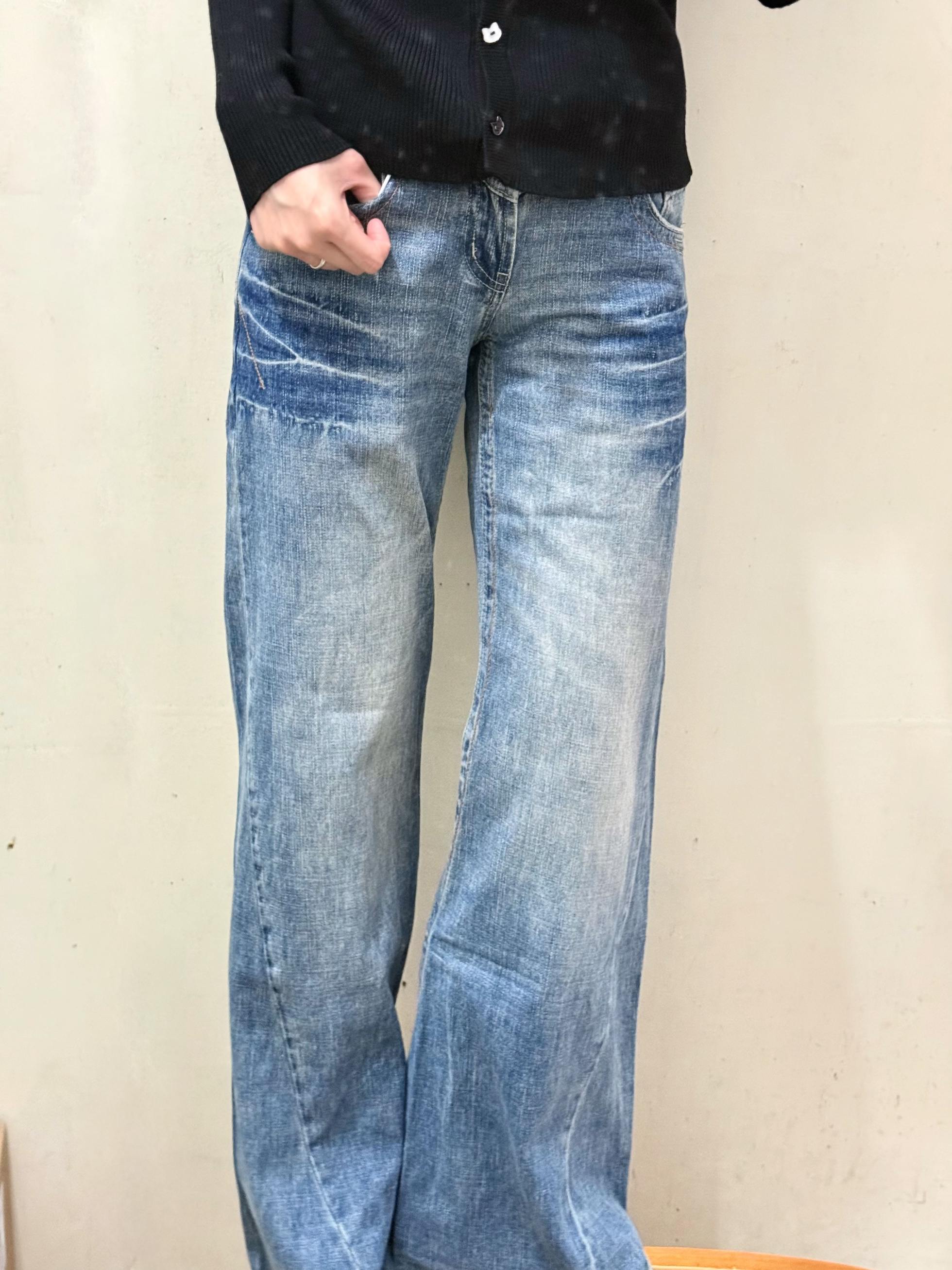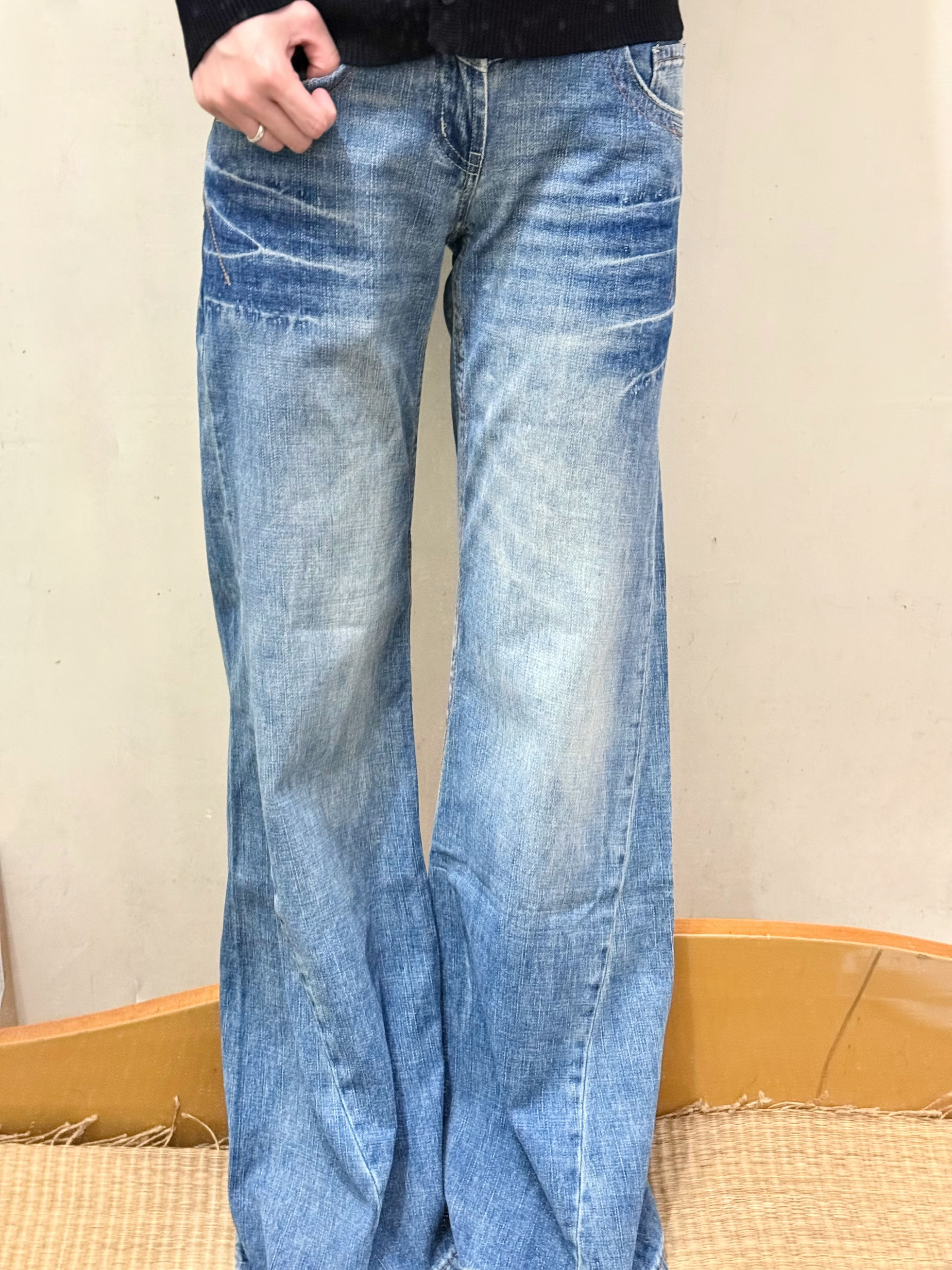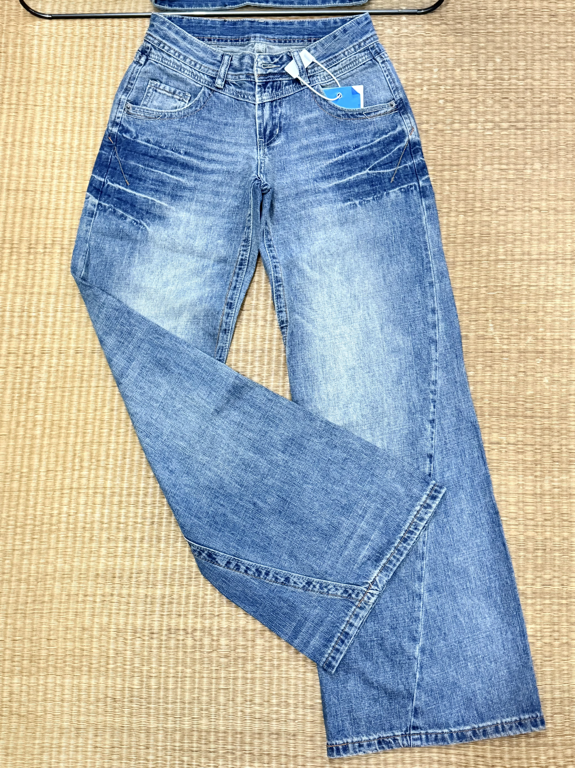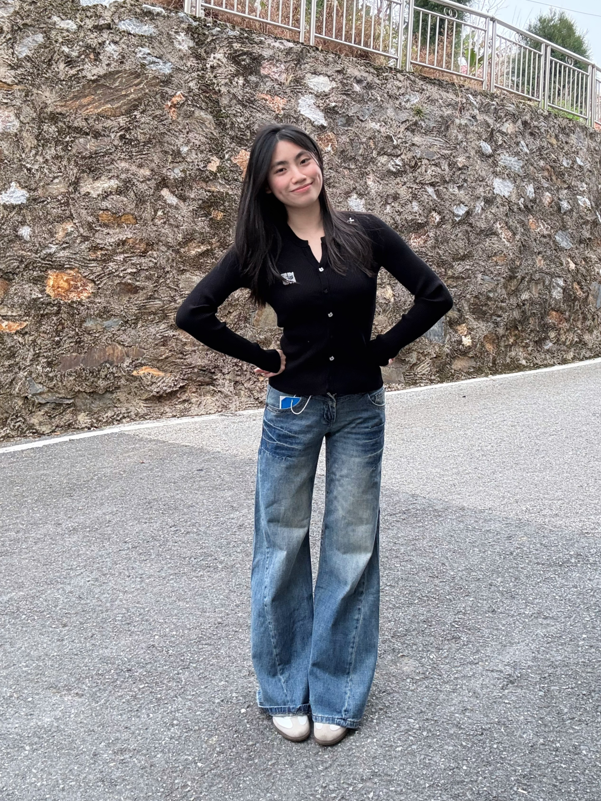 166 102穿的是M码 是低腰的设计 我还是第一次尝试低腰裤 有被惊喜到 这个裤型是不贴腿的微喇 显得比例很好呢 喜欢的宝宝可以参考一下哦