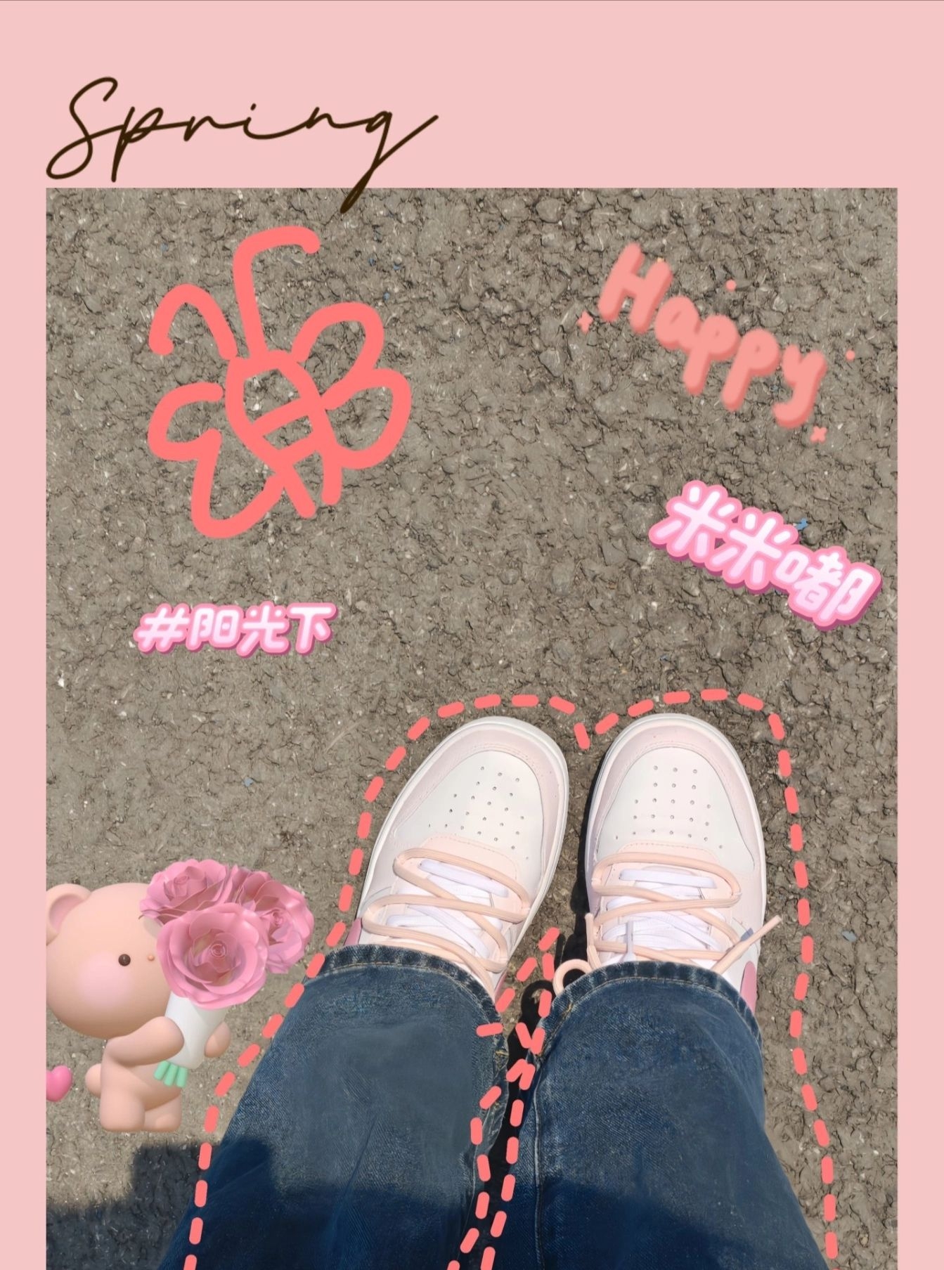 这双粉粉的 nike 定制鞋真的太嫩了 鞋身整体是白粉色,nike 的 logo 玫粉色,很油层次感 粉粉萌萌滴,侧面还有小蝴蝶۹(๑•̀ω•́๑)۶,还有不规则的小点点点缀 鞋底是蓝绿色,跟粉色撞色搭配清新感拉满, 鞋里是橙红色😍,还有两种鞋带,平时只用系外鞋带,很方便。 鞋子穿起来很舒服,鞋底软软的还有加上有足弓支撑,走路久了也不会累。 白搭小粉鞋,你值得拥有٩(•̤̀ᵕ•̤́๑)...