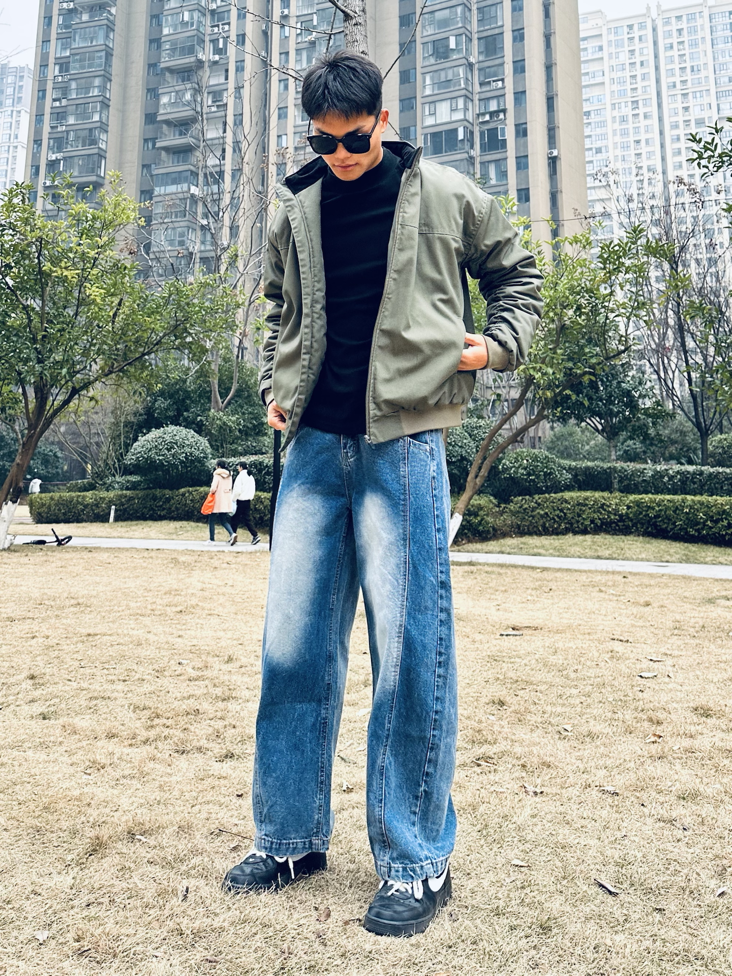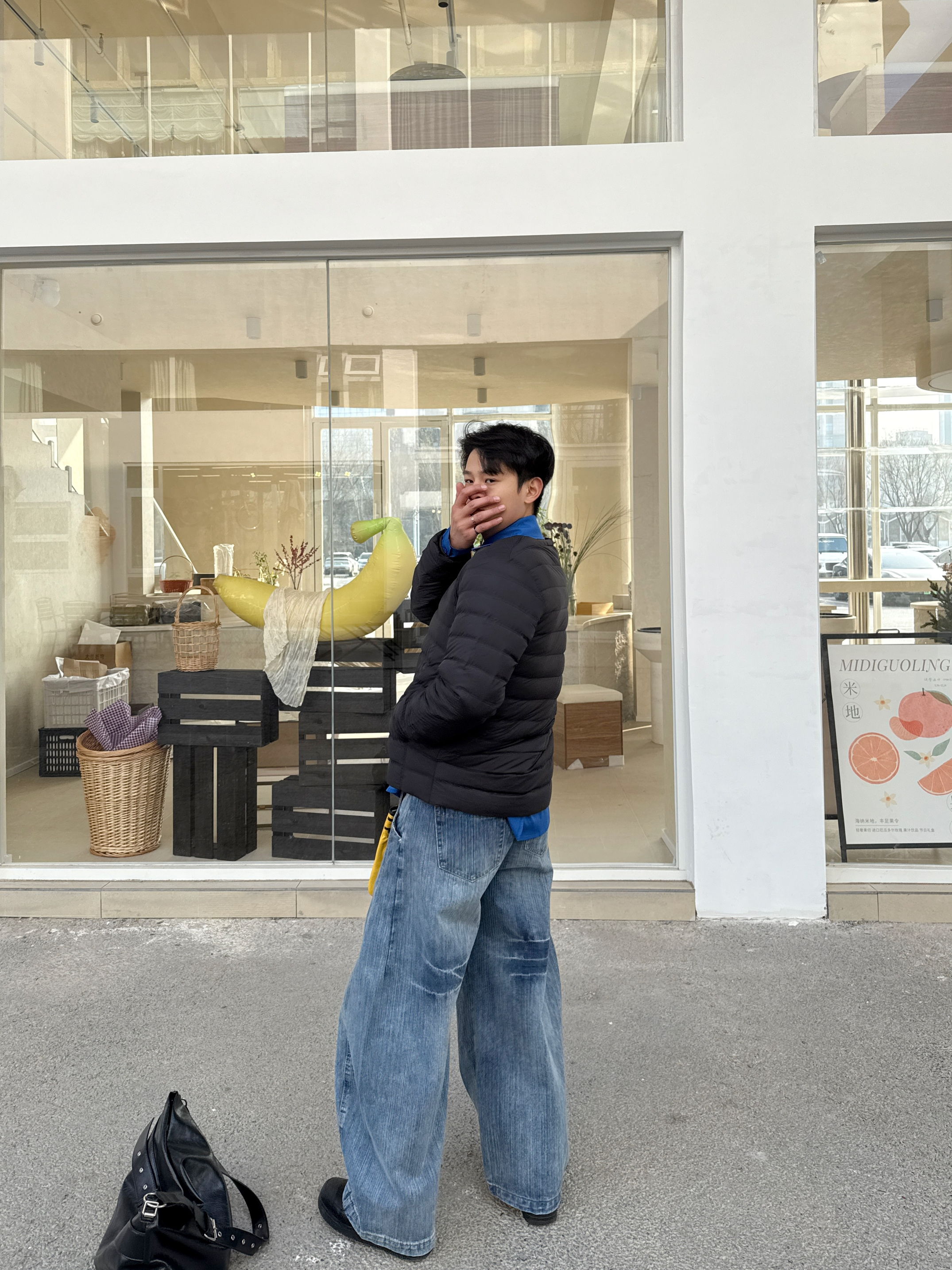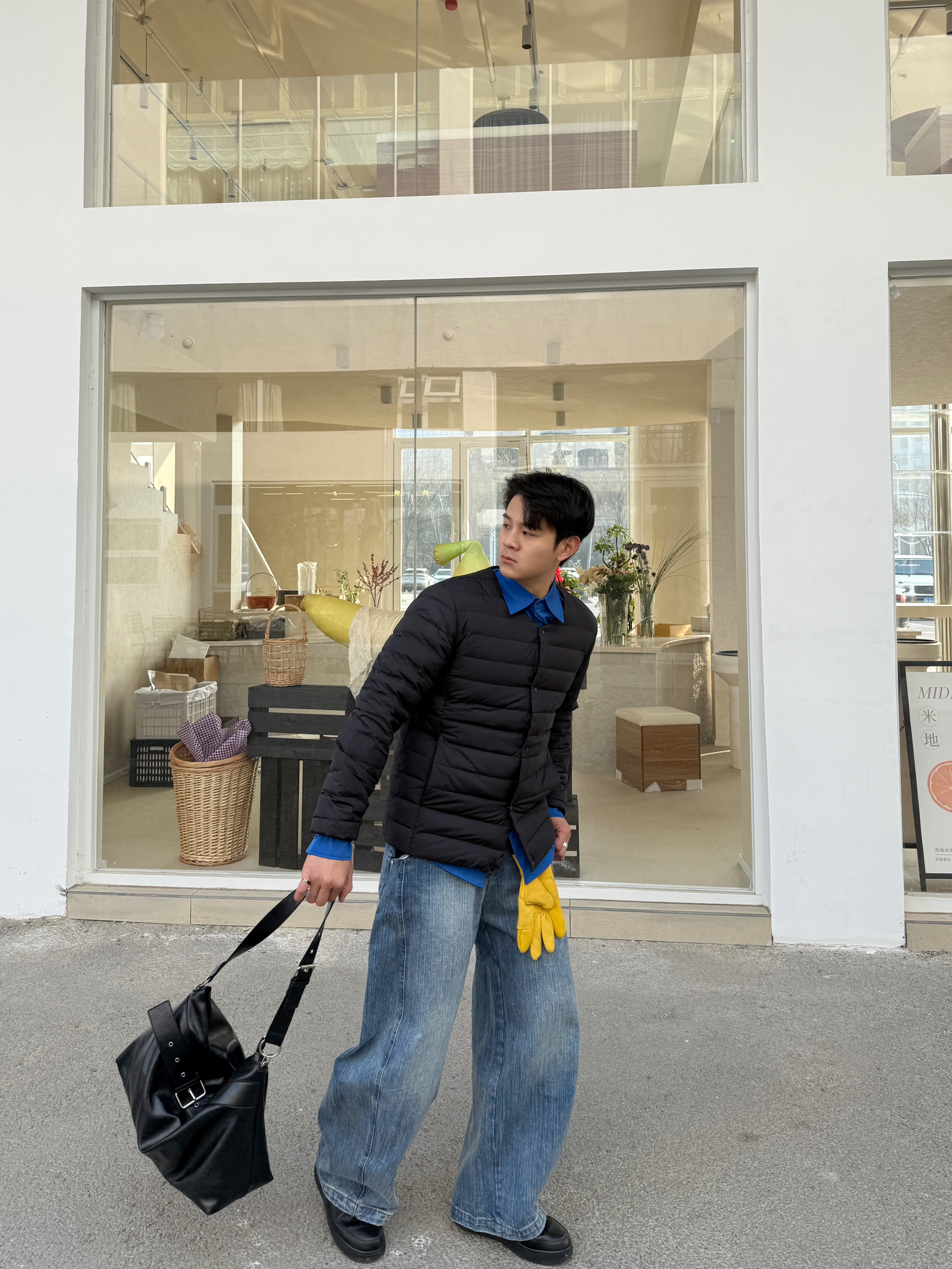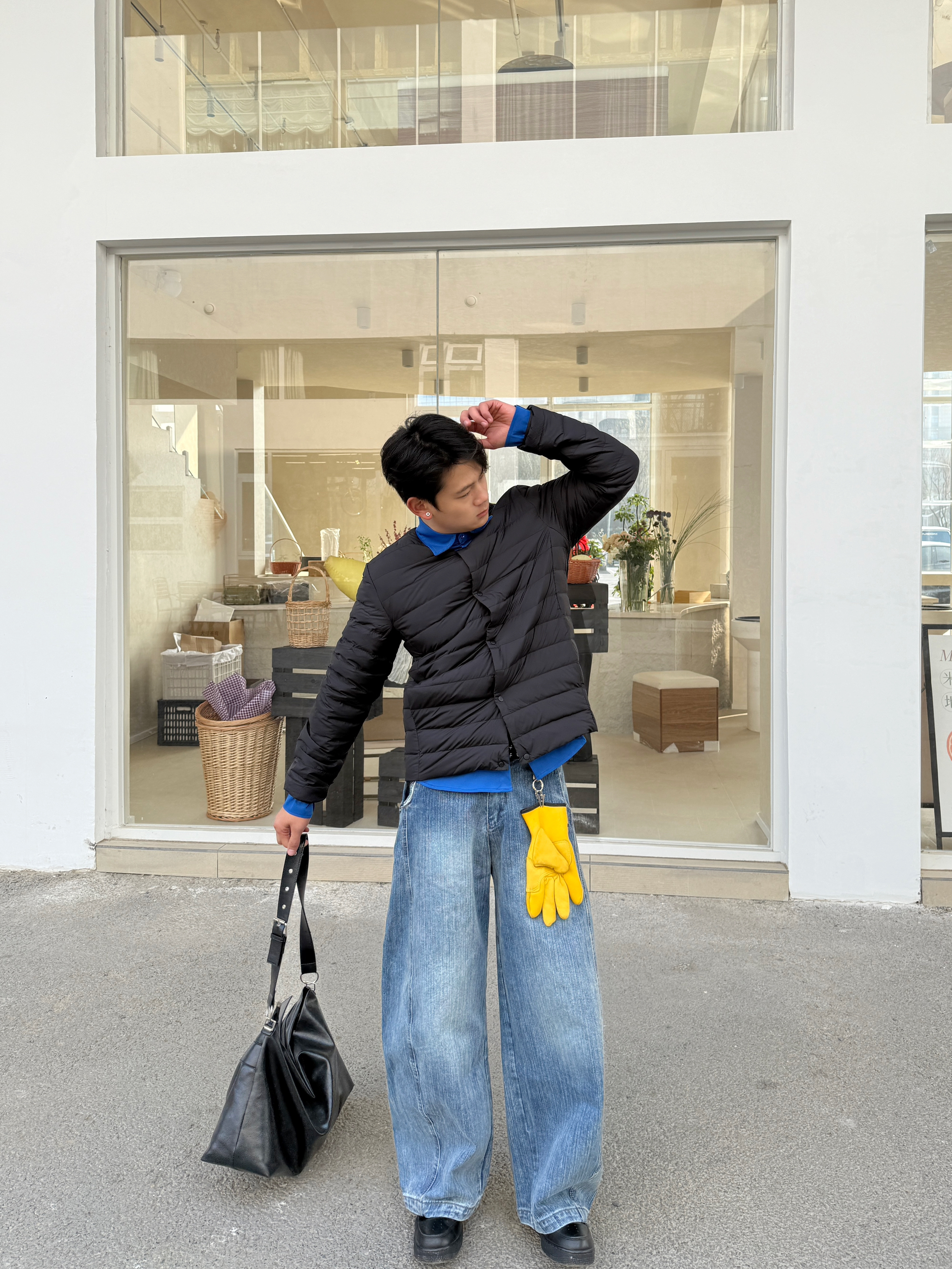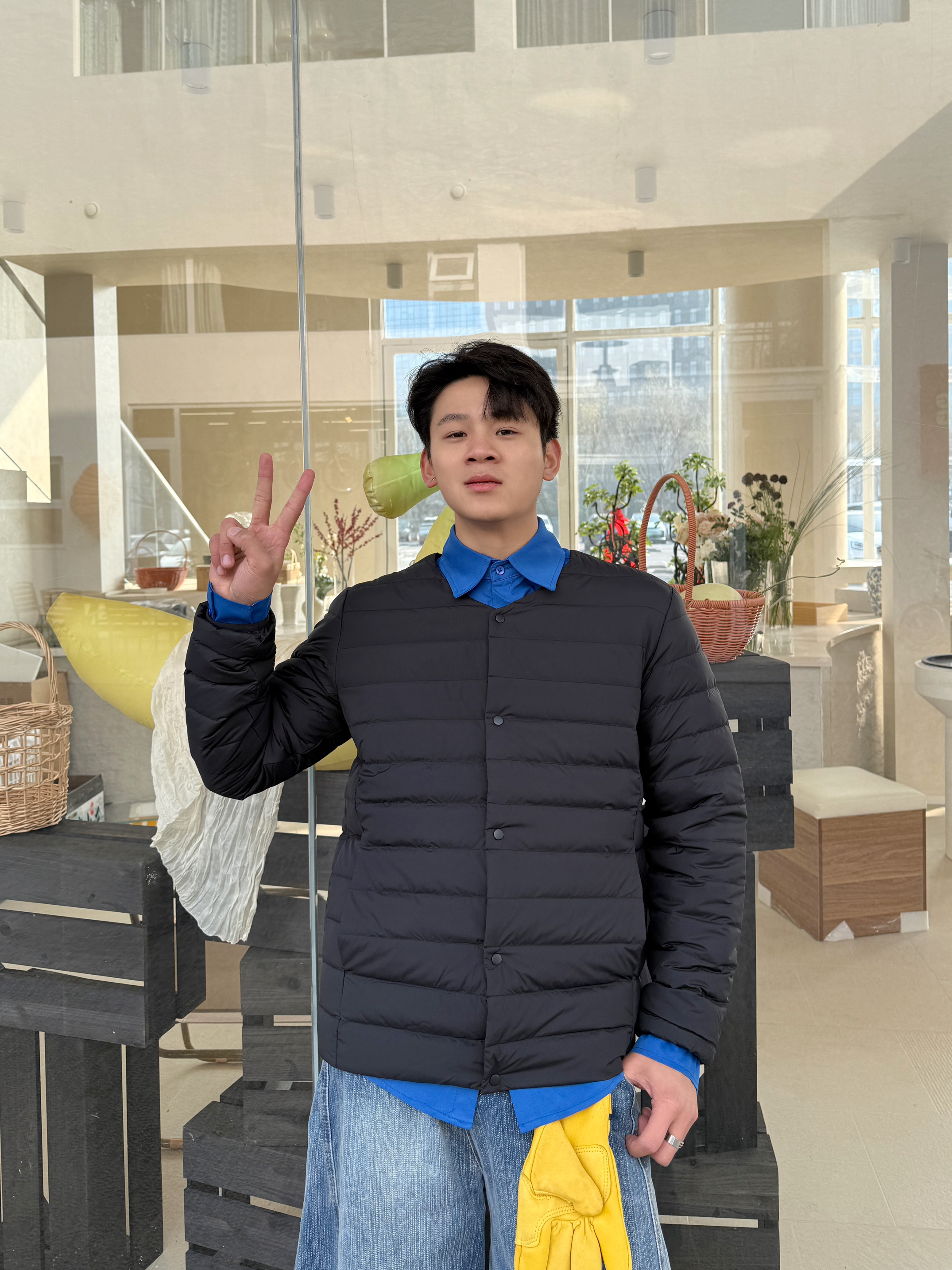冬日穿搭的层次感也很重要 上衣我选择一件轻薄排骨羽绒服内胆 内搭来一个蓝色衬衫 这样色彩鲜明,层次感十足~ 裤子我选择一件蓝色做旧水洗牛仔裤 直筒宽松的版型穿起来显高 暖冬这样穿摆脱路人感