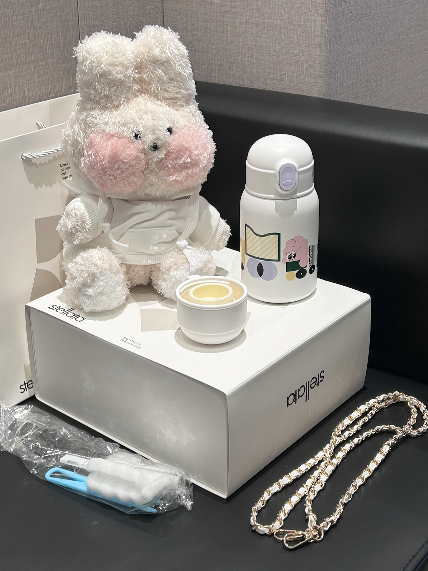 是我的介个保温杯礼盒啦 小兔造型的杯套我觉得很可爱捏 里面的杯子450ml 背着出门够我喝一天啦 不带水杯时候还可以当小包包用 礼盒礼袋的包装 送礼物也敲击合适呀 #生活好礼情报局 #潮流生活家的送礼清单 #这份礼物杀疯了 #送给Ta的暖心水杯礼物 #美美开局2026