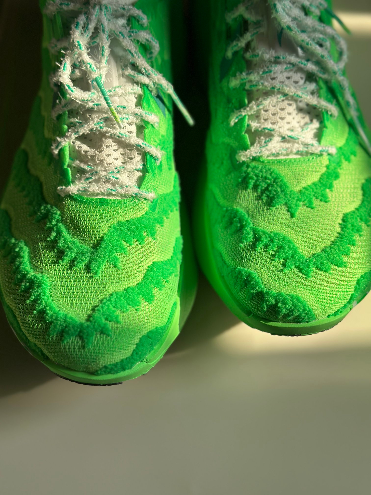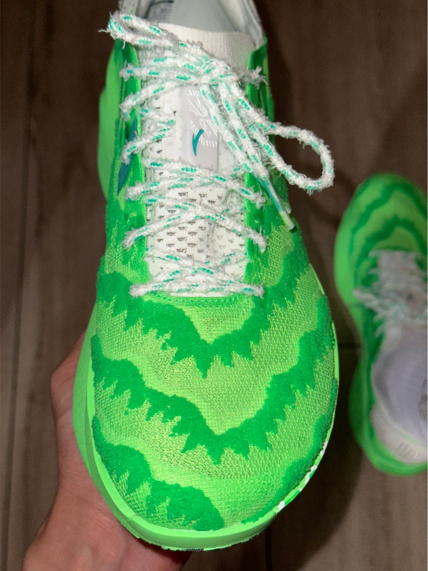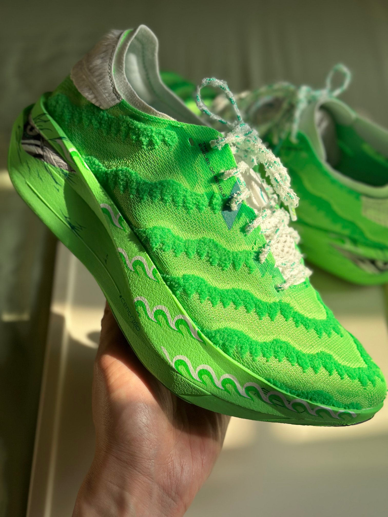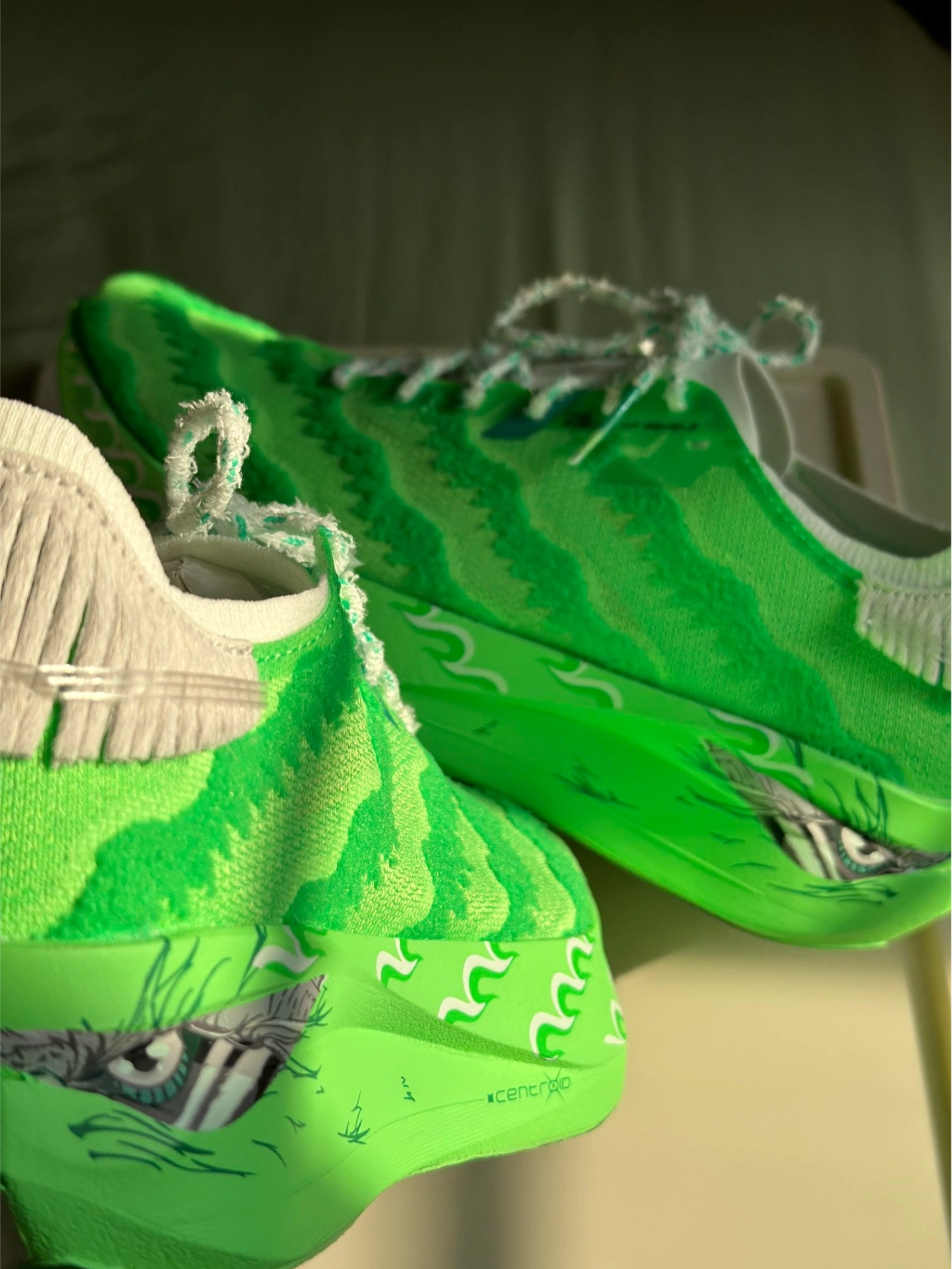 这双安踏C202 G9 2代醒狮配色国风拉满了!直接把岭南醒狮穿在脚上,青狮主色超吸睛,狮眼、火焰纹浮雕细节拉满,暗藏的传统纹样贼有范儿。 氮90中底+全掌碳板,脚感软弹到飞起,157g轻量化跑起来超轻快。AT - FIBER鞋面透气不闷脚,液态止滑大底抓地稳,颜值性能都没的说。[强_blue][强_blue][强_blue] 你会为安踏这双国风配色的碳板跑鞋买单吗?