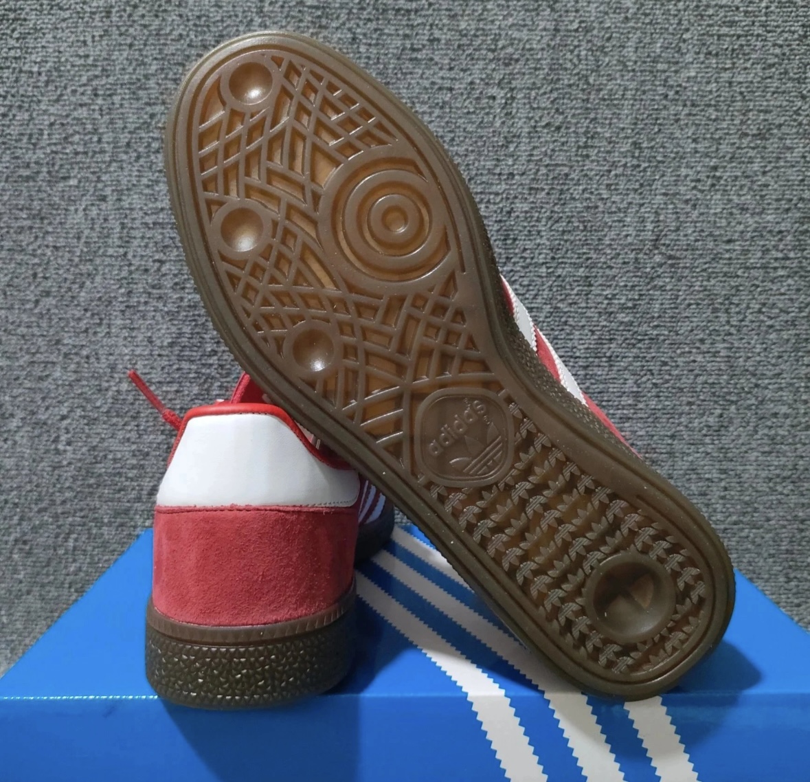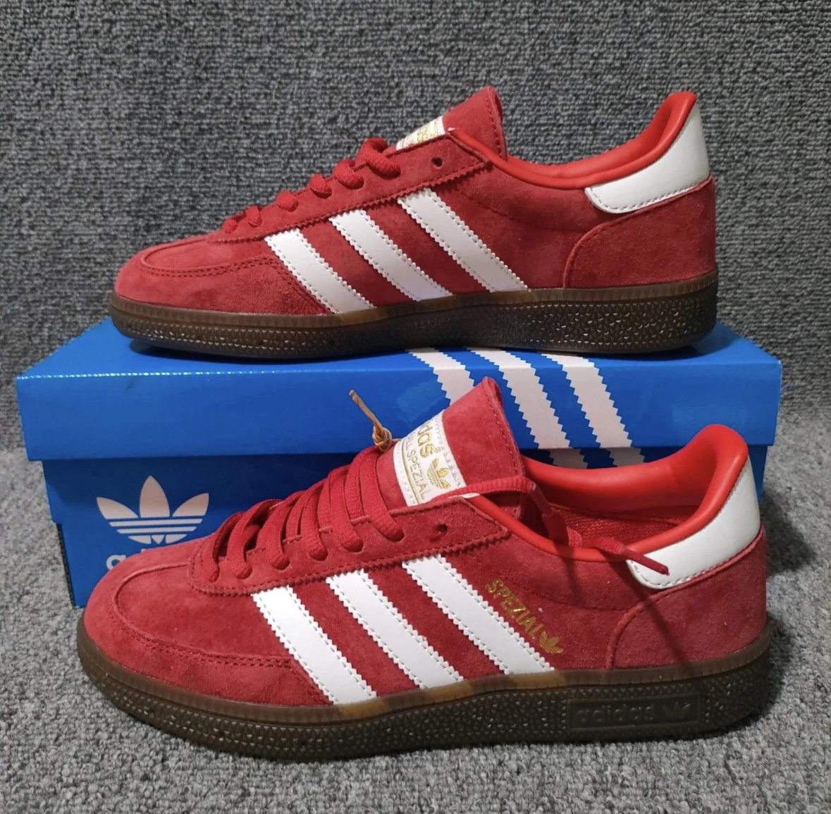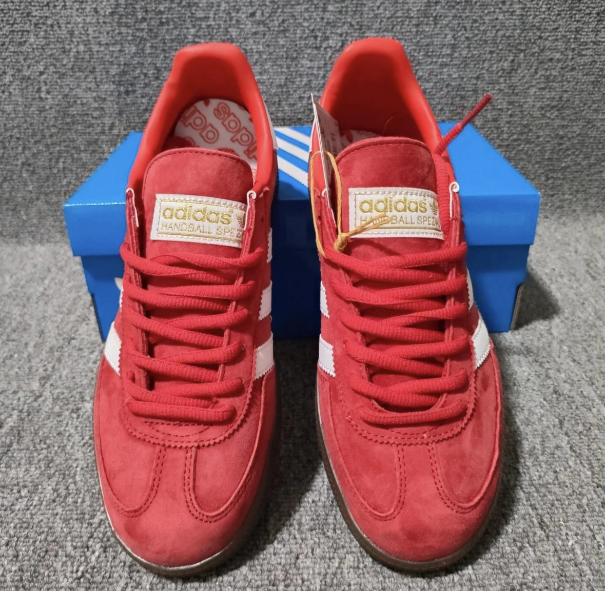 本篇笔记关联了【王安宇同款】 adidas Originals Handball Spezial 薄底鞋 T头鞋 德训鞋 板鞋 简约百搭复古轻便防滑耐磨 猩红/白色/金属金等商品,为用户提供真实的使用体验和购买参考。