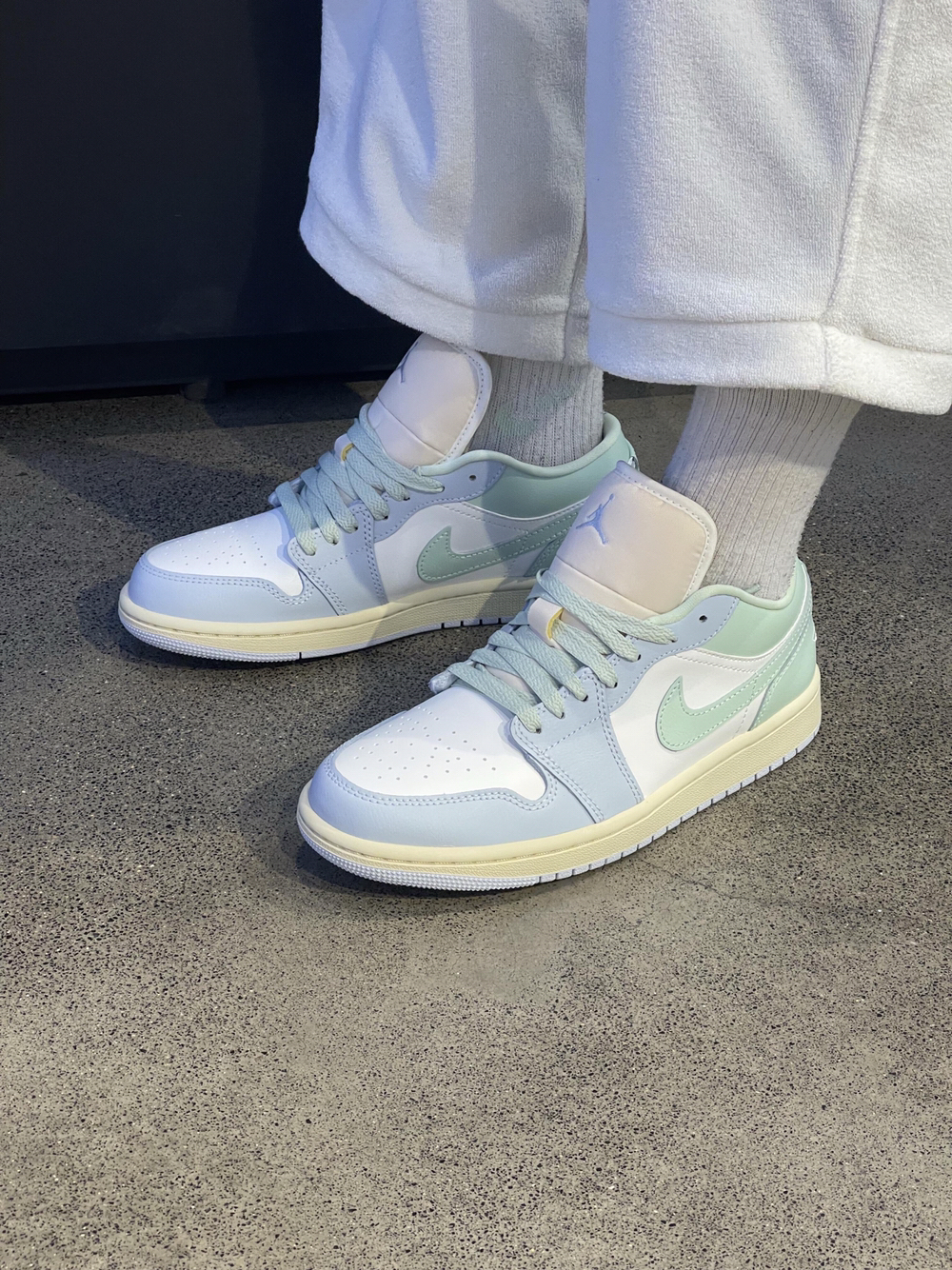 挖到宝了!这双baby蓝AJ低帮也太适合夏天了✨ 浅蓝+米白的配色清爽又温柔,黄皮上脚直接白一个度! - 搭配高腰牛仔裤+短上衣 → 美式甜妹感拉满,逛街被追着问链接 - 搭配碎花小裙子 → 温柔又元气,约会穿直接氛围感拿捏 - 日常通勤配阔腿裤 → 舒服又显活力,同事都夸我会搭 鞋型很贴脚,走一天都不累,而且特别耐脏,懒人狂喜! 属于闭眼入不会错的百搭款,蓝色系女孩冲就对了!