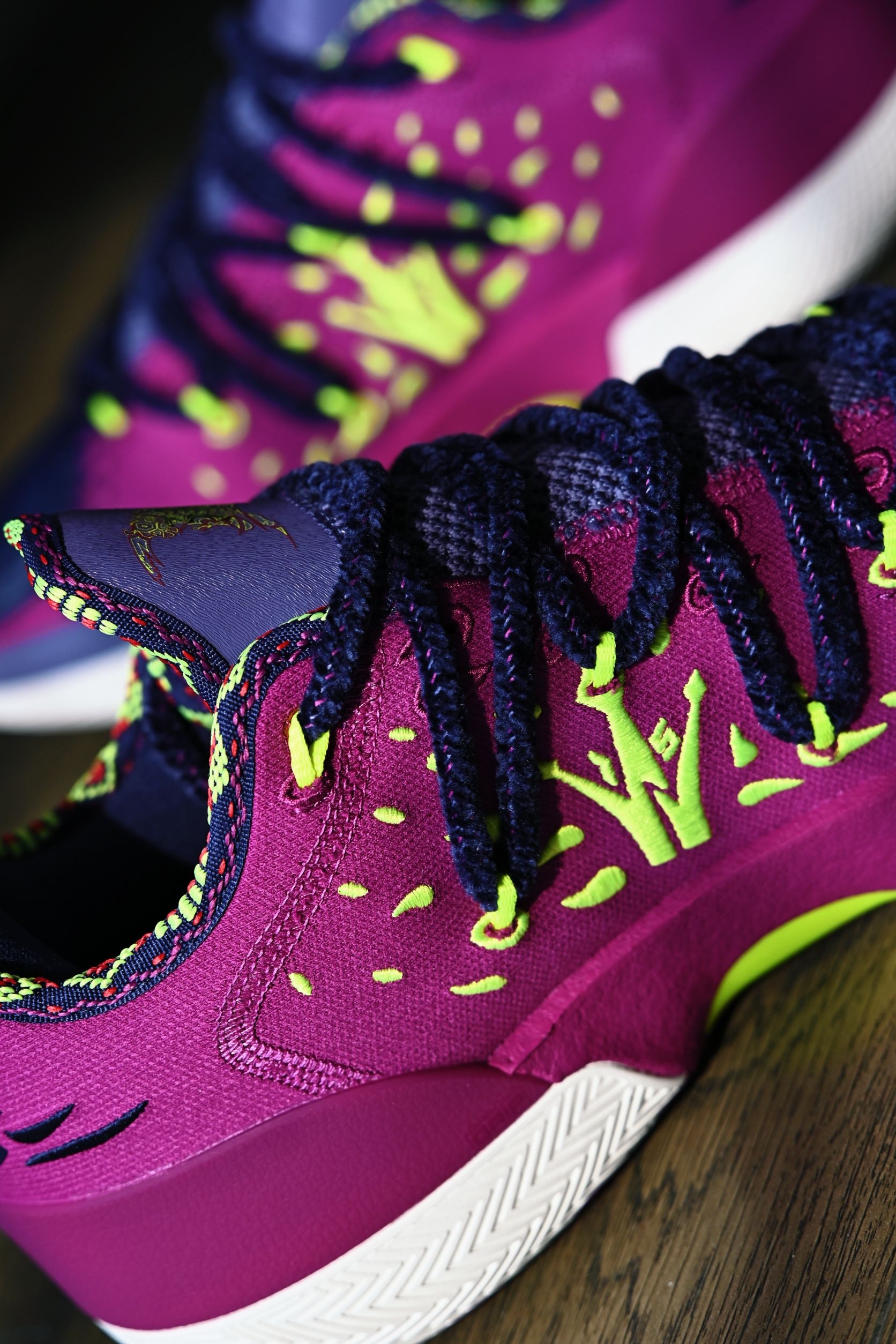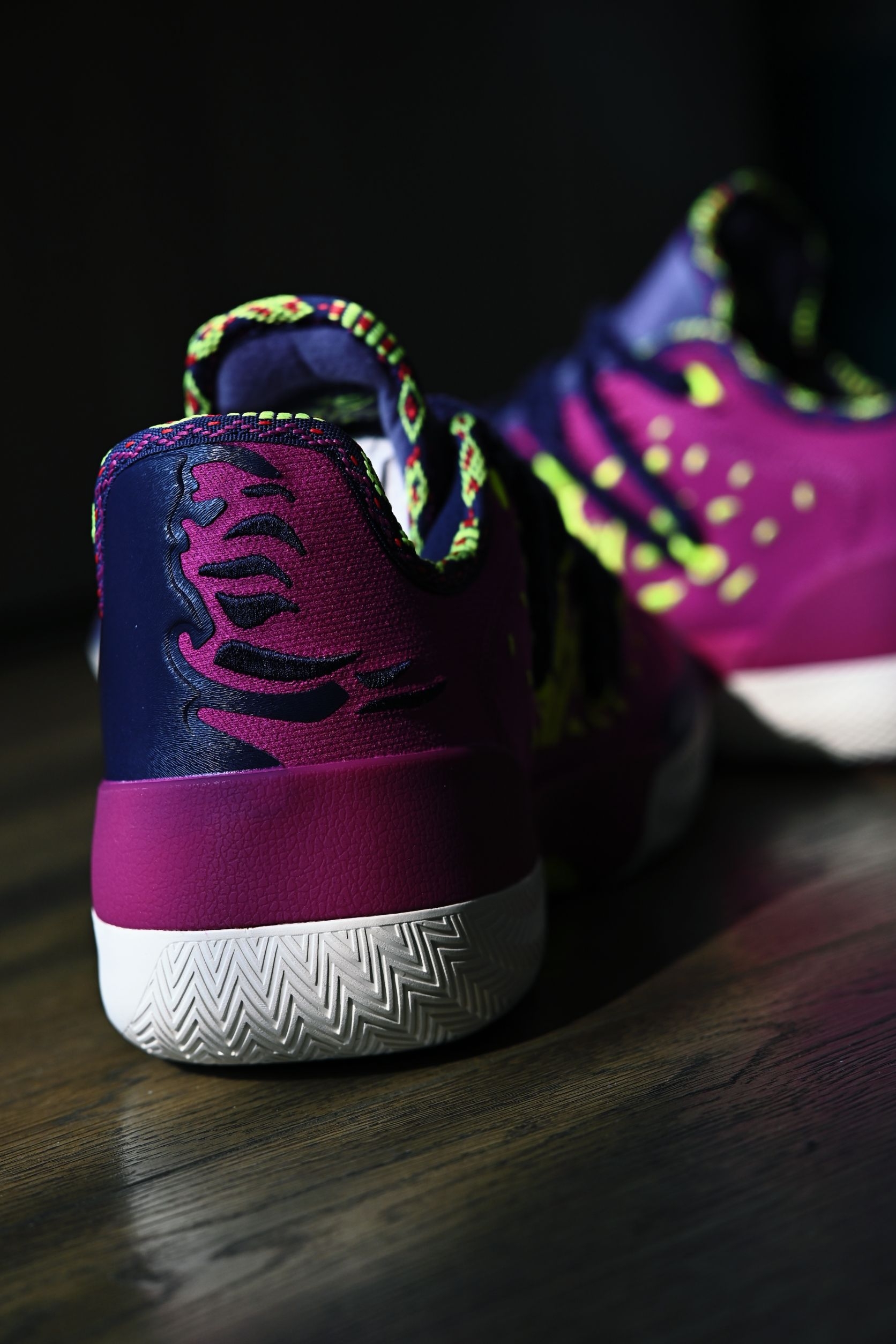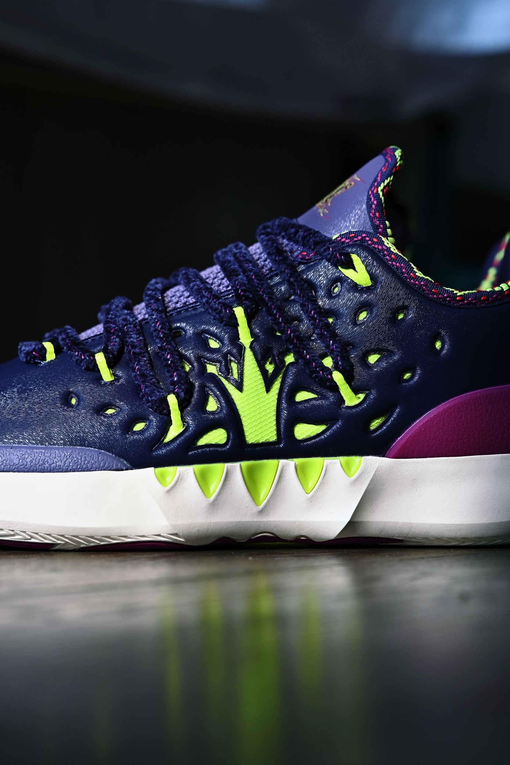 作为361°家的旗舰实战款,Joker2的整体质感都让我十分惊艳 外观设计一眼看去就知道是约老师的战靴 标志性的JOKER Logo,麂皮和皮革的拼接材质再加上这个毛茸茸的鞋带、和一代同款的马鞍元素,颜值这块完全挑不出刺啊 当然为了实战考虑,也配有一副常规的替换鞋带,全新的绑带系统包裹感非常好 这回二代同时推出了高低帮两个版本,兄弟们按照自己需求选择即可