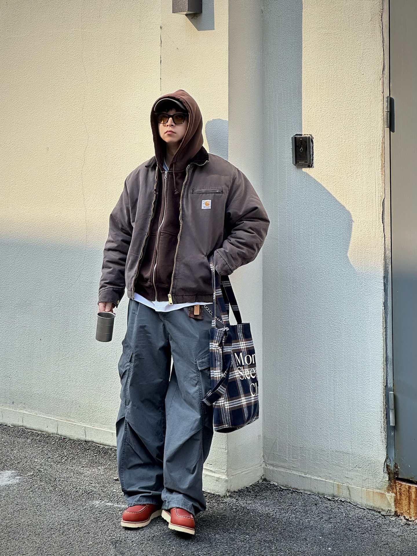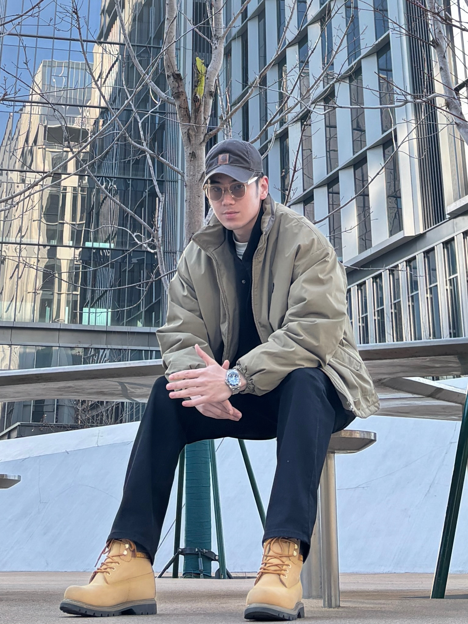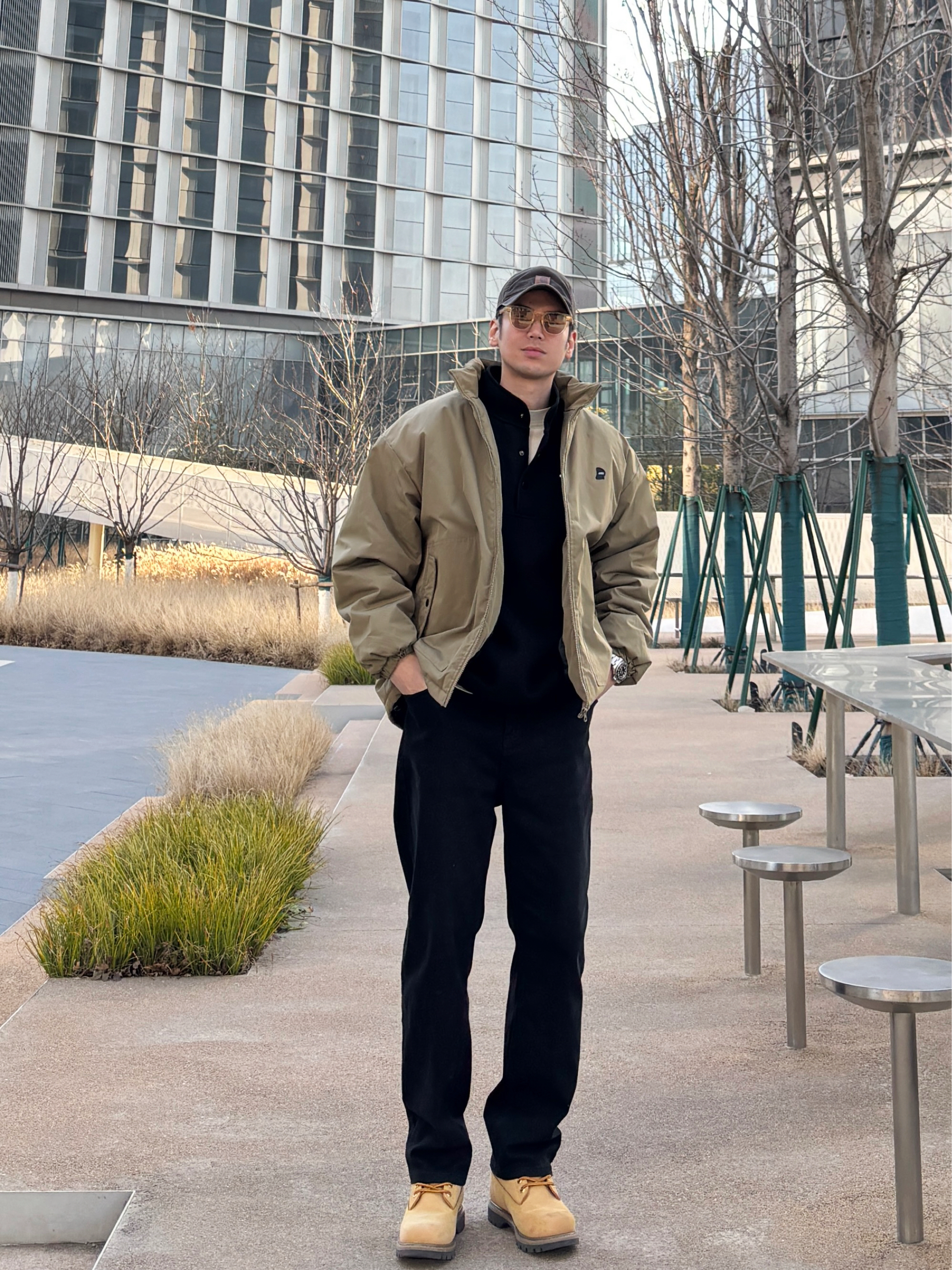男生冬季硬核穿搭还得看工装风叠穿😎 卡其绿立领棉服版型超正,小刺绣点缀不单调。 内搭黑色开胸纽扣卫衣,解开领口随性又自在。 黑色直筒水洗牛仔裤利落又百搭 最后穿双冬季必备的沙漠黄复古中帮工装靴,配色高级又能显腿长✌ 整体风格硬朗又带少年感,随便搭个棒球帽,美式复古那范儿不就有了嘛🙋♂️ 这套工装叠穿look,你们觉得搭棒球帽还是冷帽更有型,评论区里聊聊吧🫡 - 今日搭配 衣服裤子:NICE L...