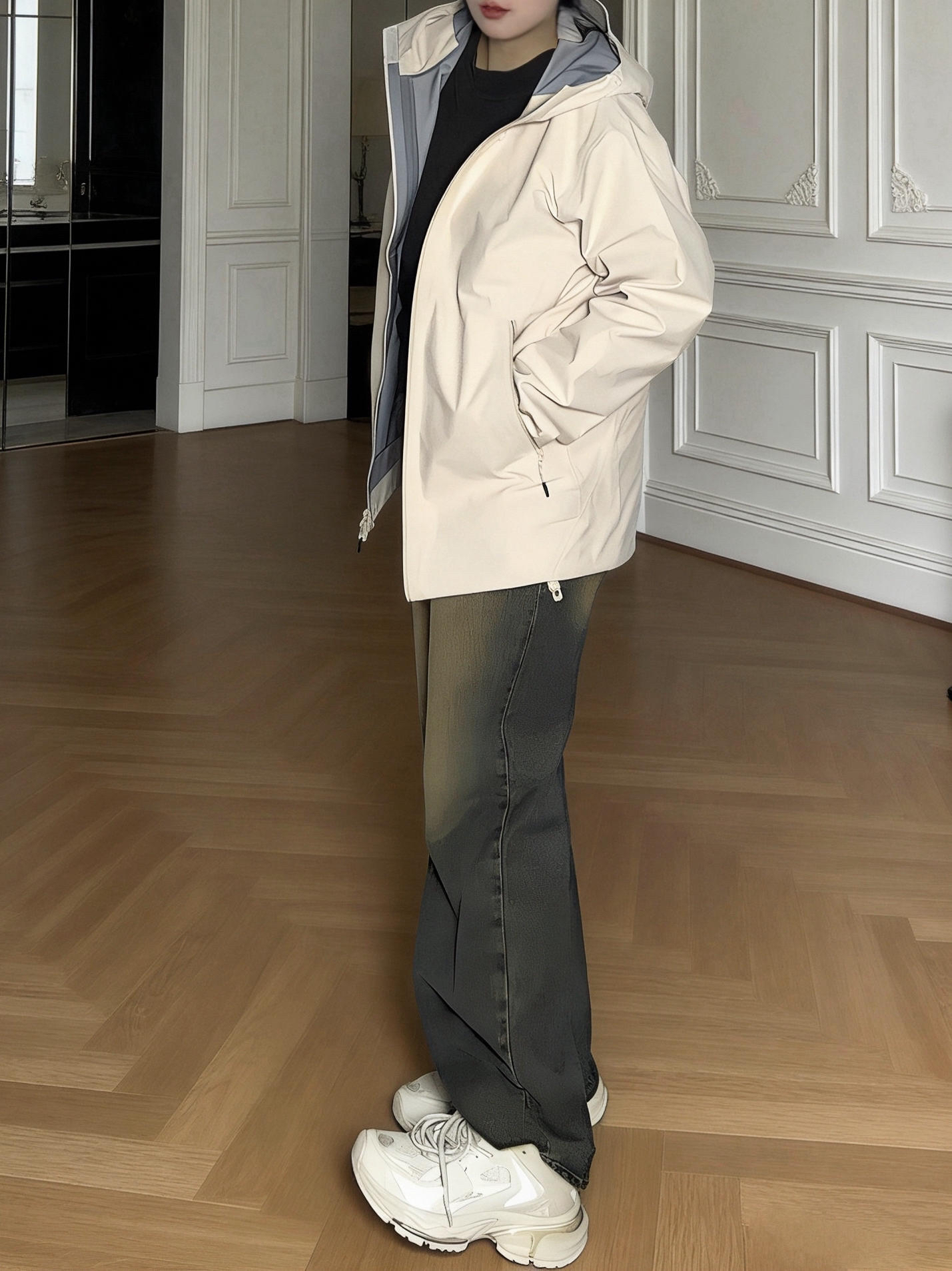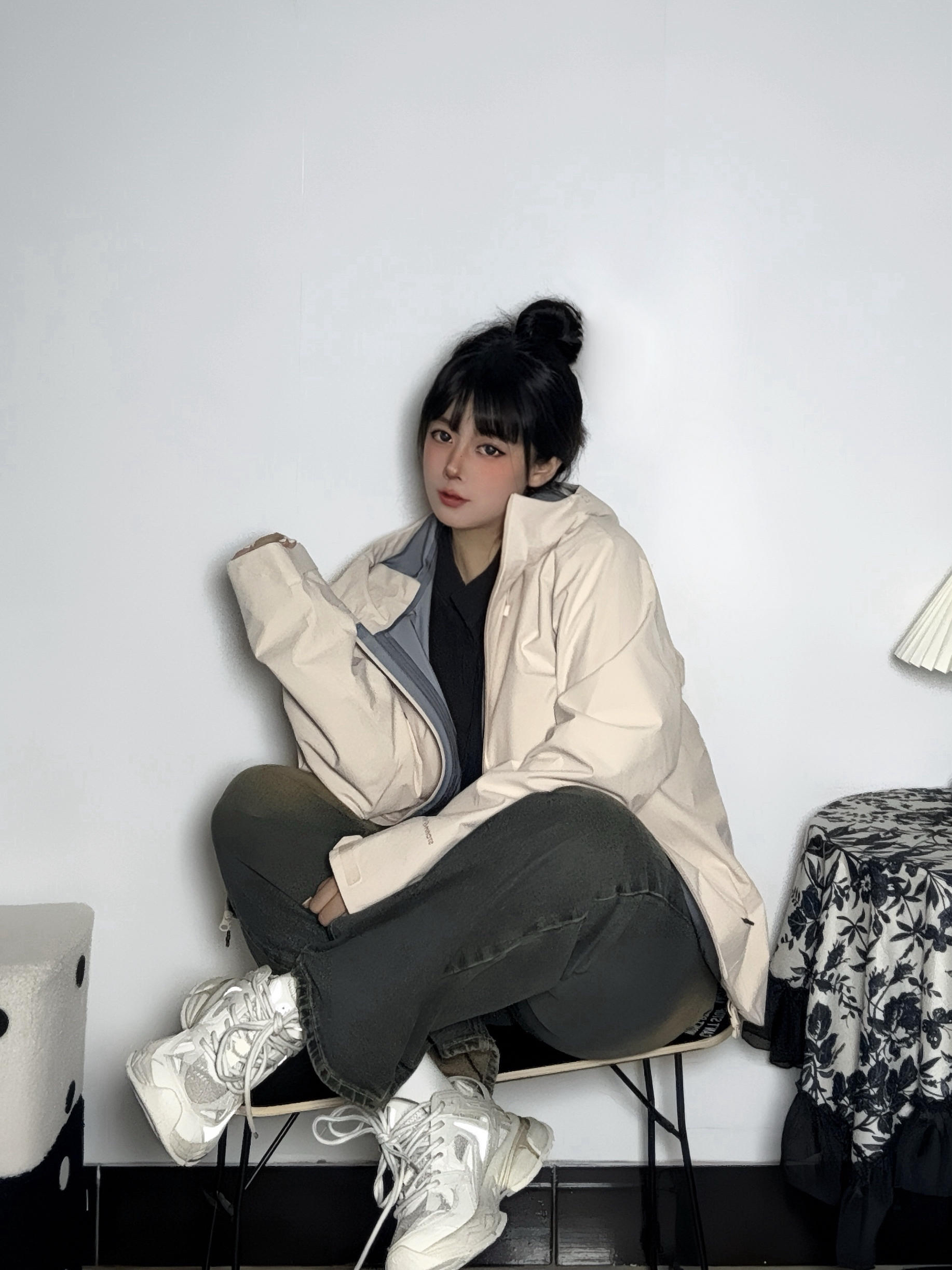 这身就是通勤天彩~休闲又舒适 保暖的冲锋衣和复古老爹鞋松弛感🆙 鞋网面透气不会闷jio 线条的设计也很利落 虽然有增高但鞋身不笨重 走路也比较轻哦 逛街也是OK嘟 是那种偏米白的颜色 更有复古做旧感啦~ 尺码参考:正码 👔: PELLIOT 👟: BASLS
