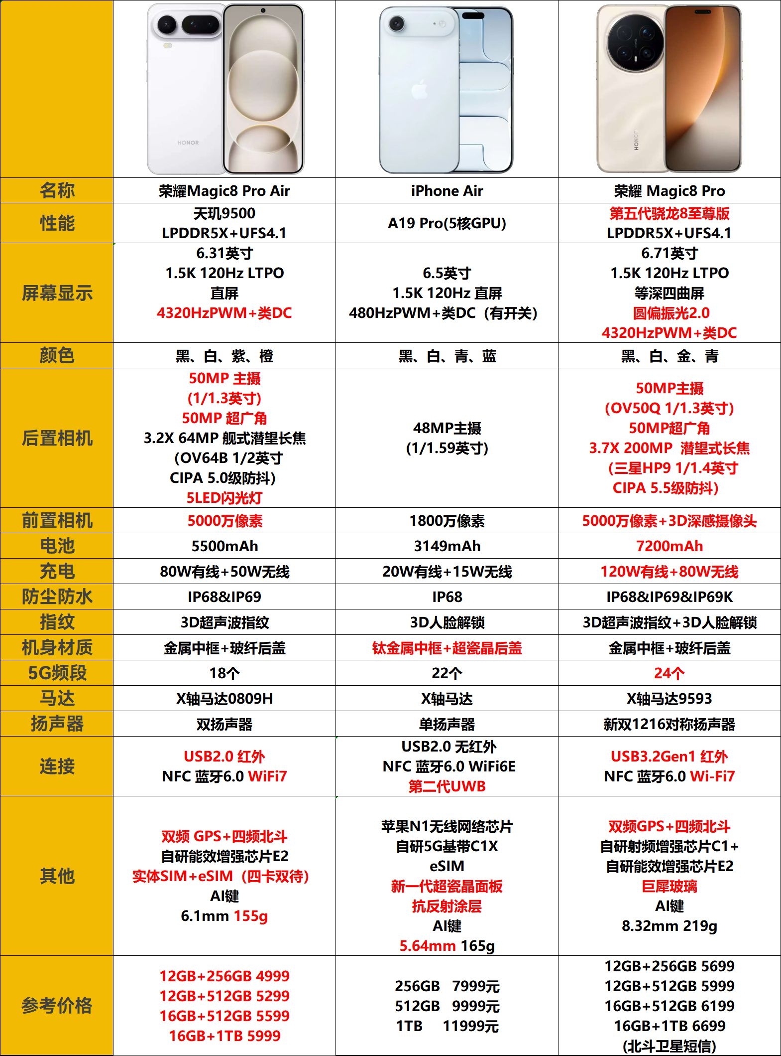 本篇笔记关联了HONOR/荣耀 Magic8 Pro Air 5G 手机 轻至155g 薄至6.1mm 小至6.31英寸 全焦段闪光人像 旗舰芯片 视野无限 四边 羽白等商品,为用户提供真实的使用体验和购买参考。