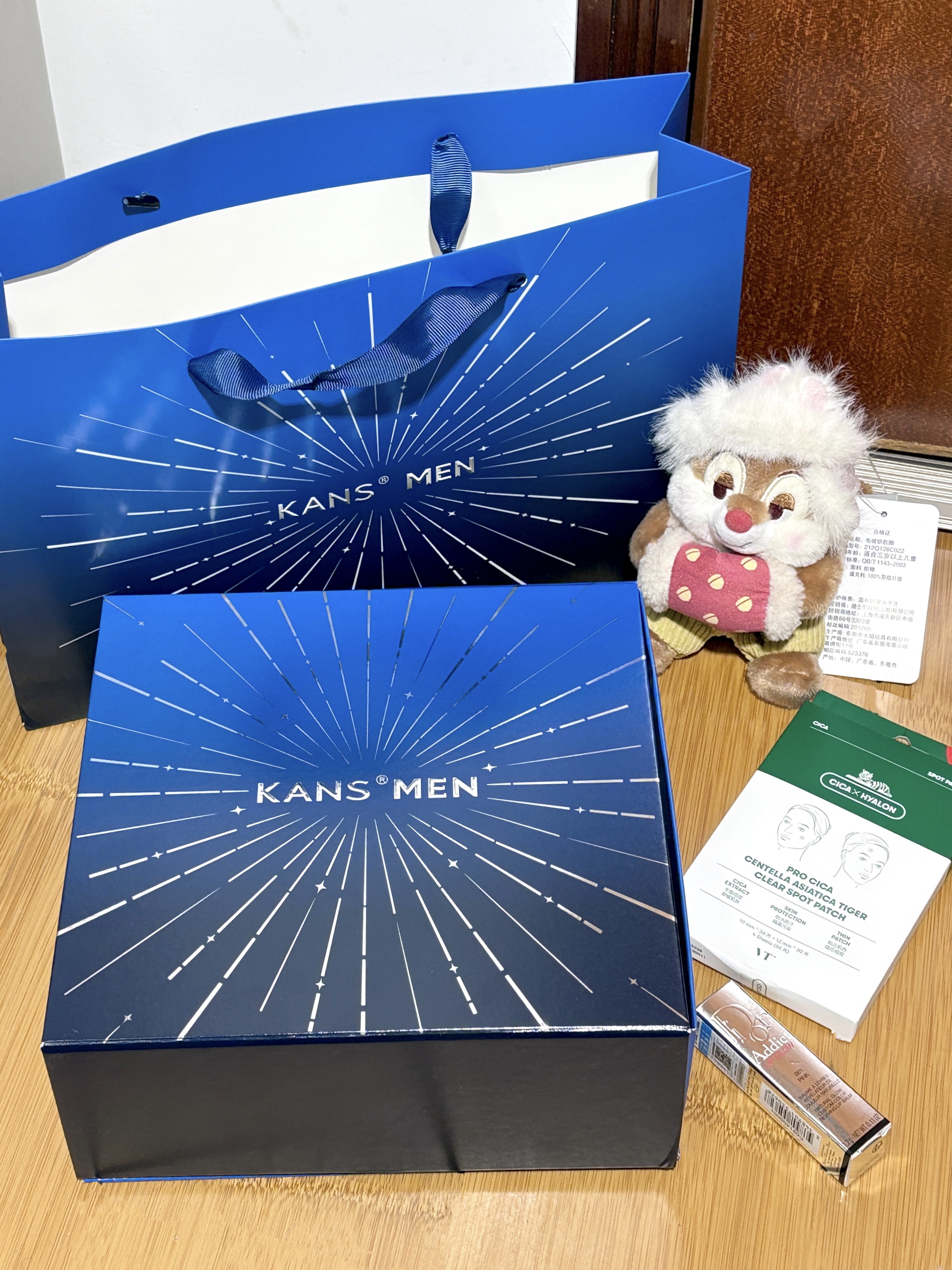 我挑个适合送男朋友的新年礼物 就是这个韩束的男士护肤礼盒 蓝色包装质感拉满 送礼敲合适 里面有水 乳 洁面 基础的护肤都配齐了 用完后清清爽爽的 直男护肤一步到位