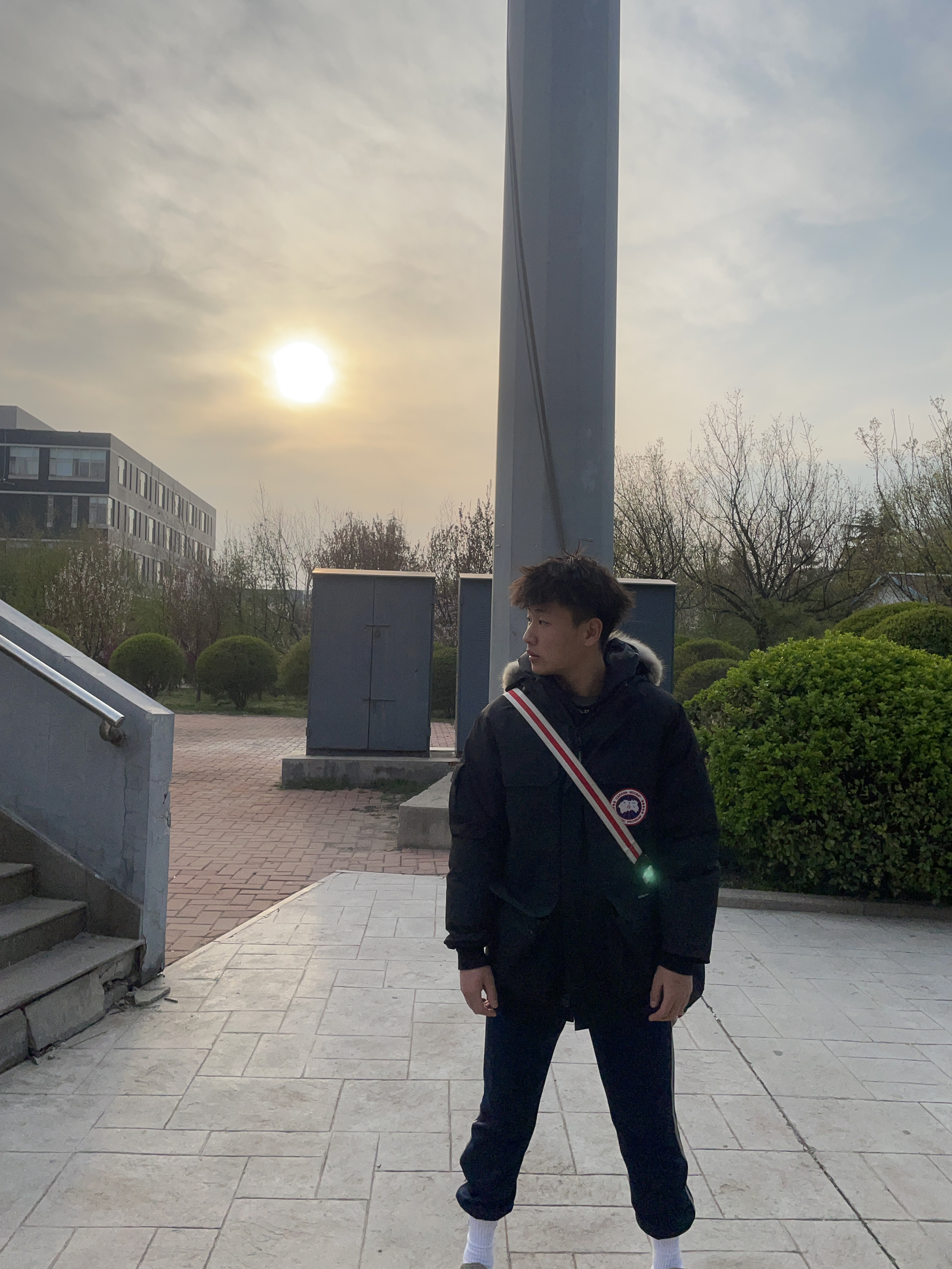 大鹅羽绒服 保暖又出片 上身很帅 裤子是耐克的束脚裤 鞋子当时穿的椰子没拍进去🥹 背的包是耐克的篮球包 很适合打篮球的兄弟们 能装的东西也很多