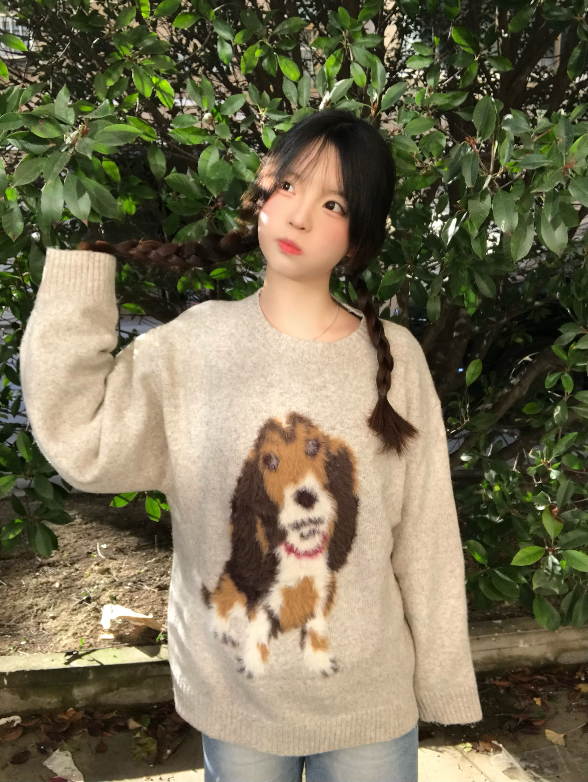 燕麦色的复古狗狗图案上衣也太戳我了!情侣款设计和闺蜜or对象搭着穿超有氛围感,宽松的版型藏肉又舒服,慵懒的针织质感贴身穿软乎乎的,随便搭条牛仔裤就很有复古休闲那味儿,秋冬穿它幸福感拉满~