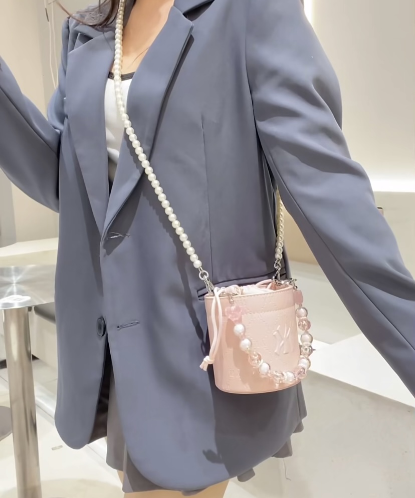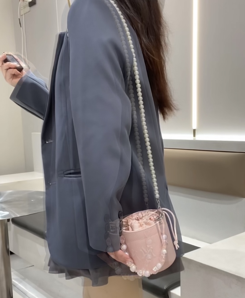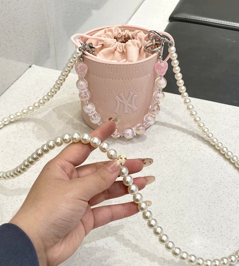 分享一下,我最近听网上吹嘘的MLB煤气店居然会送包包 不信邪的我直接下了一单 没想到到手居然真的送了一个粉粉嫩嫩的小水桶包 你别说背在我身上还挺可爱呢 颜值简直太在线了 被我简单地DIY了一下 给他加了一个配饰和珍珠斜挎链 约会直接甜美出门~
