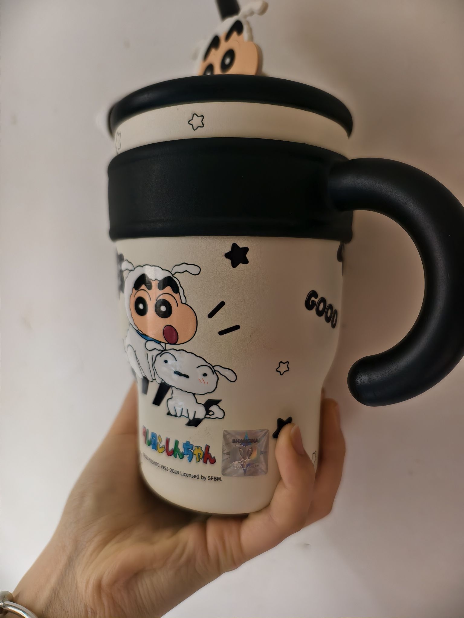 本篇笔记关联了CRAYON SHINCHAN/蜡笔小新 700ml 316L不锈钢 保温杯 ZX-1101 双饮设计巨无霸直饮带吸管 黑色小白等商品,为用户提供真实的使用体验和购买参考。