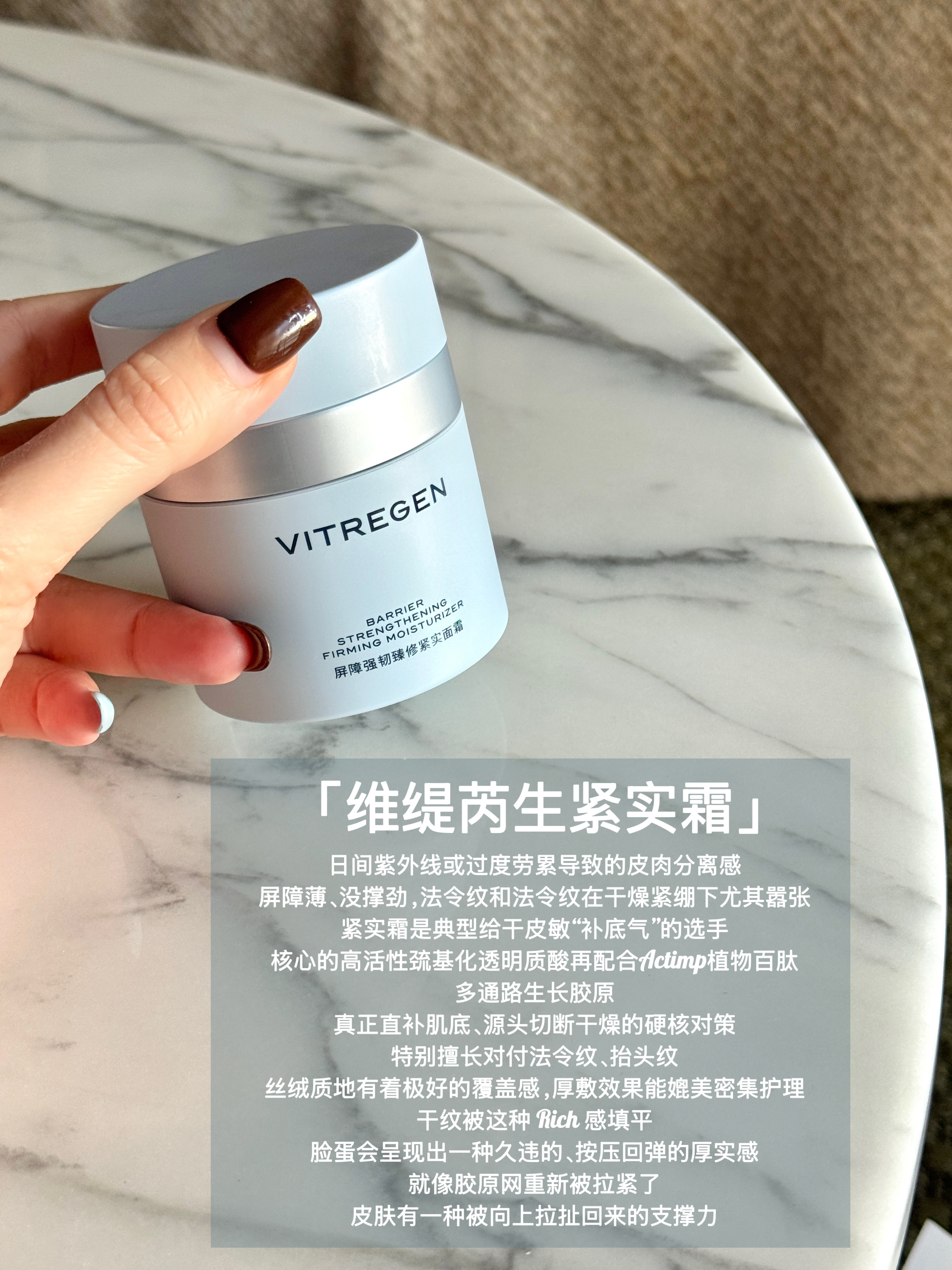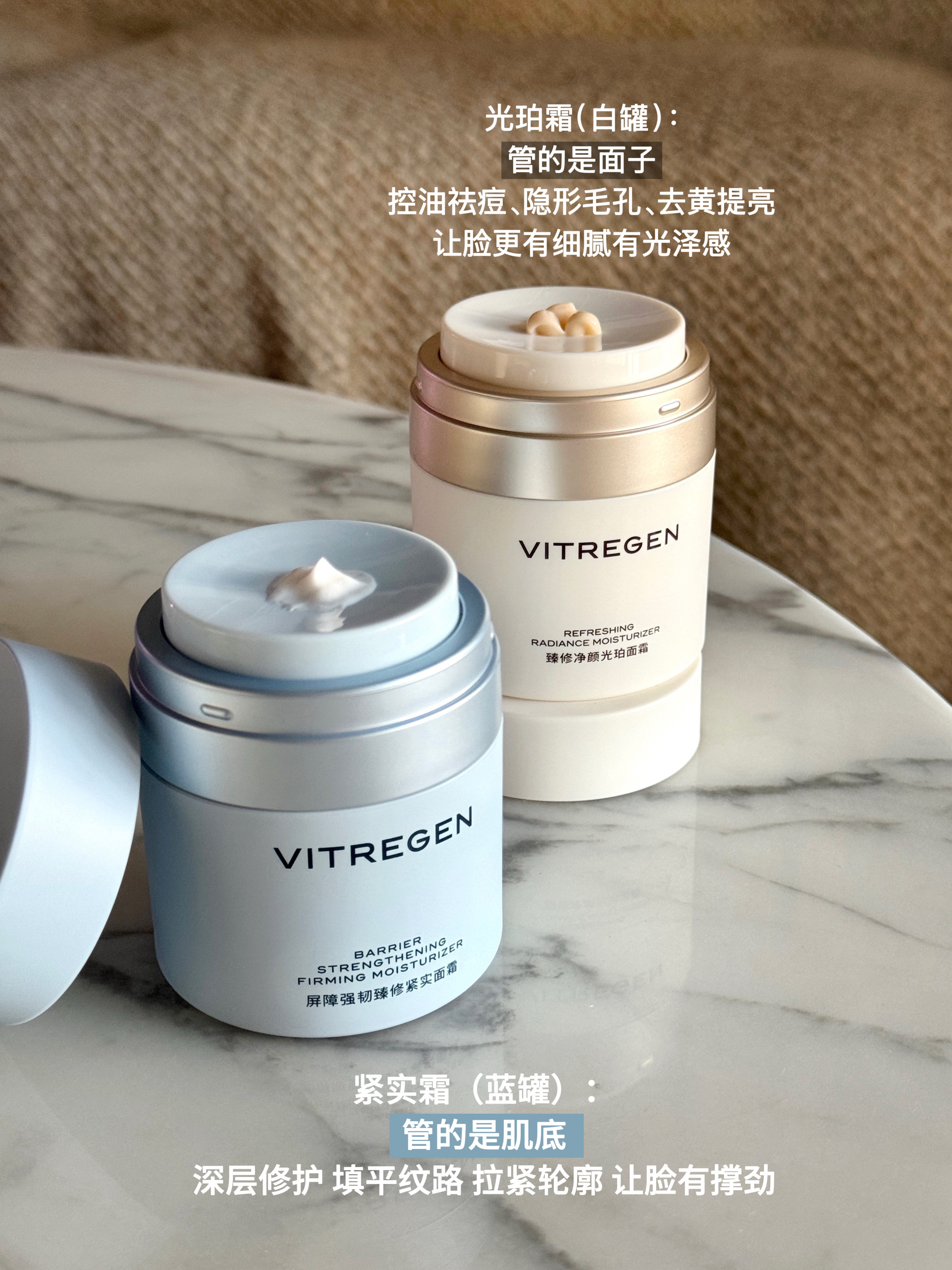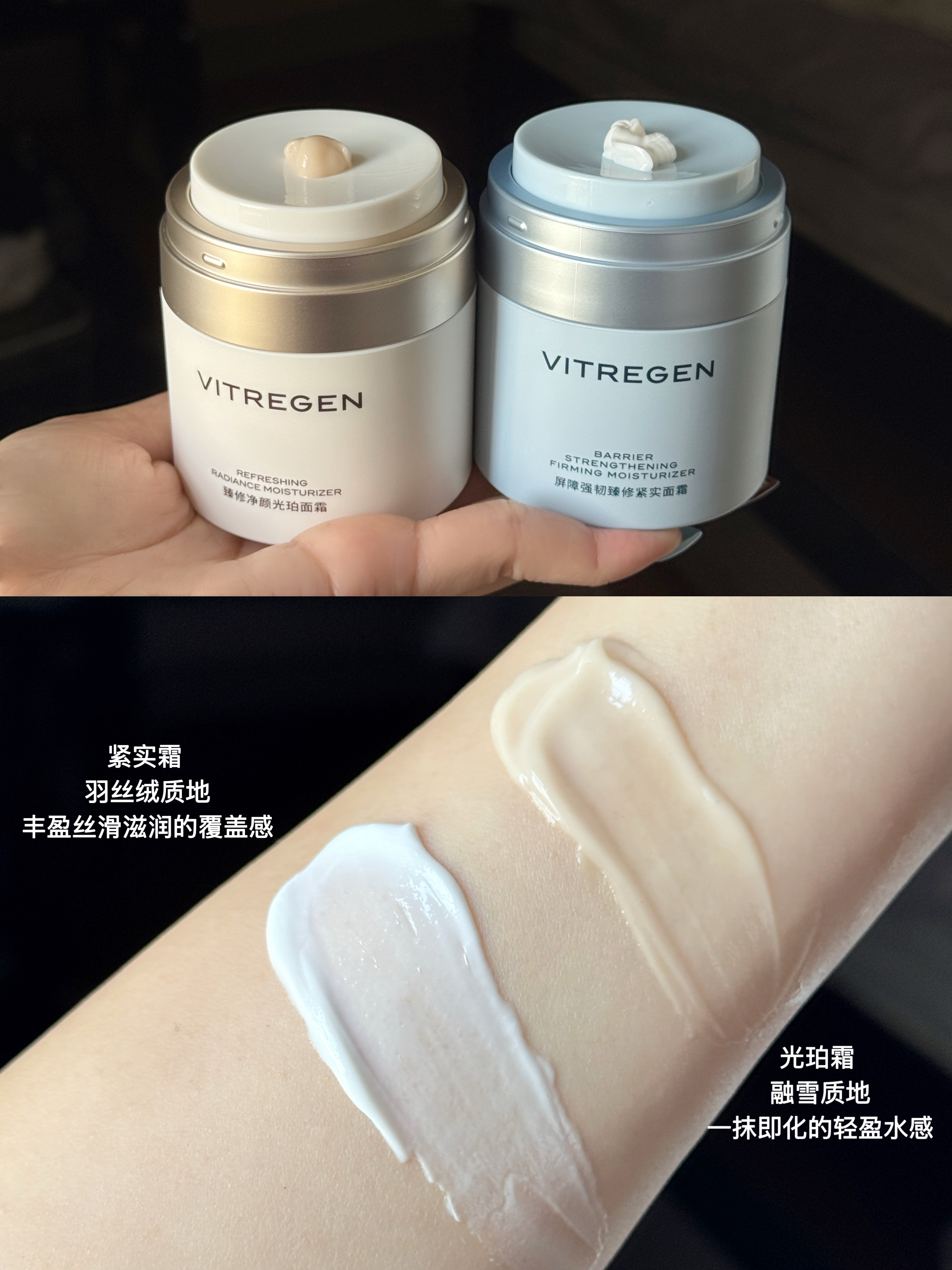 本篇笔记关联了VITREGEN/维缇芮生 屏障强韧臻修紧实面霜 淡纹充盈 保湿补水、VITREGEN/维缇芮生 光珀霜臻修净颜面霜 修护敏肌紧致控油祛痘滋养 细致毛孔等商品,为用户提供真实的使用体验和购买参考。