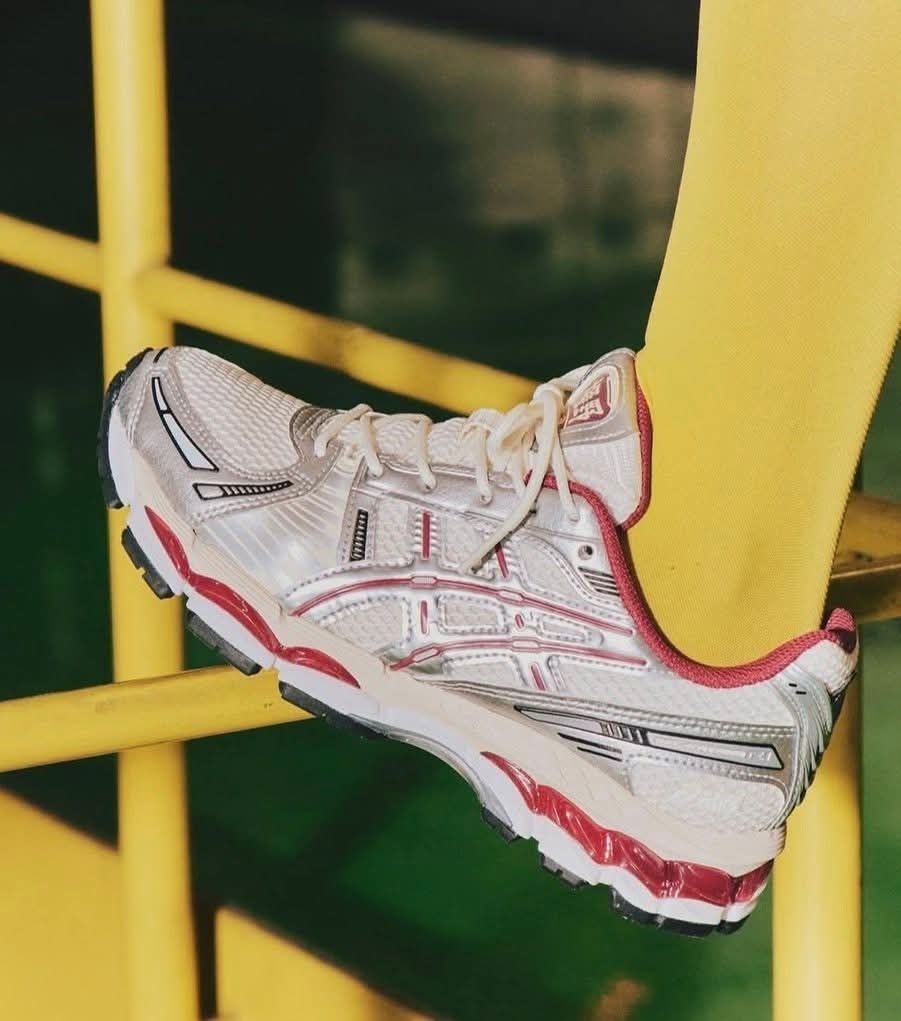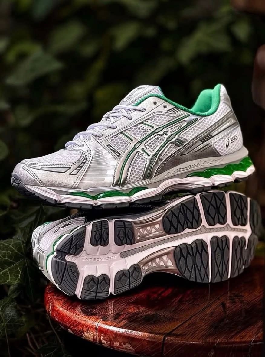 🔥复古跑鞋的顶流来了!ASICS GEL-KAYANO 12.1银红/银绿配色,金属质感的银白鞋身撞色复古红/活力绿,把千禧年的未来感和街头潮流直接焊在脚上。 网眼透气鞋面+GEL缓震科技,上脚像踩云朵,懒人秒出门的快乐谁懂!不管是搭配牛仔裤还是运动短裤,都能轻松拿捏复古高街风。