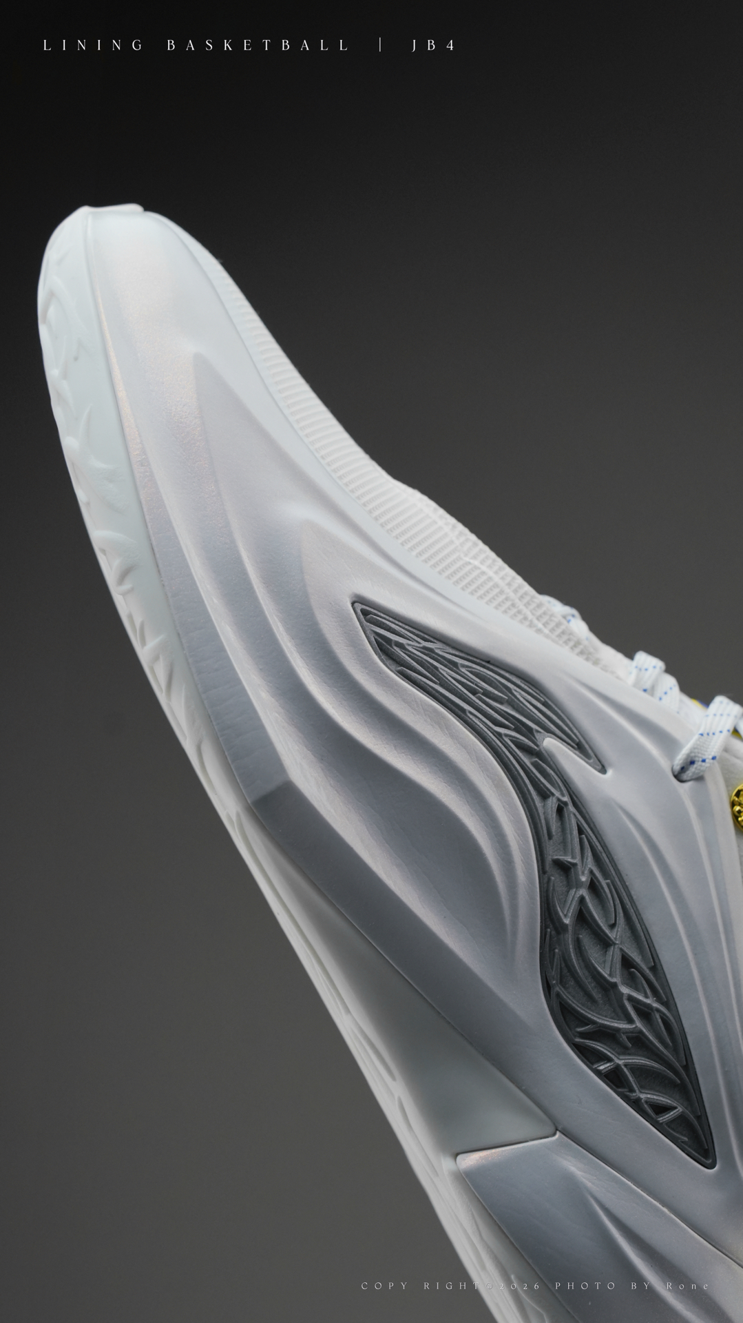 💙又是一个新配色,JB4这双“勇士”通体白的鞋身干净利落,一种大大方方的气派感受。但当你细看之下,它又巧妙的融入了高光细节,珠光漆覆盖的鞋面在不同光线下泛出细腻光泽,再点缀上勇士队蓝、黄与金色,整体既有球队主题的呼应,又不失高级感。 实战性能不用多说,冲击型碳核芯提供清晰反馈与推进感,全掌GCU大底抓地也稳,IBR的鞋面包裹紧致,对我来说,它是一双需要腿部力量驱动的鞋,启动迅速、支撑可靠,适合发力...