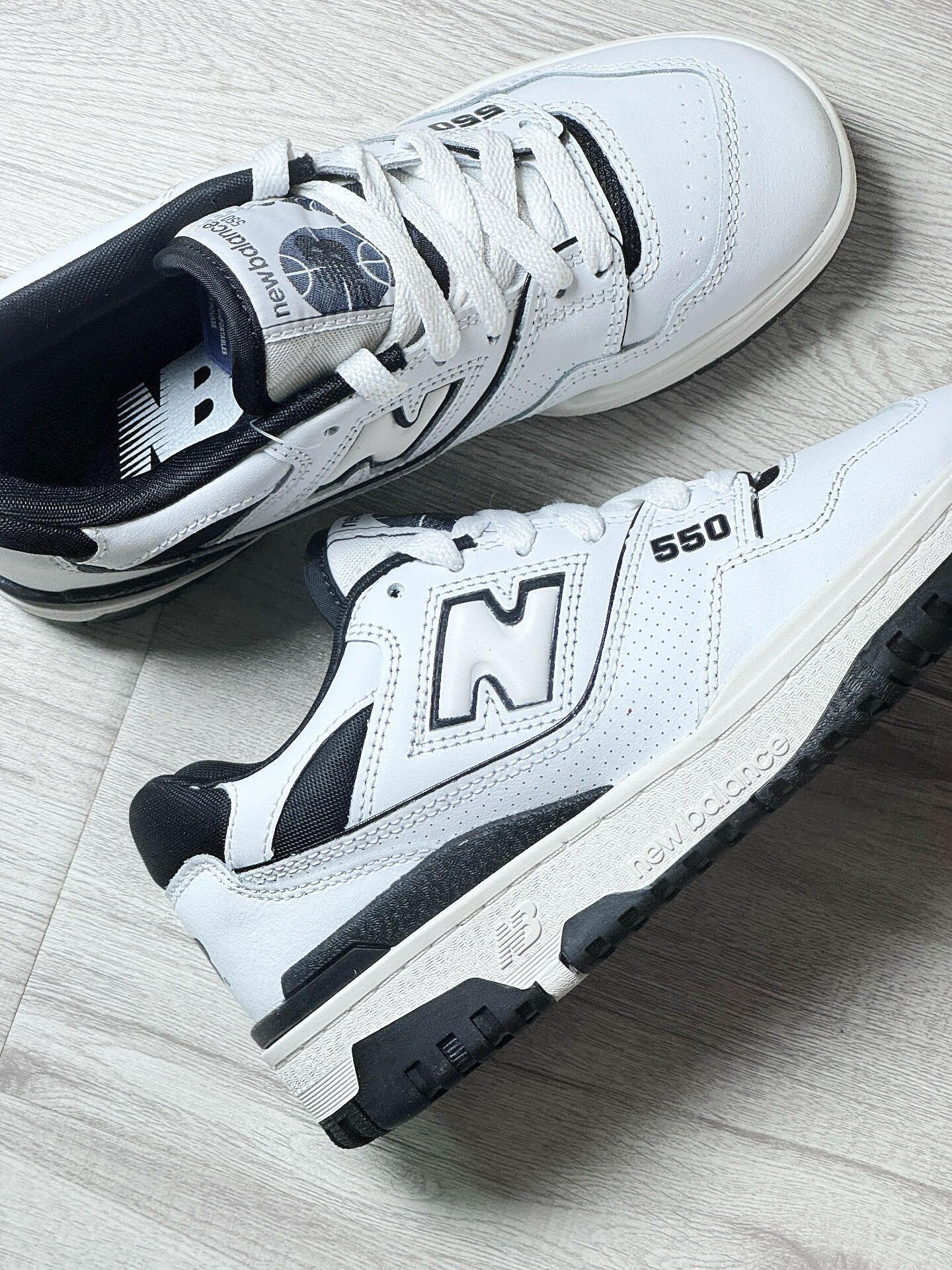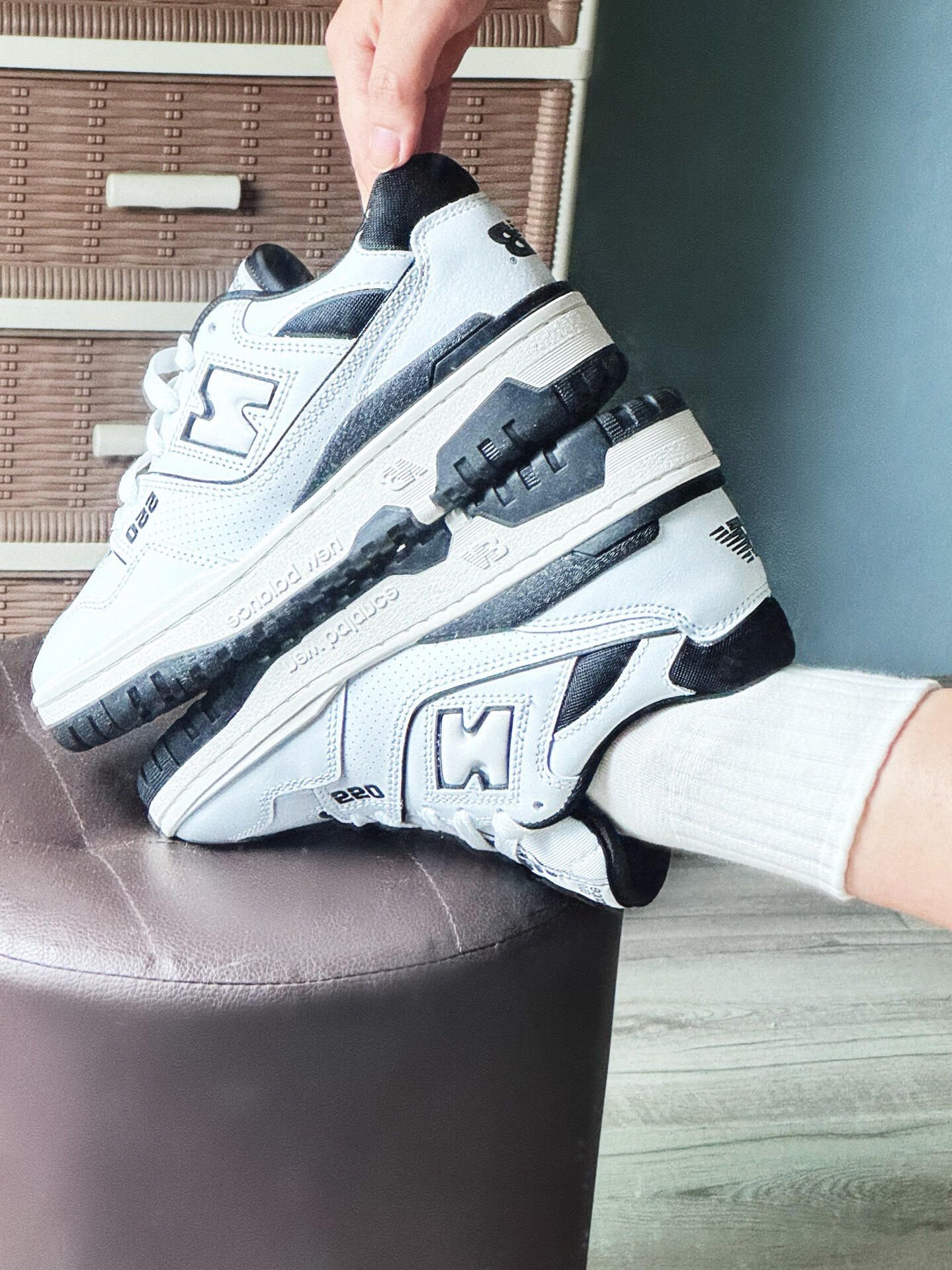 🐼New Balance 550熊猫配色板鞋, 白色皮革+黑色N字Logo,简约复古超百搭! 鞋面全光面皮革,易清洁,日常通勤、休闲都OK✨。 ABZORB缓震中底,脚感舒适,长时间穿也不累。男女都能穿,情侣款也很赞!黑白配色灵感来自熊猫,时尚又实用,是潮流穿搭必备单品🔥。 打篮球🏀的男孩女孩也可以冲