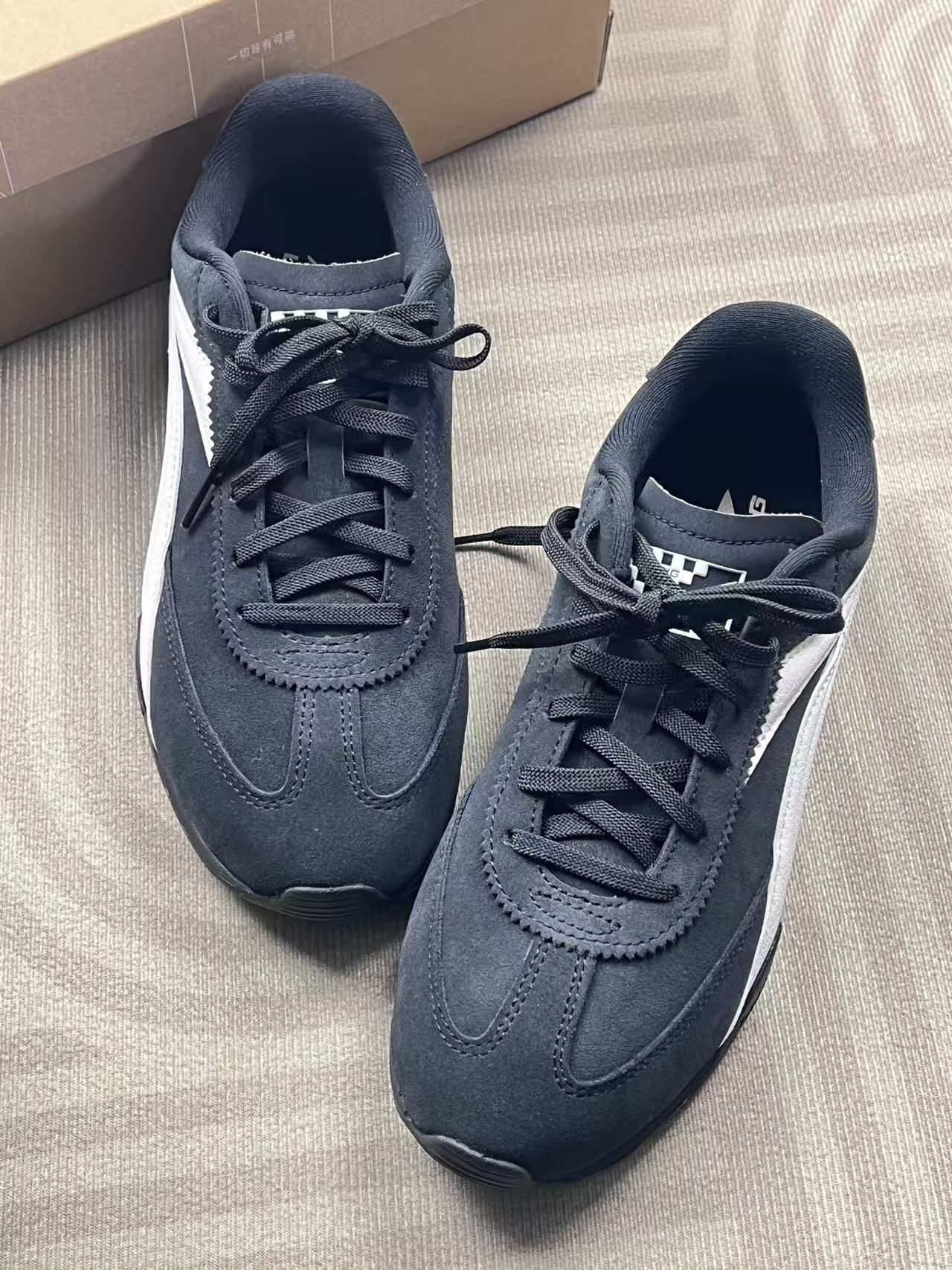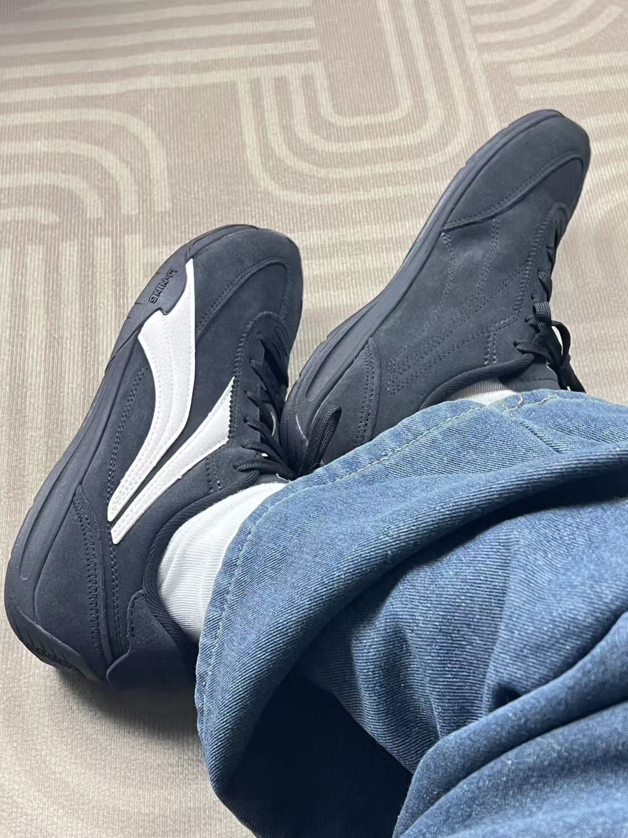 上脚这双鞋有段时间了,说点真实感受吧😌 首先脚感确实舒服,鞋面是翻毛材质,贴脚不磨,鞋型偏宽,我这种宽脚穿着也不挤脚,日常走路、逛半天街都没什么累脚的感觉,鞋底的弹性也刚好,不会太软塌也不会太硬邦邦。搭配牛仔裤也挺顺手的,黑白配色不挑风格,随便搭都不违和。 不过缺点也很明显,翻毛的鞋面太容易沾灰沾脏了😮💨,稍微蹭到点东西就留印子,清洁起来也麻烦,得用专门的翻毛清洁工具才行。另外鞋码稍微有...