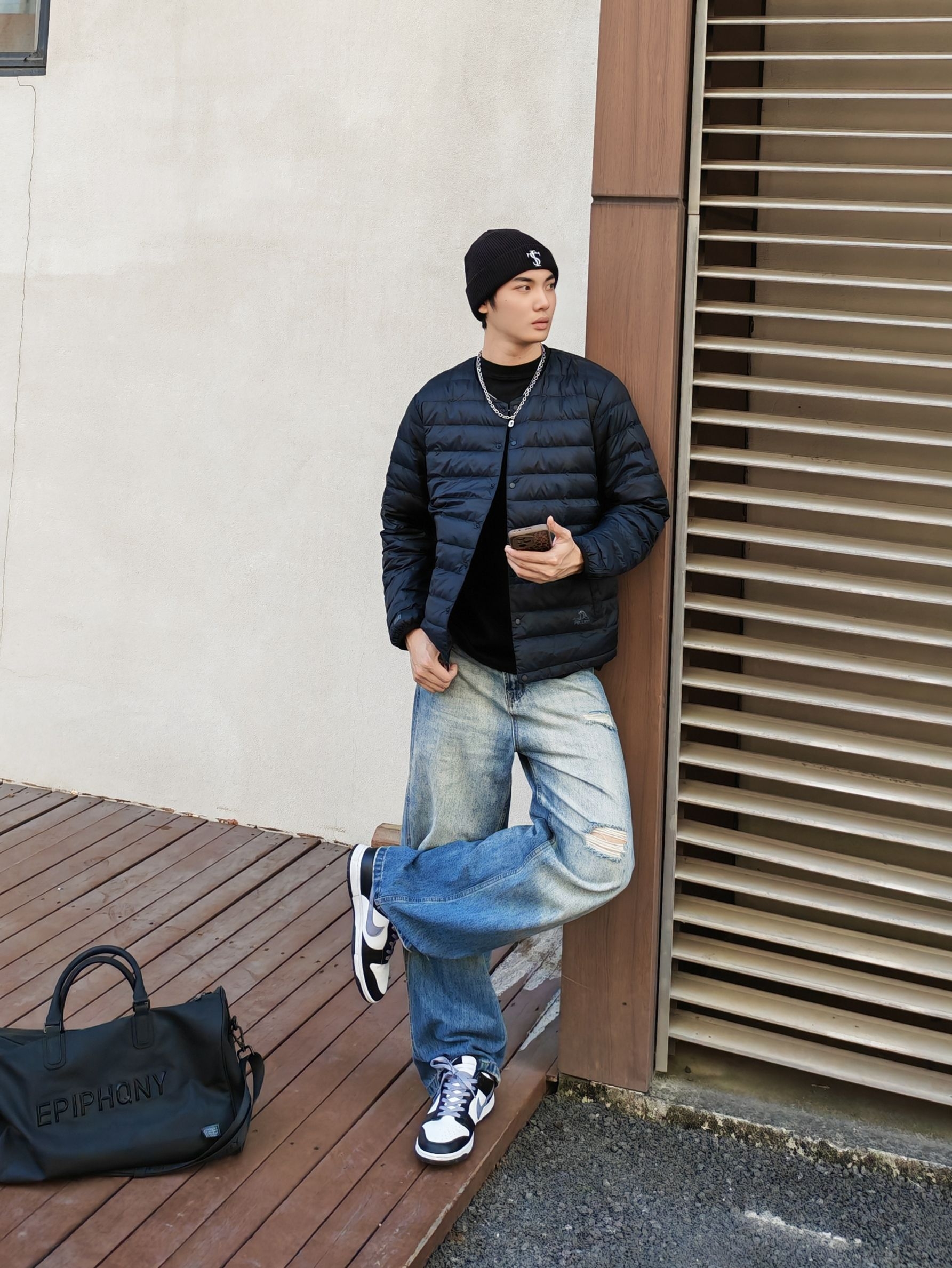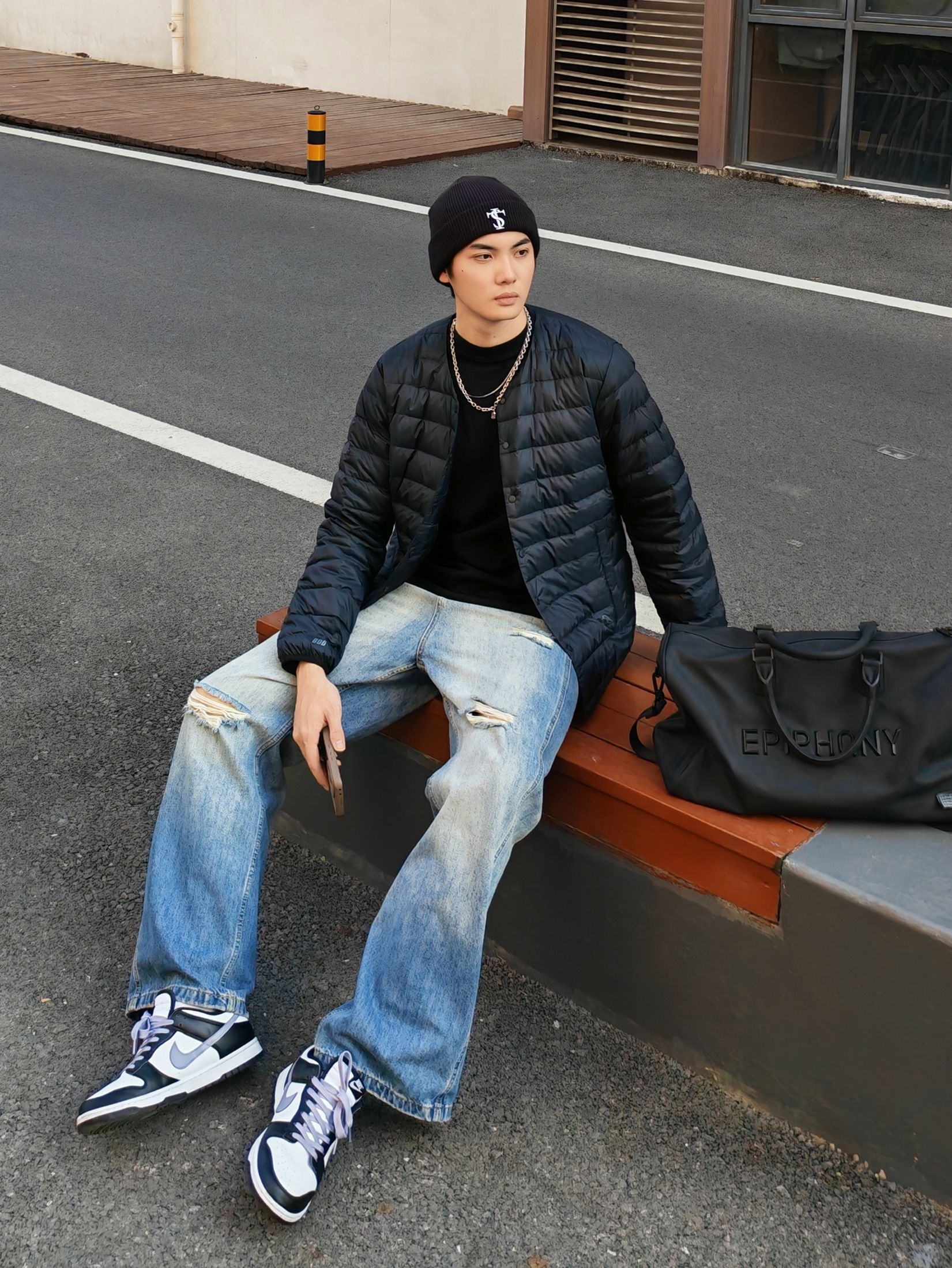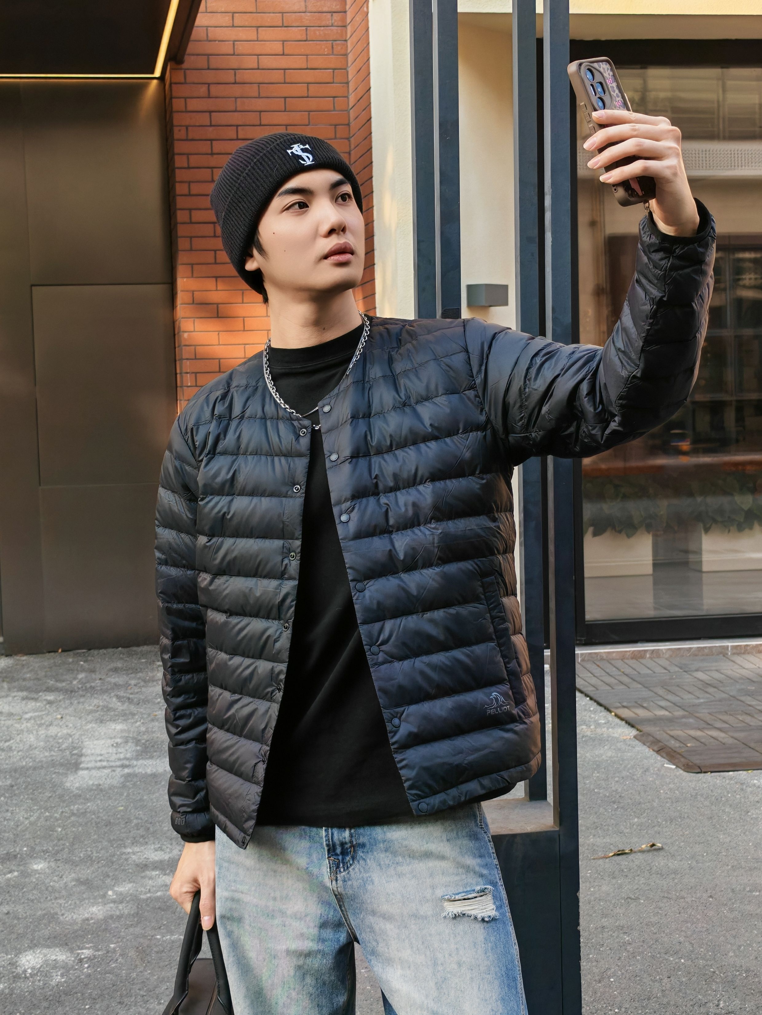 hi 这里是镭子的冬季穿搭分享 这个冬天拒绝臃肿!黑T打底+#PELLIOT 轻薄排骨鹅绒服,保暖又时尚,利落不压身。 做旧破洞阔腿裤拉满松弛感,冷帽+AJ1收尾街头感直接到位。 这套日常出街、通勤都适配,怕冷还能叠穿卫衣,细节里的小心思让造型更耐看~