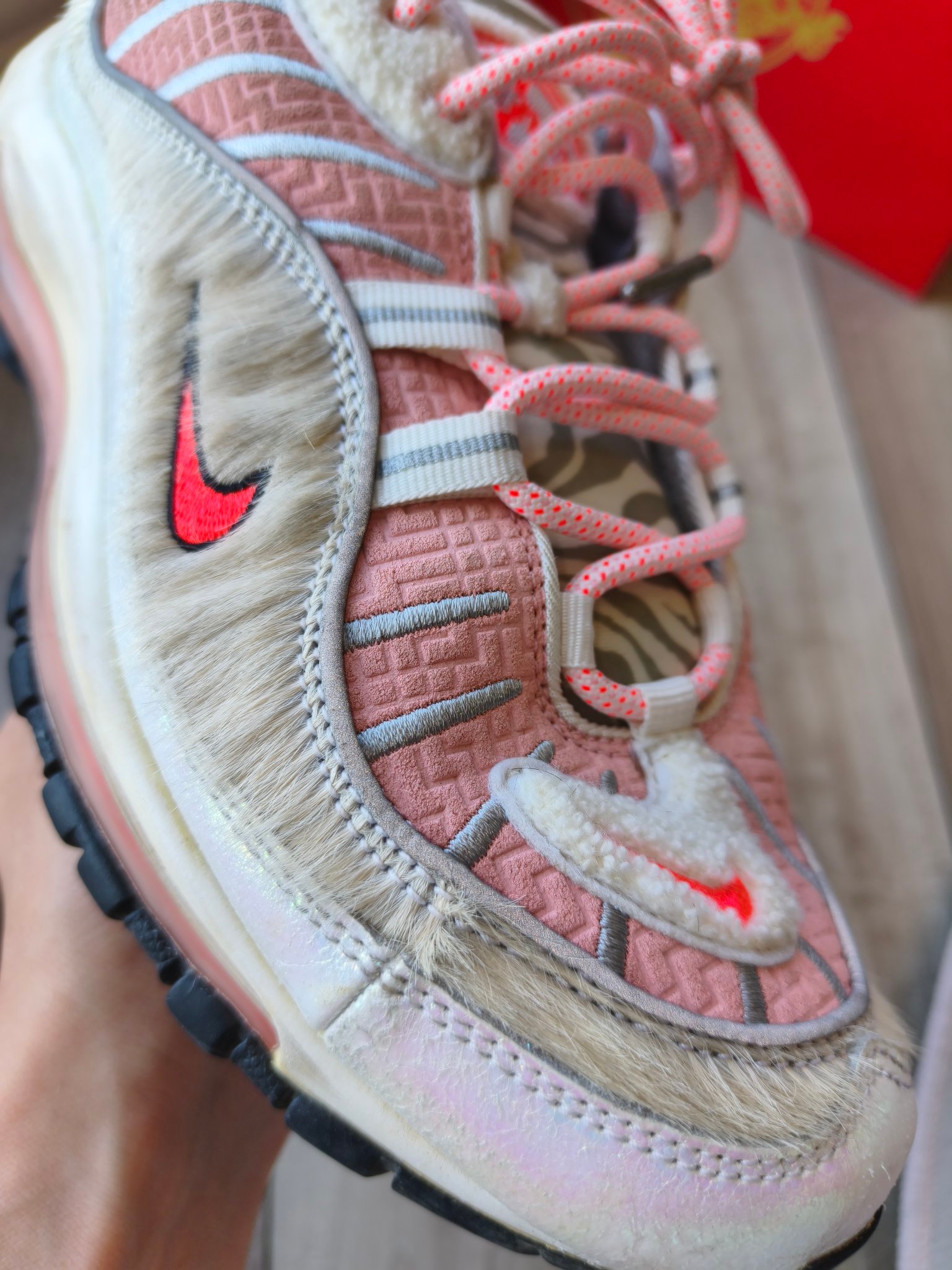 球鞋上的马毛基本是仿马毛的人造纤维像涤纶/腈纶为主,真马毛会有自然的毛向、细微的毛质差异,触感偏柔软且有轻微蓬松感;仿马毛纹理比较均匀、毛感偏硬,部分会有明显的化纤光泽。但是球鞋不像服装,穿身上需要很好的手感,穿脚上的,只要质感不错就行了。所以特别是中国新年CNY,十二生肖里毛绒绒的动物不少,所以"马毛"运用就挺多。那么这四款,有没有你喜欢的呢?
