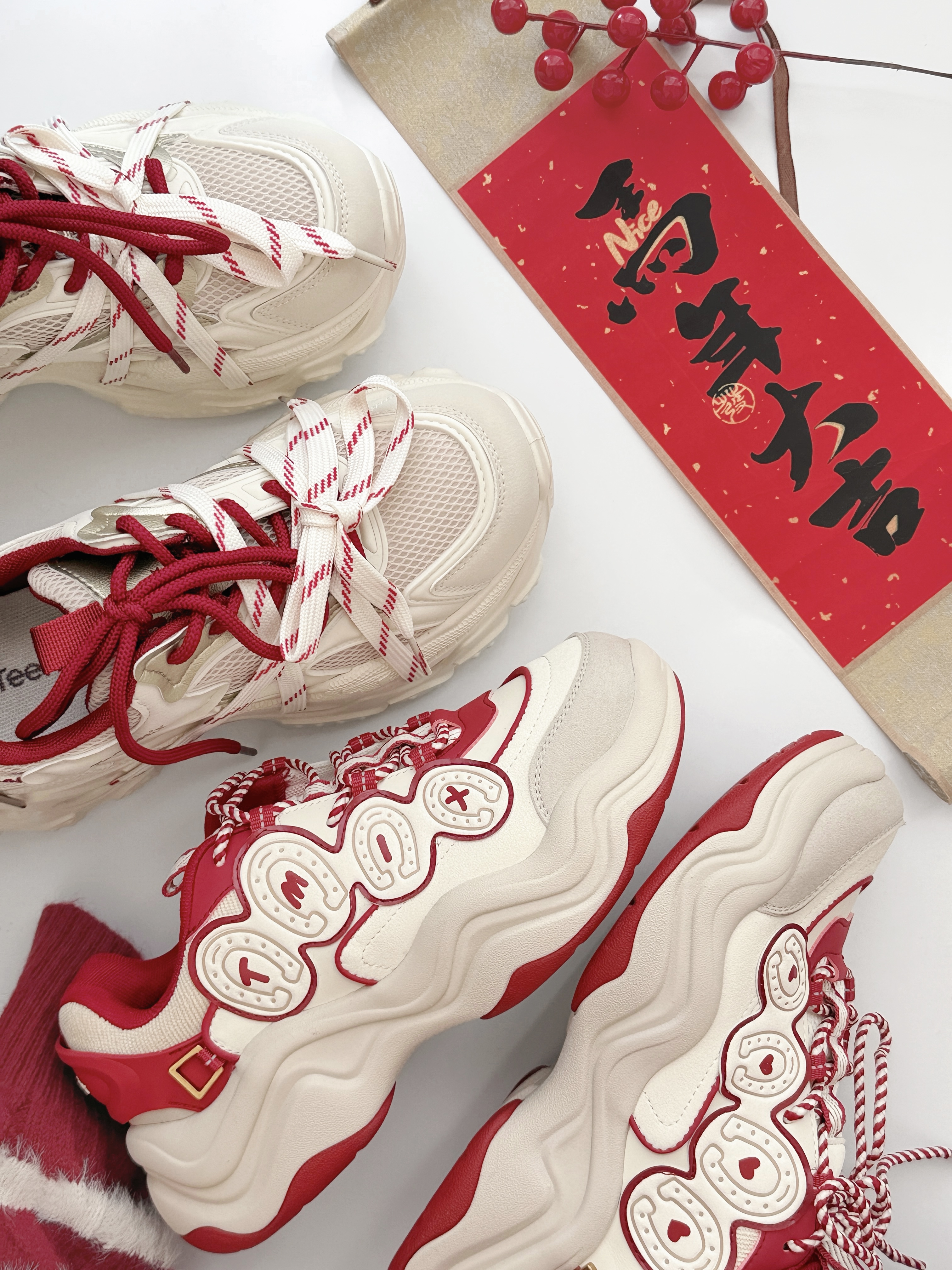 新年穿搭没点“红”,怎么算过年🧨 天美意这波马年限定老爹鞋 不光美貌更蕴含好彩头 给2026开年加持点“红”运,走路都带风! 🀄️【蝴蝶结绑带厚底款】 足足6cm的轻盈增高! 三重蝴蝶结+撞色鞋带设计 穿搭秒添甜酷氛围感 把整年的红运都“系”在脚上 走哪都自带好兆头 🎠【红心小马联名款】 细节十足的侧边3D马蹄压印 灵感来自马鞭的麻绳鞋带 后跟还有马鞍的造型 每一处都藏着巧思 给新年成功加...