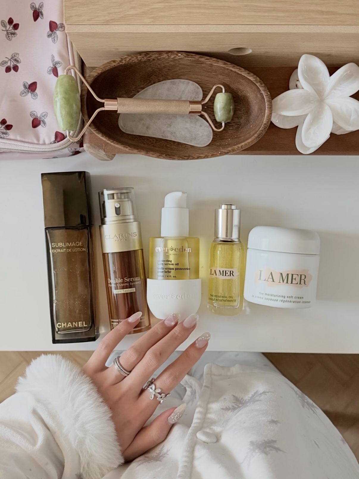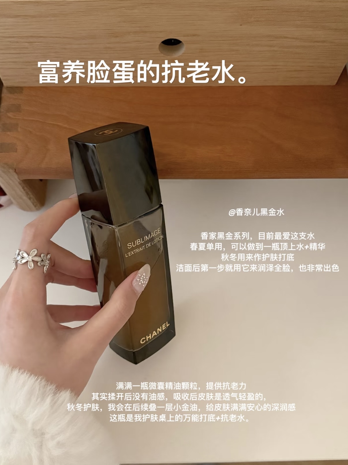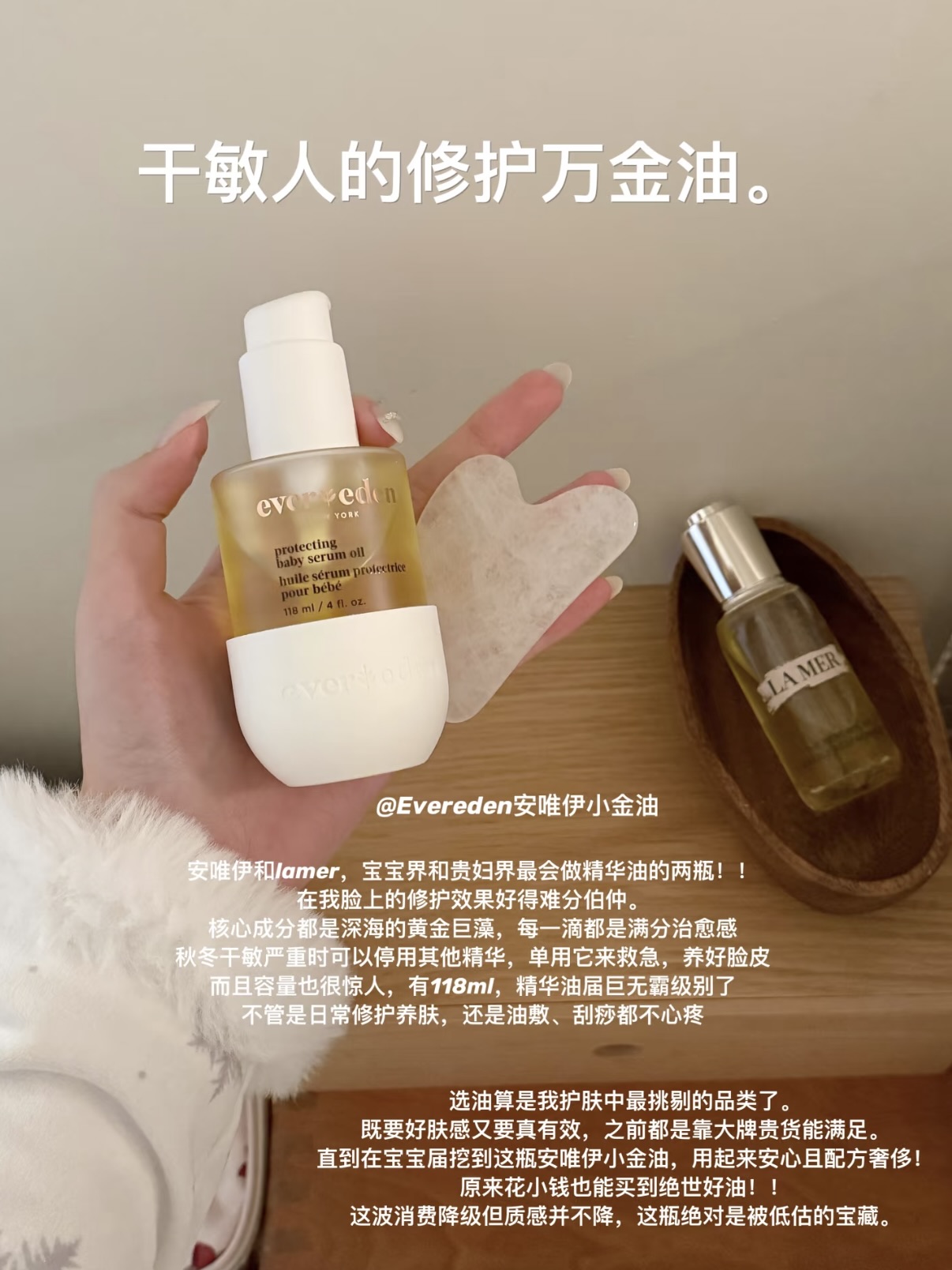 分享一下我的满分护肤单品和精简护肤流程~ 干敏人也能稳稳度过这个秋冬,轻松养成温润好皮 ‼️Evereden安唯伊小金油 冬日宜写油。尤其是气温变冷变干,我这脆弱的屏障在内外夹击下早已防线崩塌,属于一进空调屋就红,一吹冷风就痛,用水不够润,面霜补不透,这个时候就恨不得把自己浸进油里,泡透才好。 ‼️香奈儿精华水 + 娇韵诗双萃精华 皮肤被小金油养稳后,我的日常护肤就会加入这俩,一个负责抗老,一...