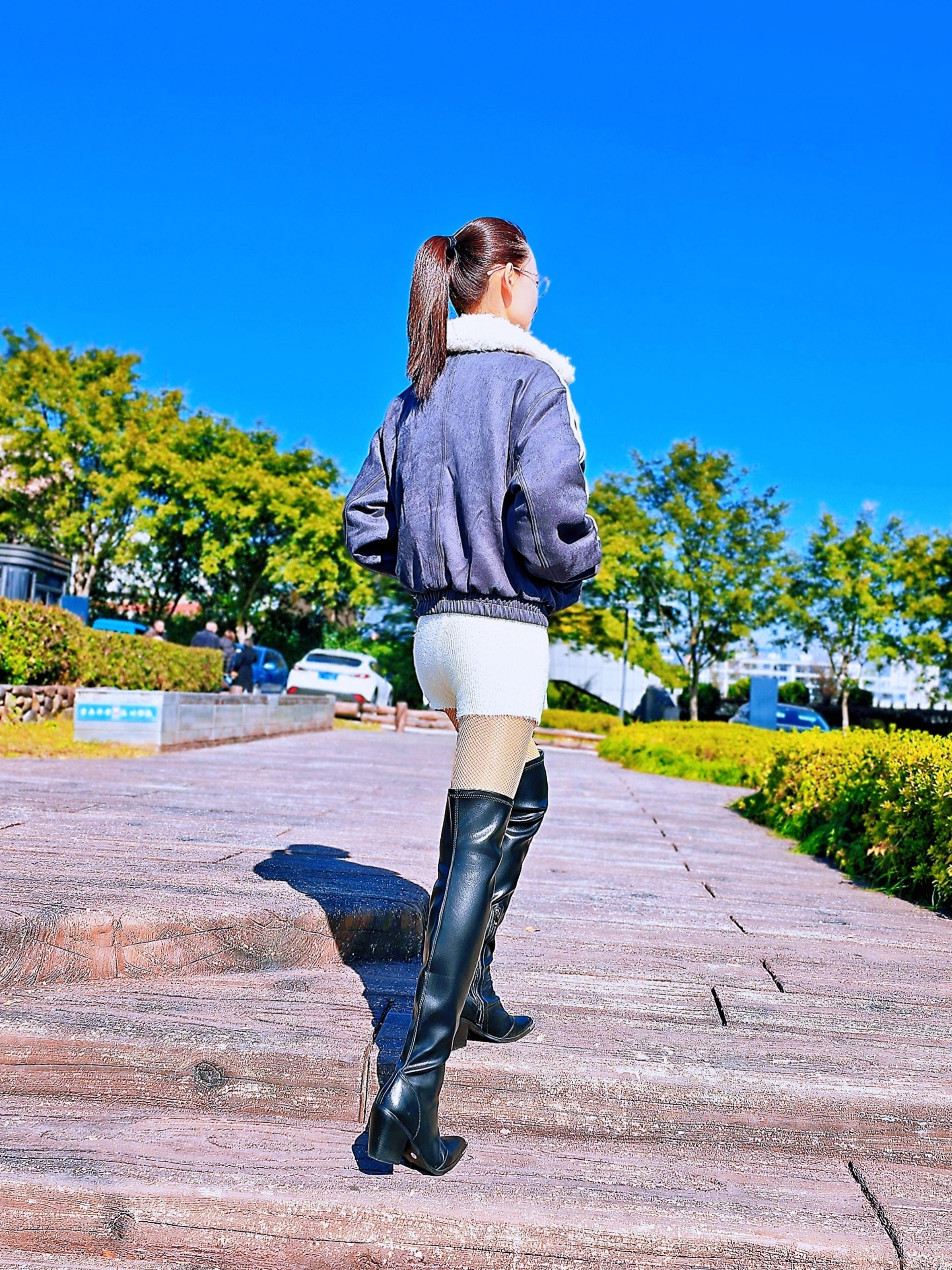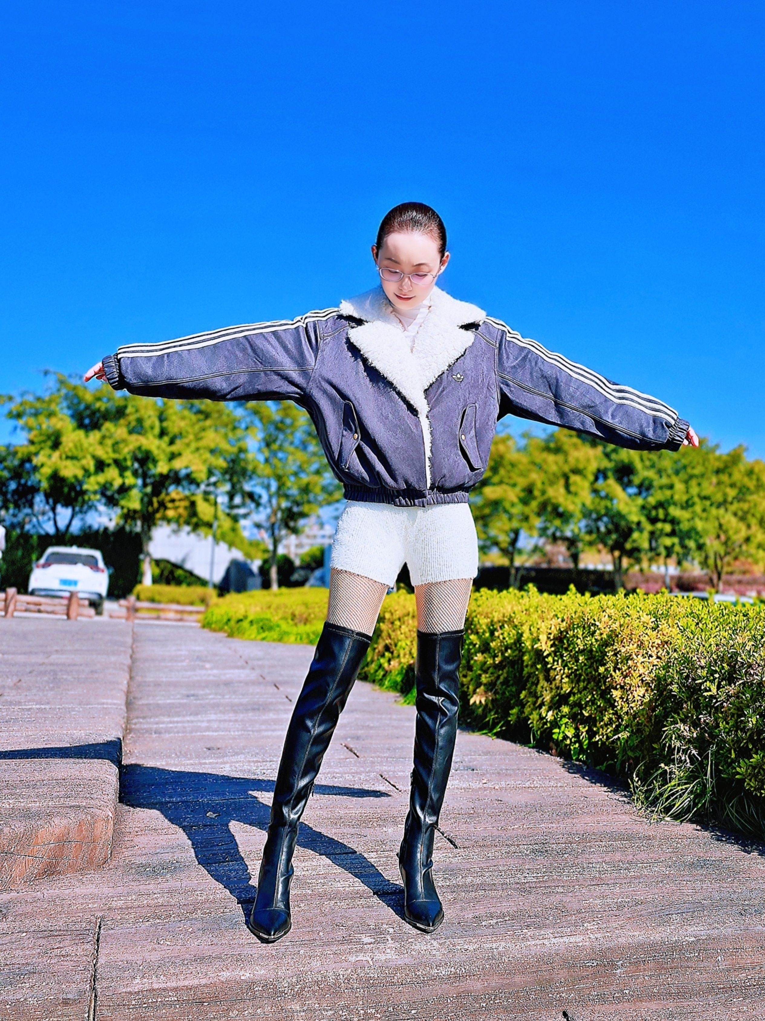 座山雕短外套+毛绒短裤秒拉腰线,过膝长靴视觉增高10cm💫 慵懒风和甜酷感兼具,满满的韩系冬日氛围感,小个子也能穿出大长腿哦!❄️