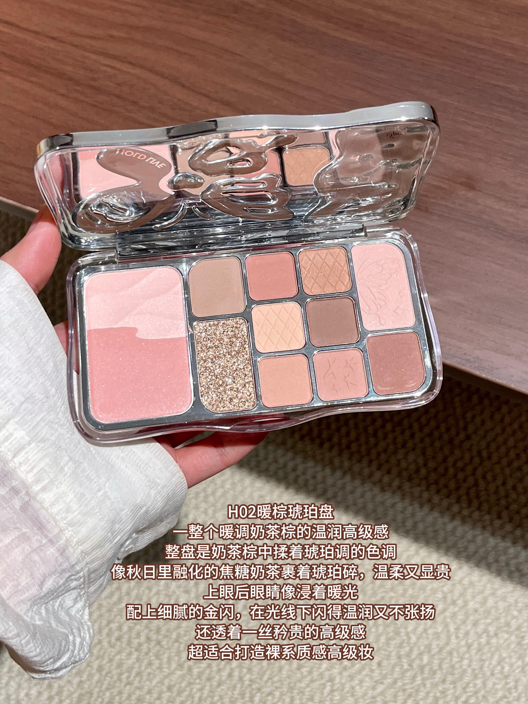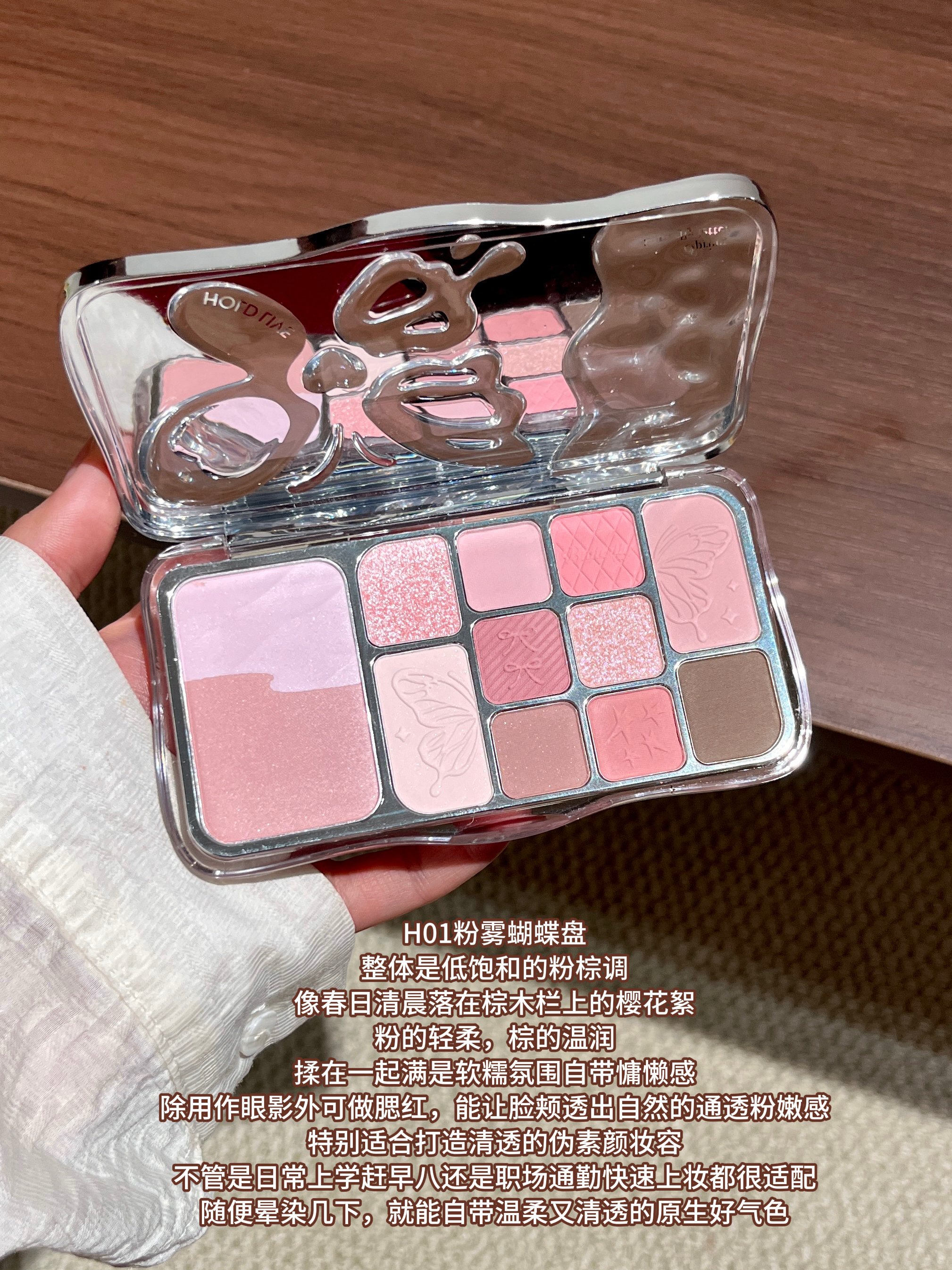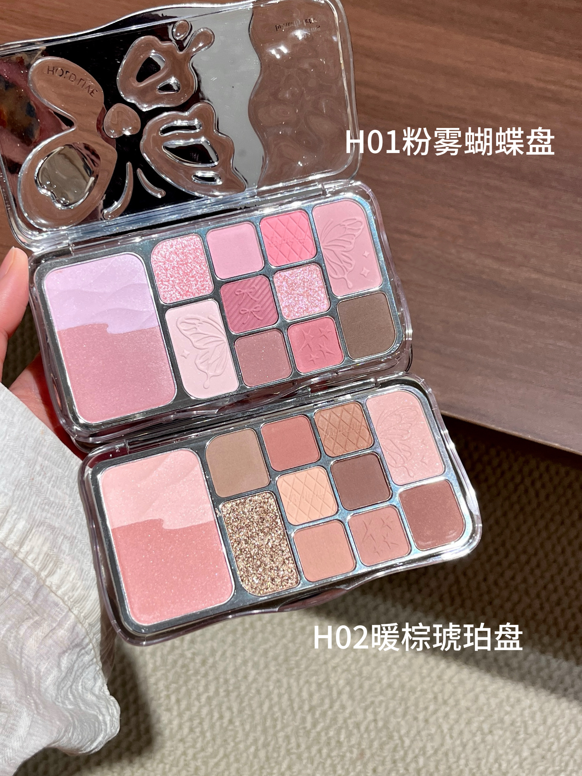 本篇笔记关联了Hold live 雾境蝶影12色蝴蝶眼影综合盘 粉蓝撞色珠光闪粉 17g H02暖棕琥珀盘、Hold live 雾境蝶影12色蝴蝶眼影综合盘 粉蓝撞色珠光闪粉 17g H01粉雾蝴蝶盘等商品,为用户提供真实的使用体验和购买参考。