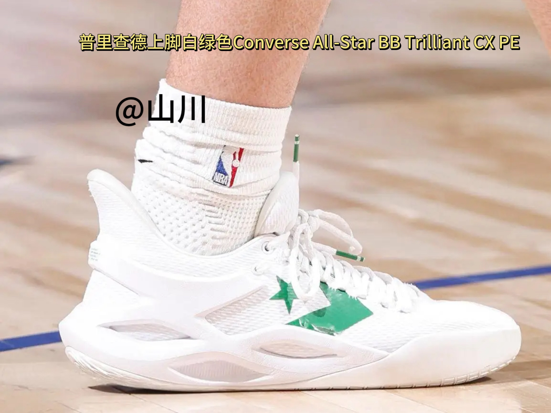 波杰姆斯基上脚星图配色准者 BP1 得到24分6篮板4助攻1抢断 威金斯上脚点燃配色匹克 AW4 得到18分5篮板1助 库里上脚李宁 韦德之道12“黑自由” 得到19分3篮板11助攻 巴特勒上脚黑红色李宁 JB4 得到17分3篮板4助攻2抢断。 比赛第三节,巴特勒遭遇右膝扭伤,随后提前退出比赛。 普里查德上脚白绿色Converse All-Star BB Trilliant CX PE 得到17分...