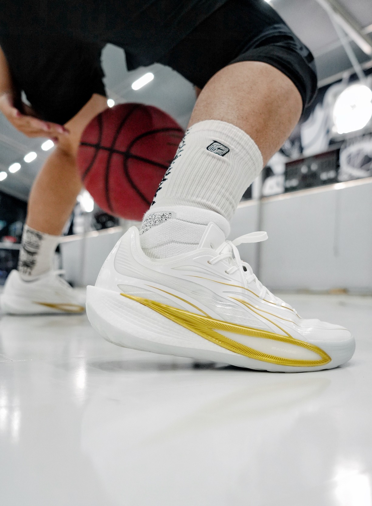 踏子还在发力 今天上脚的这双是我最近实战比较爱穿的一双了 第一是因为颜值 白色的加上流线型的设计上脚很百搭也好看 然后性能方面我觉得中规中矩吧 还算过得去