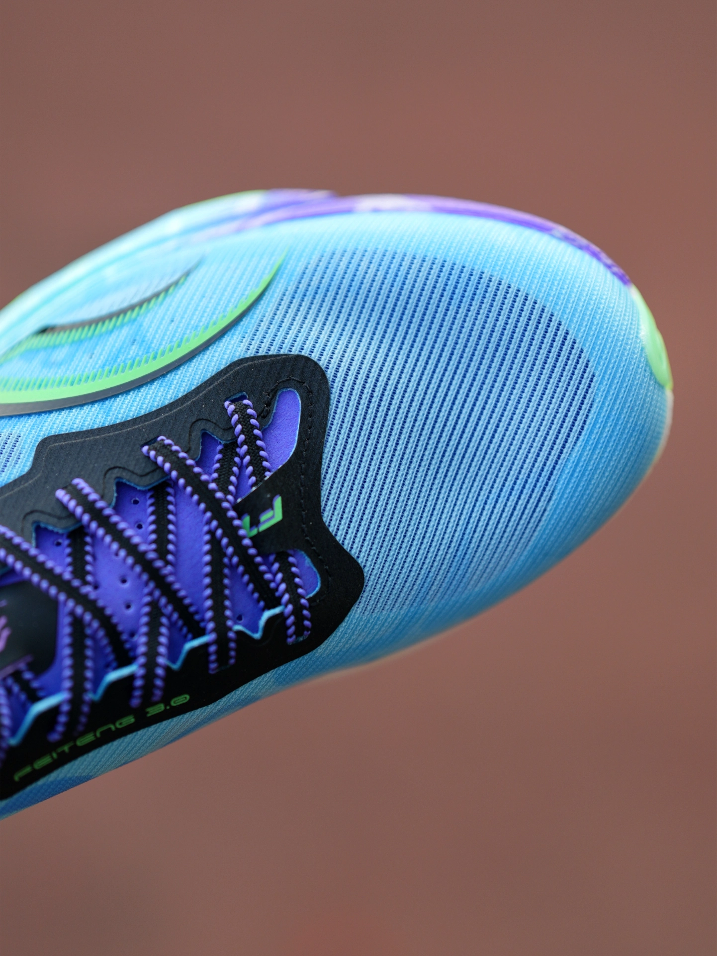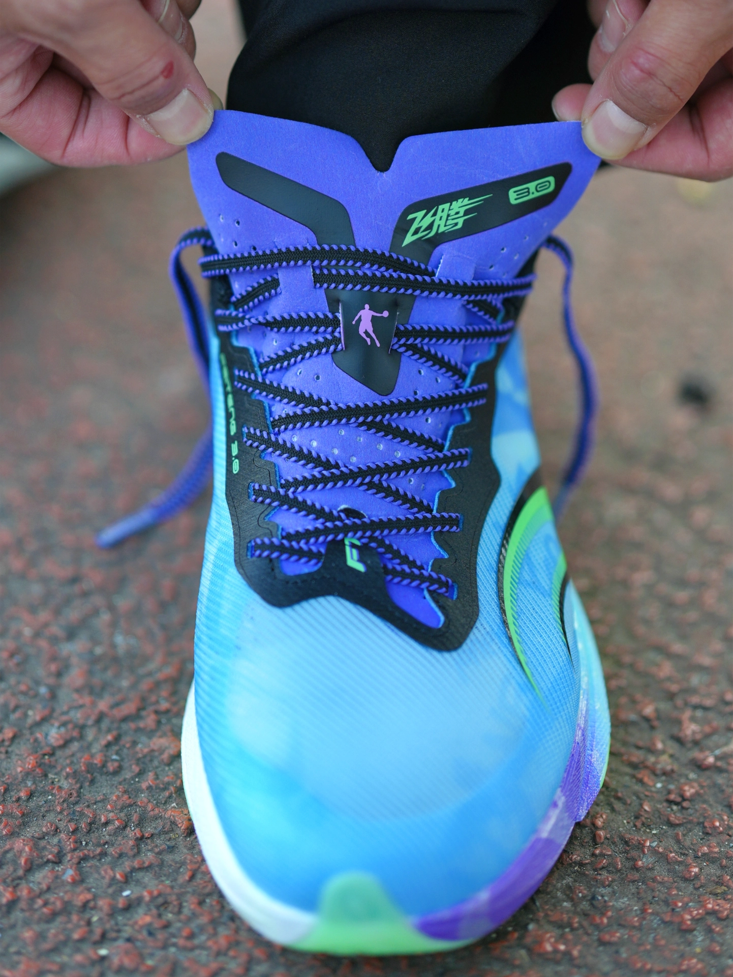 这期给大家分享中乔全新推出的飞腾 3 代,首发配色极光猎人造型犀利 百搭耐看,而且还有夜光效果! 配置方面,飞腾 3 代内置异形尼龙板,和中底的巭TURBO一体成型,能带来更润的上脚感受。 CPU的外底前掌采用斜向抓地齿花,湿地止滑表现更优秀,而且外底还有上爬,过弯更稳定 更灵活。 尺码的话不偏 建议按平时常穿的跑鞋尺码选择就好。 #飞腾3 #飞腾3.0弯道超车 #飞腾3稳过弯超在前 #无碳...