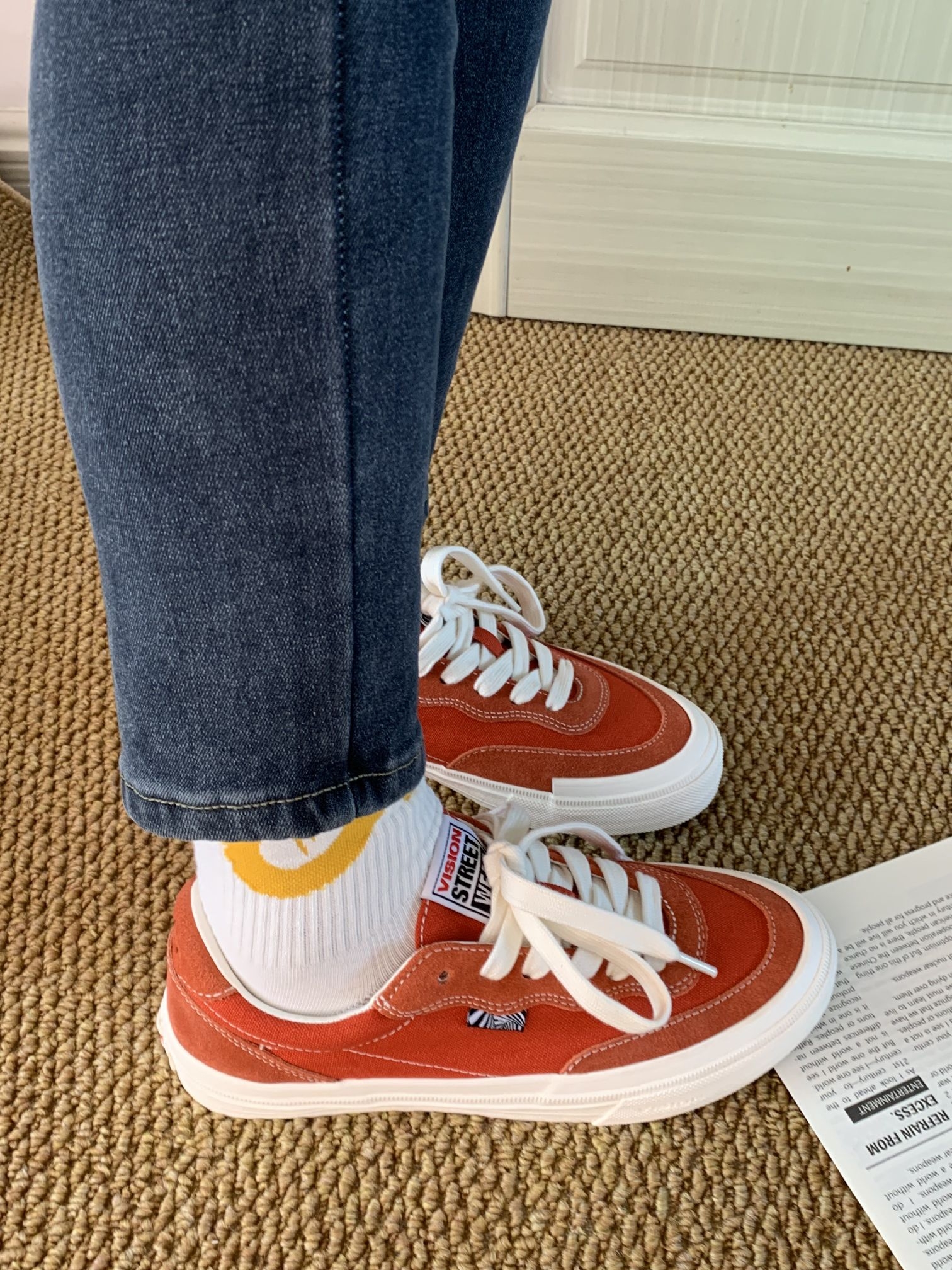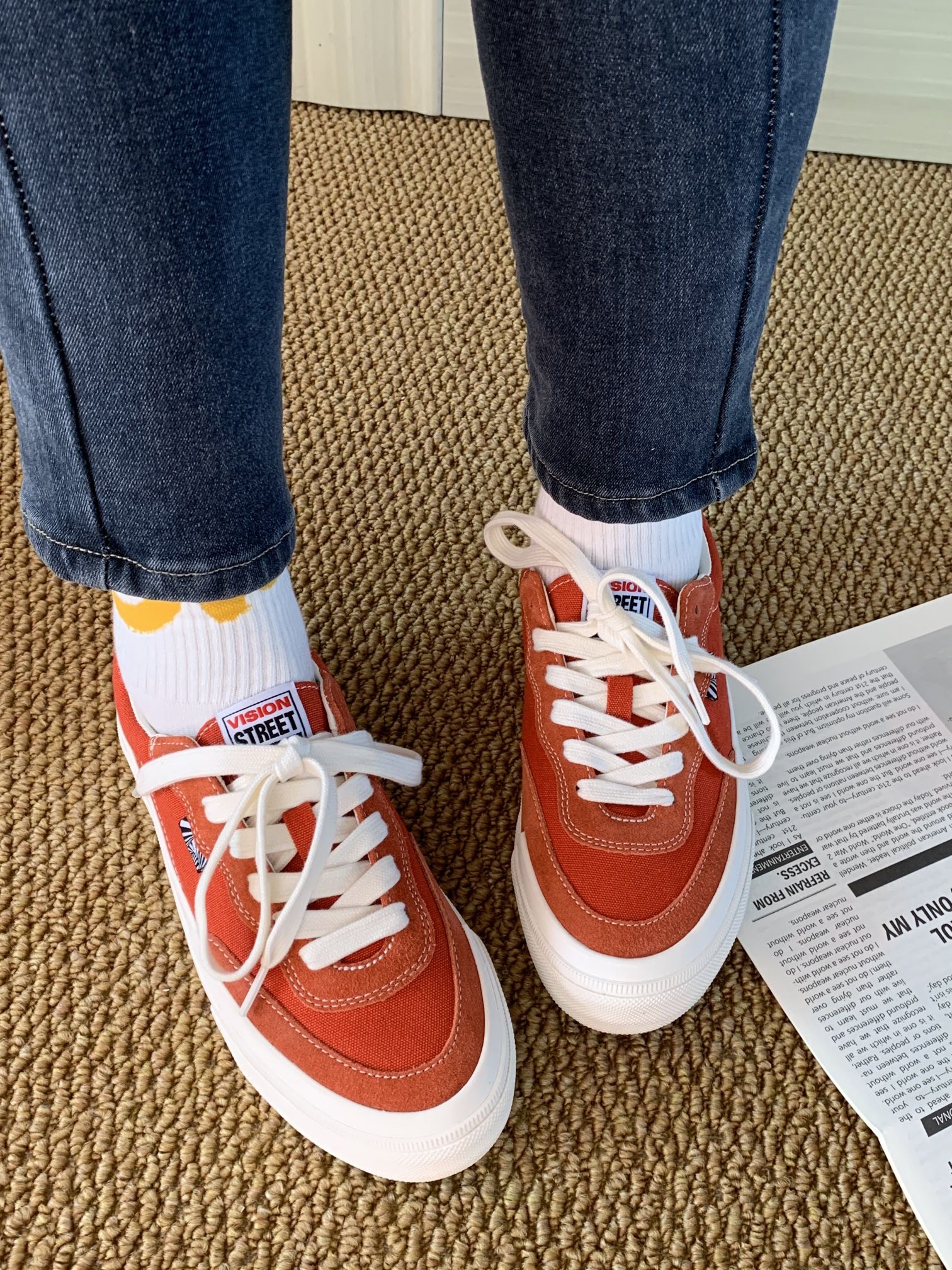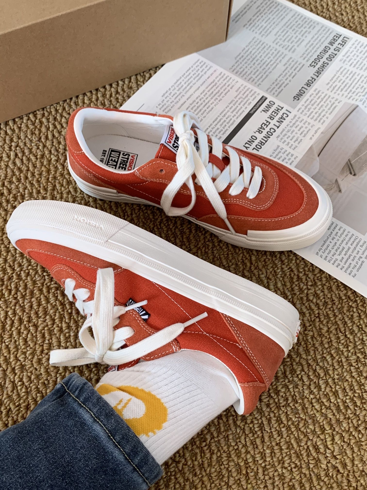 介颜色绝啦,感觉像一个大西柚被切开啦!不是那种扎眼的亮,很有活力的橙色🎃 配条牛仔裤、运动裤都好看 Vision Street Wear家的经典款 低帮设计,男女都能穿 鞋型不挑脚,我还穿它出去逛街了,一上午都没觉得累脚🦶还蛮舒适的,出街通勤都可以哈