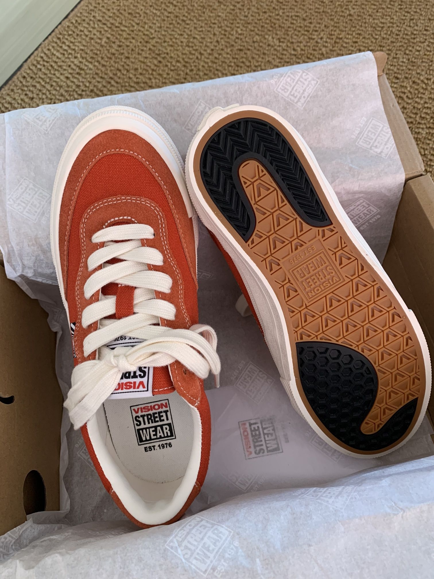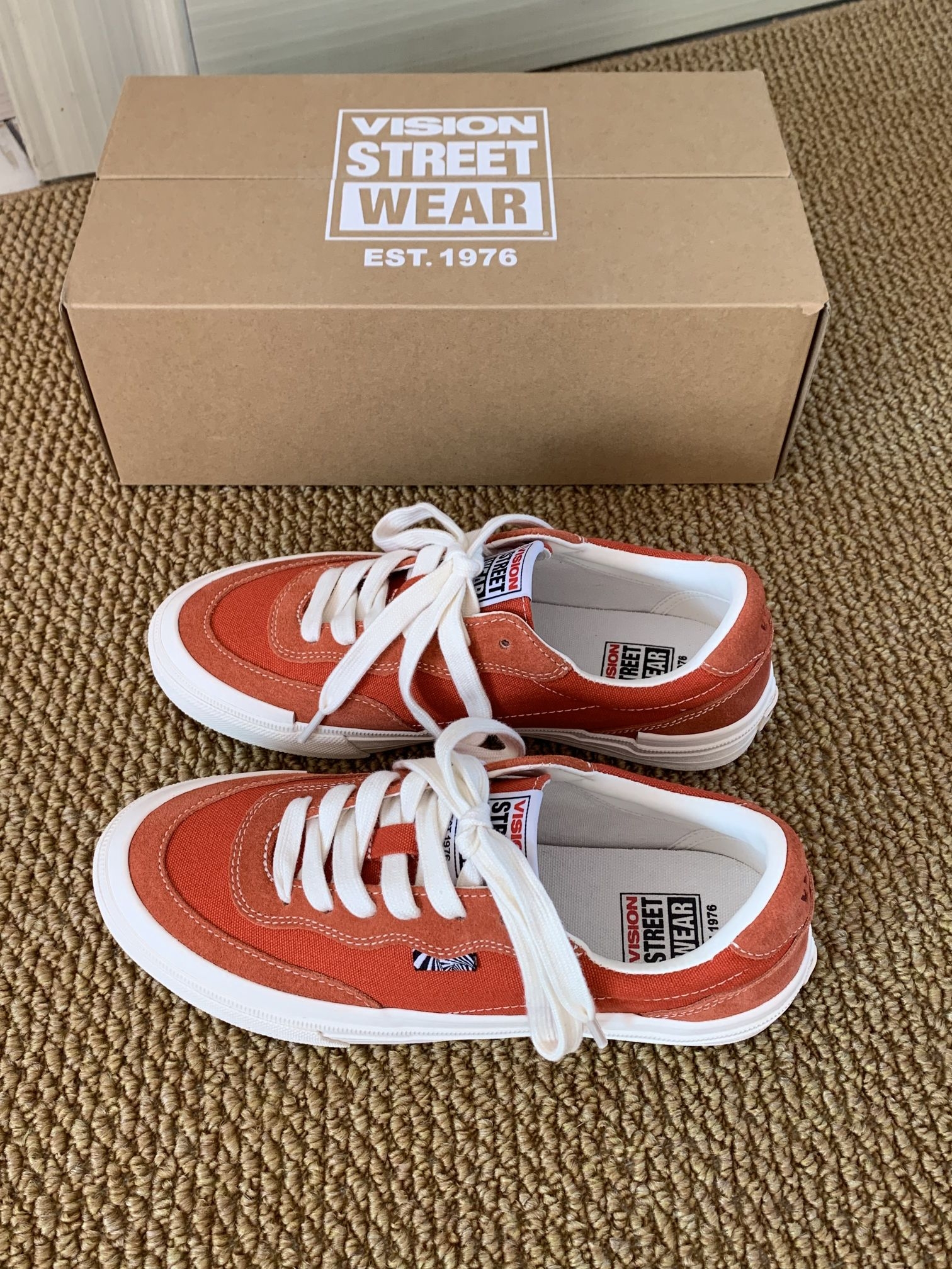 本篇笔记关联了Vision Street Wear Flat Top 生胶 防滑耐磨 经典美式 运动 帆布鞋 橘红色等商品,为用户提供真实的使用体验和购买参考。