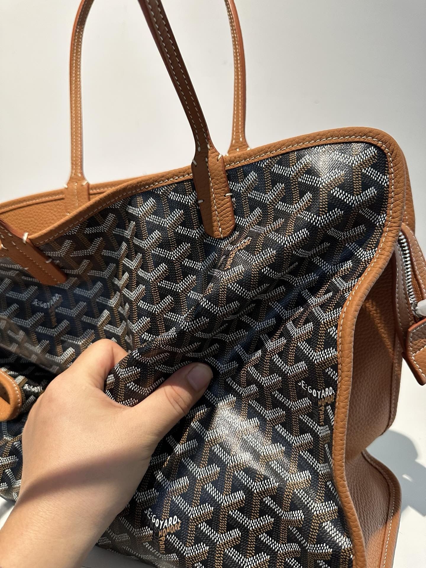 本篇笔记关联了GOYARD/戈雅 Hardy 小号情侣款11色可选Y字老花满印皮革手柄拉链开合帆布拼皮购物袋单肩包托特包手提包 棕褐色 等商品,为用户提供真实的使用体验和购买参考。