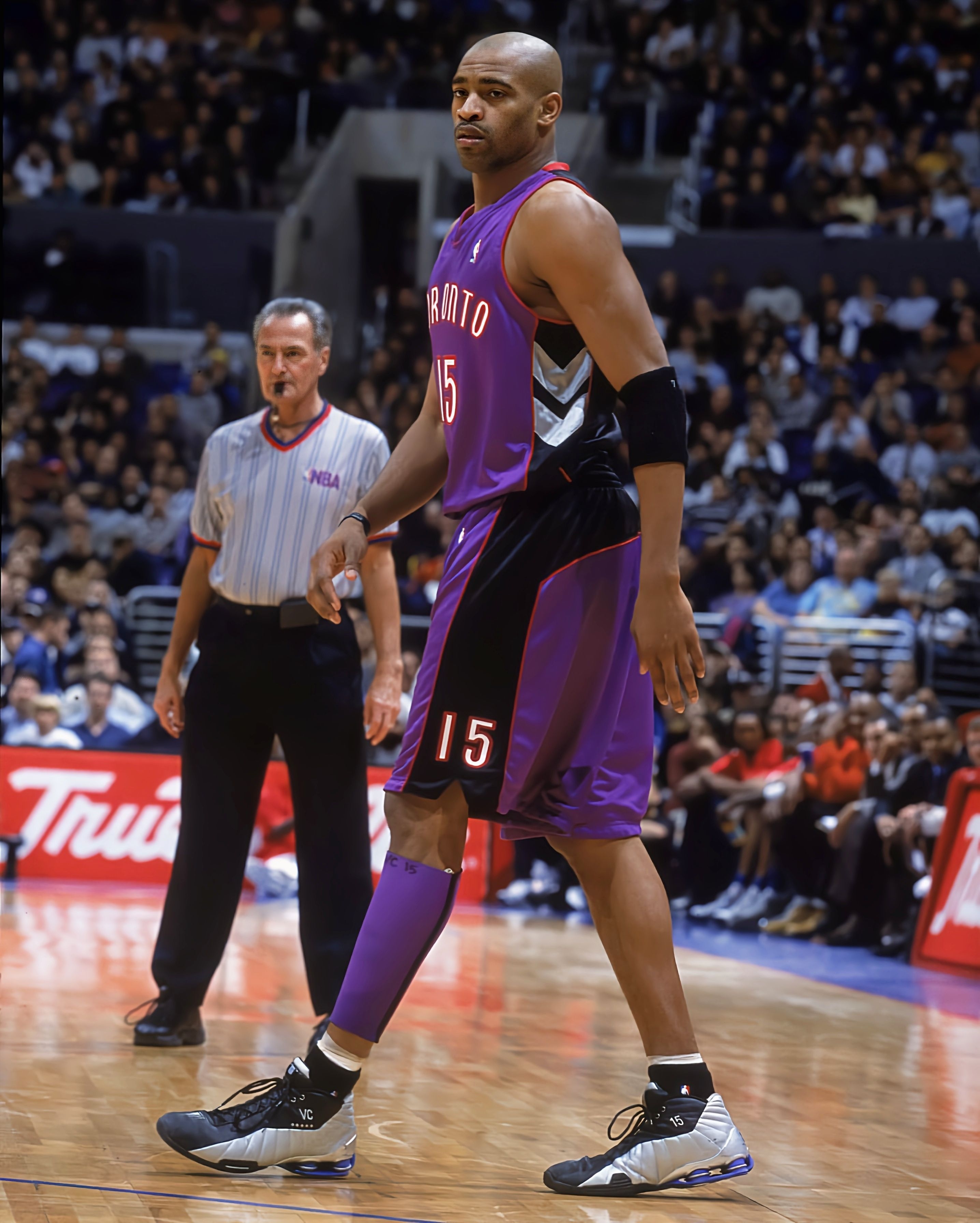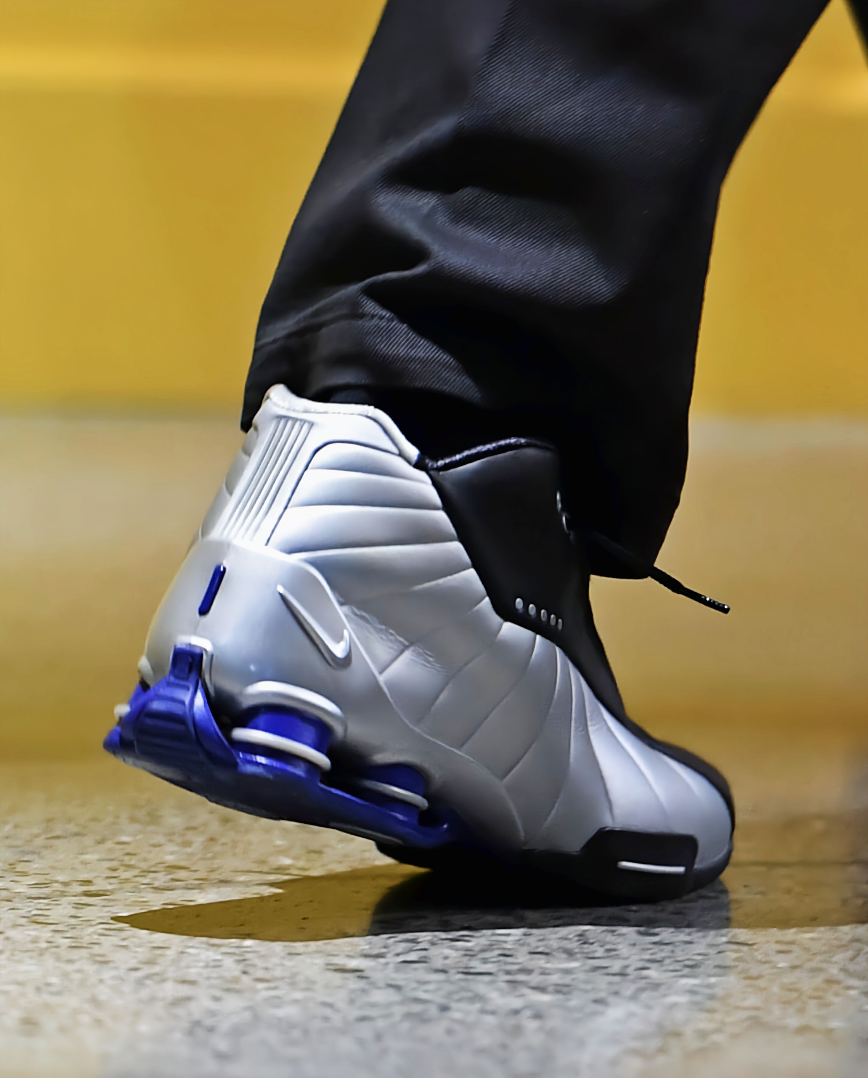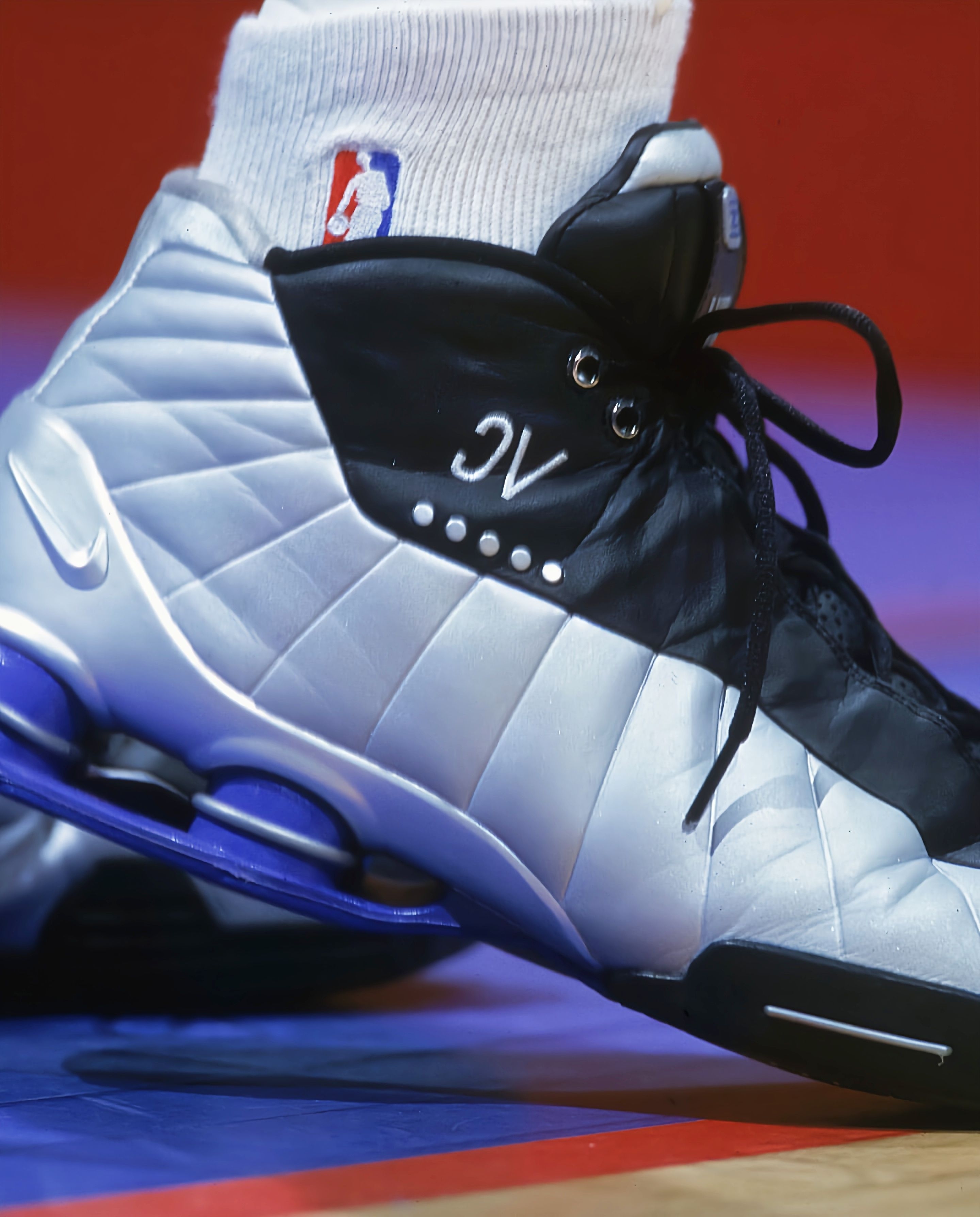 勇士主场打猛龙,库里赛前入场直接把我看愣了👀 他脚上这双黑银配色的Nike Shox BB4 PE,正是文斯·卡特当年的专属战靴!当年卡特穿着它飞跃法国中锋,这双鞋就是扣篮暴力美学的代名词。 现在库里穿着它走进大通中心,不只是为了致敬猛龙名宿,更是两代传奇的跨时空对话。一边是改变了扣篮定义的“半人半神”,一边是用三分重新定义篮球的“库日天”,当库里踩上这双承载着20年前记忆的球鞋,真的有种...