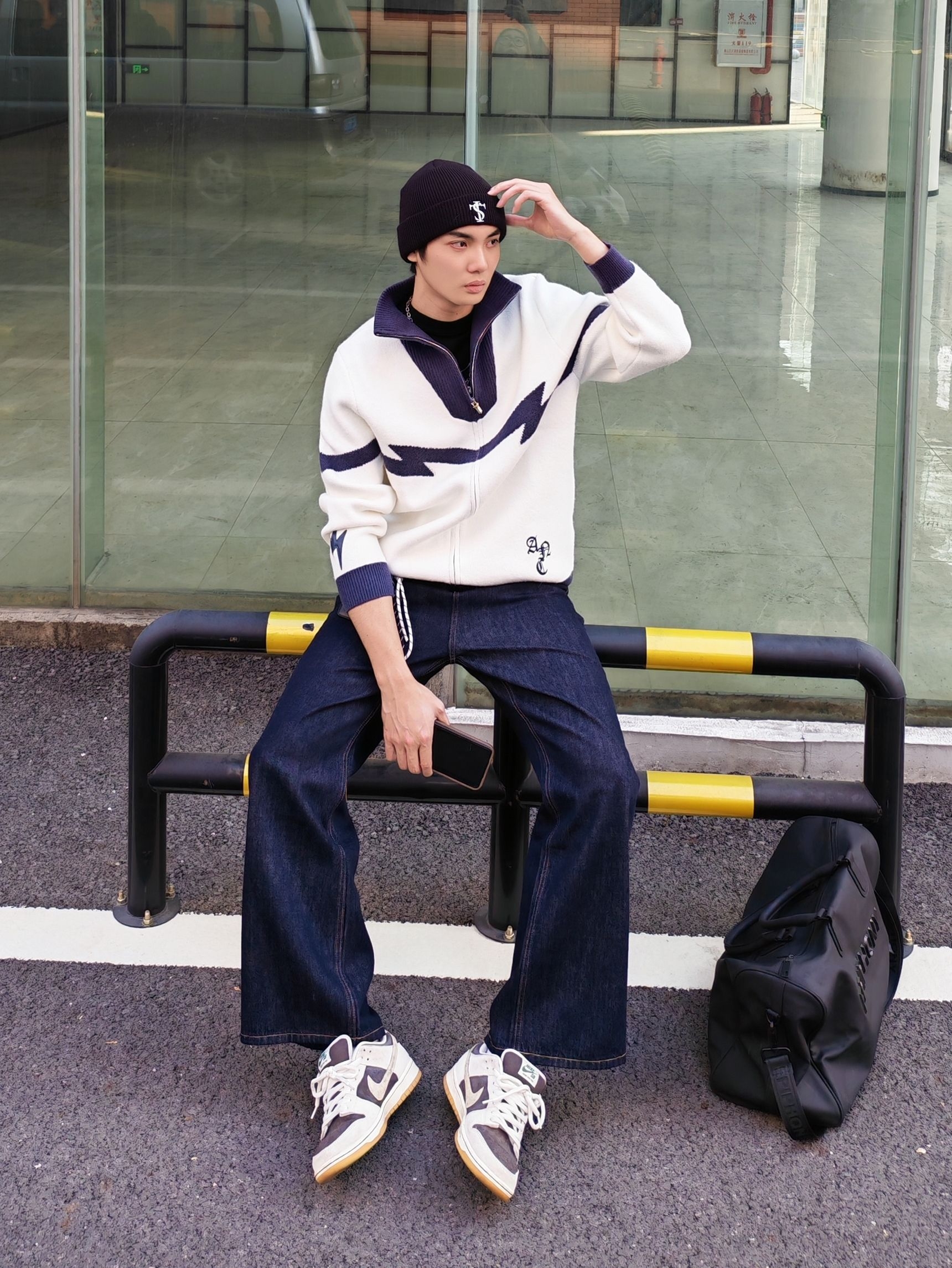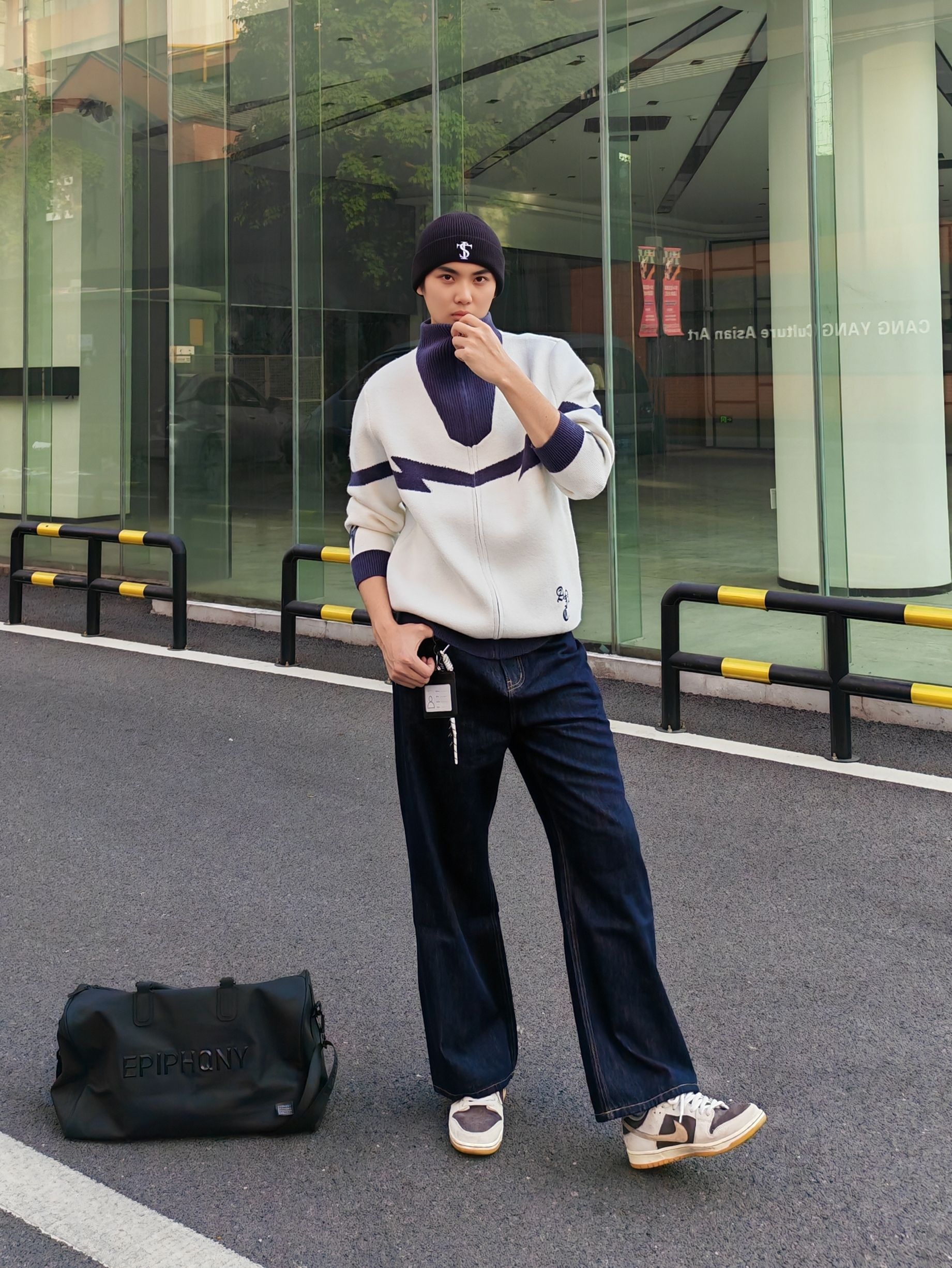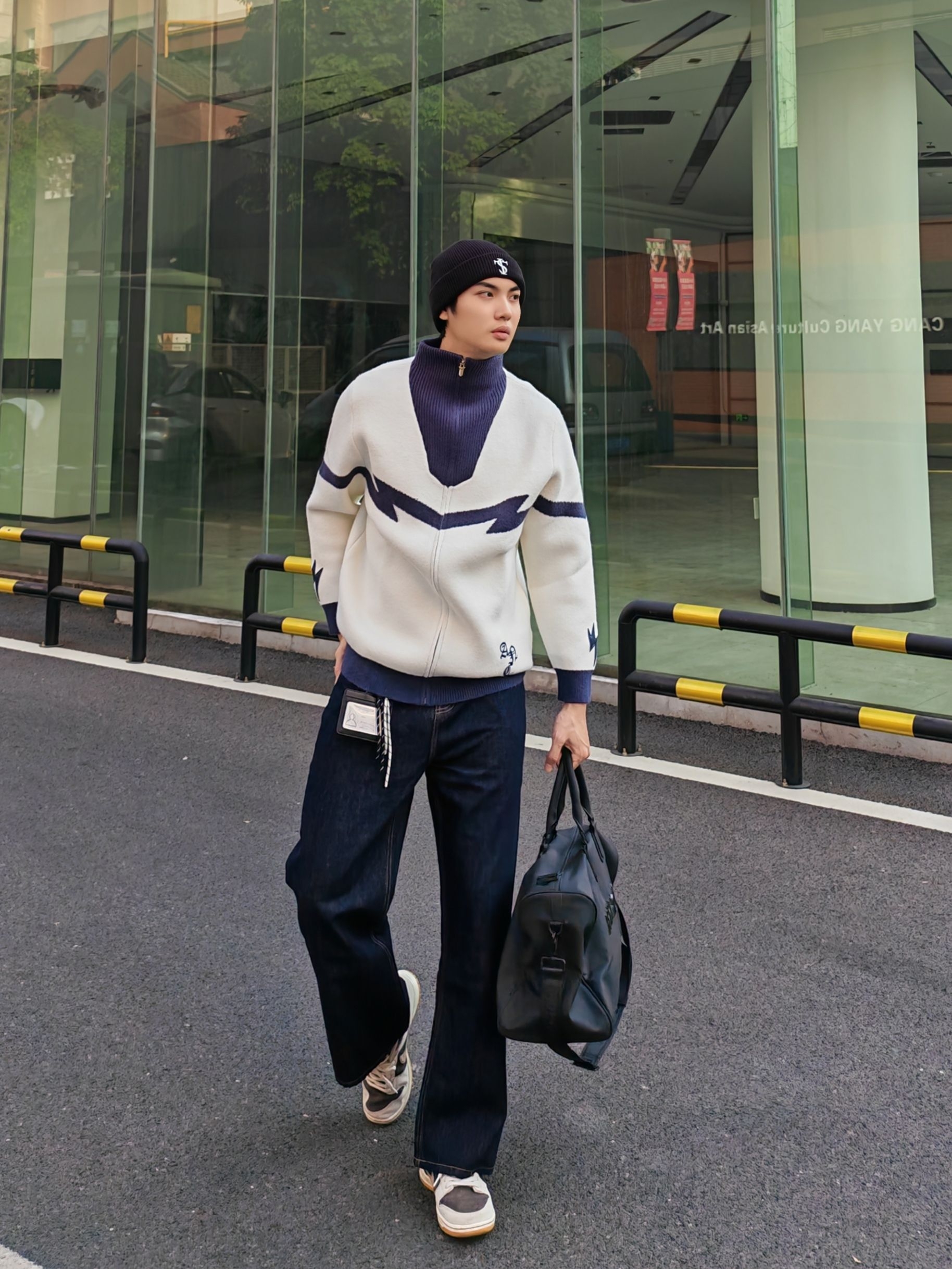 今日份穿搭主打一个“舒服又有型”,黑白蓝配色简约又耐看,走在路上回头率直接拉满。 软乎乎的针织外套保暖又轻便,搭配阔腿牛仔裤和老爹鞋,整个人看起来慵懒又利落。 随手拎个大包就能出门,打工人的体面感这不就拿捏住了! ❄️ 冬天穿得暖和,也能轻松做氛围感帅哥~