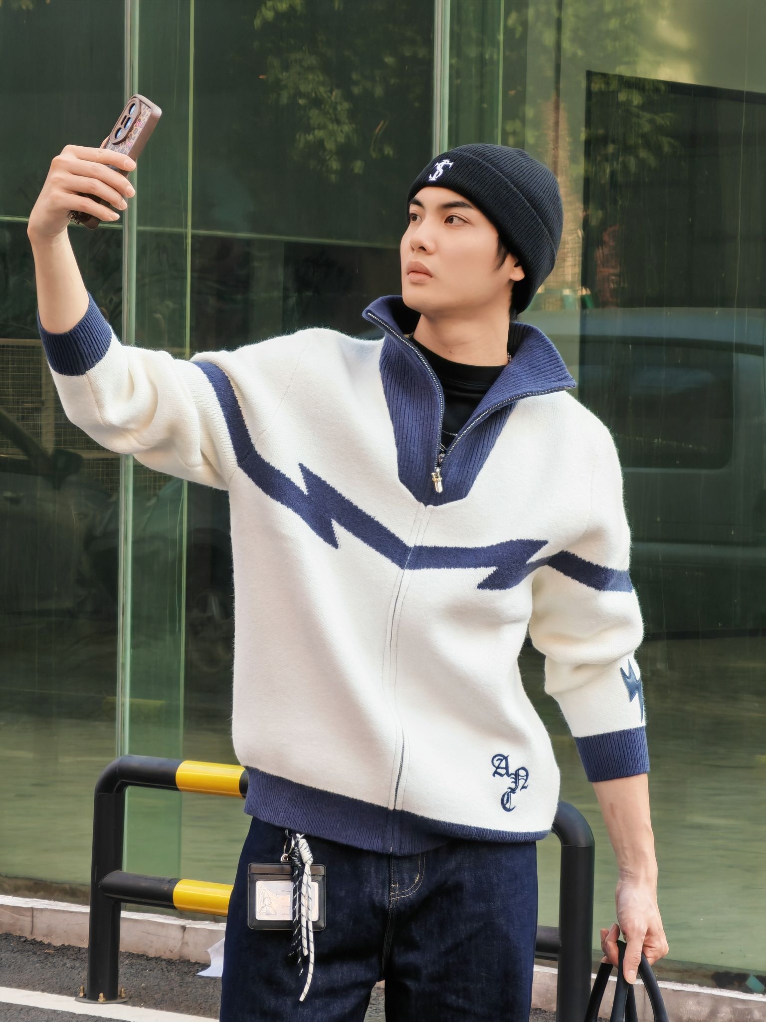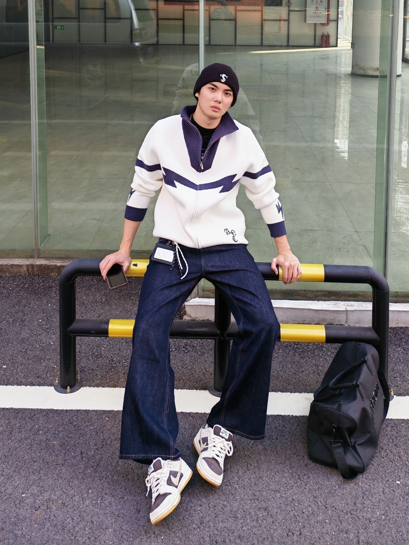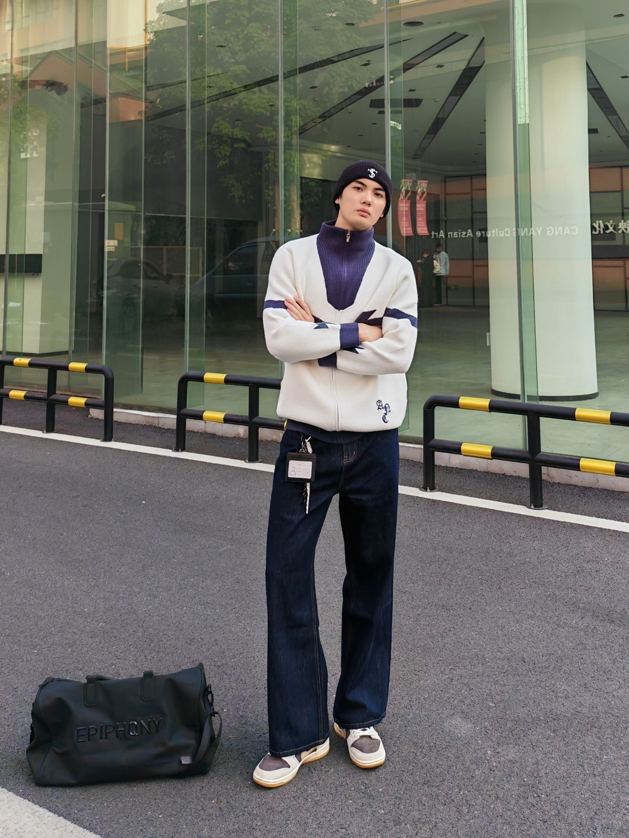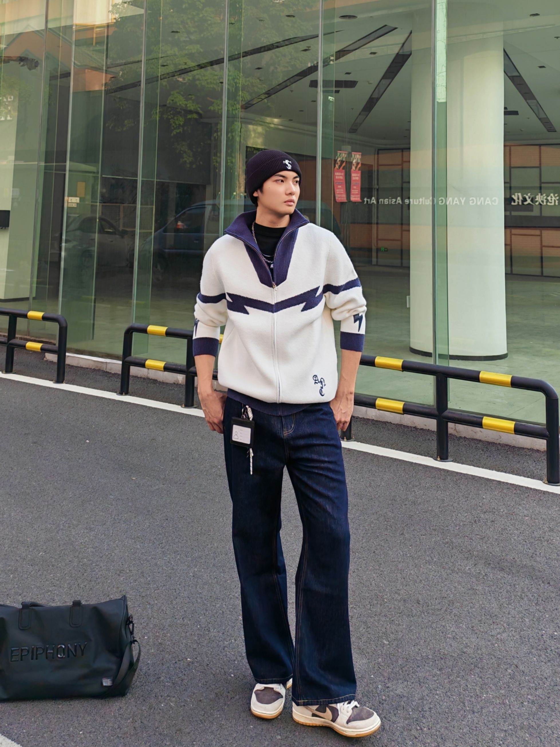 今日份穿搭主打一个“舒服又有型”,黑白蓝配色简约又耐看,走在路上回头率直接拉满。 软乎乎的针织外套保暖又轻便,搭配阔腿牛仔裤和老爹鞋,整个人看起来慵懒又利落。 随手拎个大包就能出门,打工人的体面感这不就拿捏住了! ❄️ 冬天穿得暖和,也能轻松做氛围感帅哥~